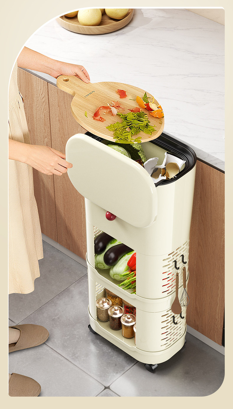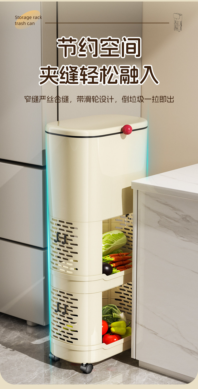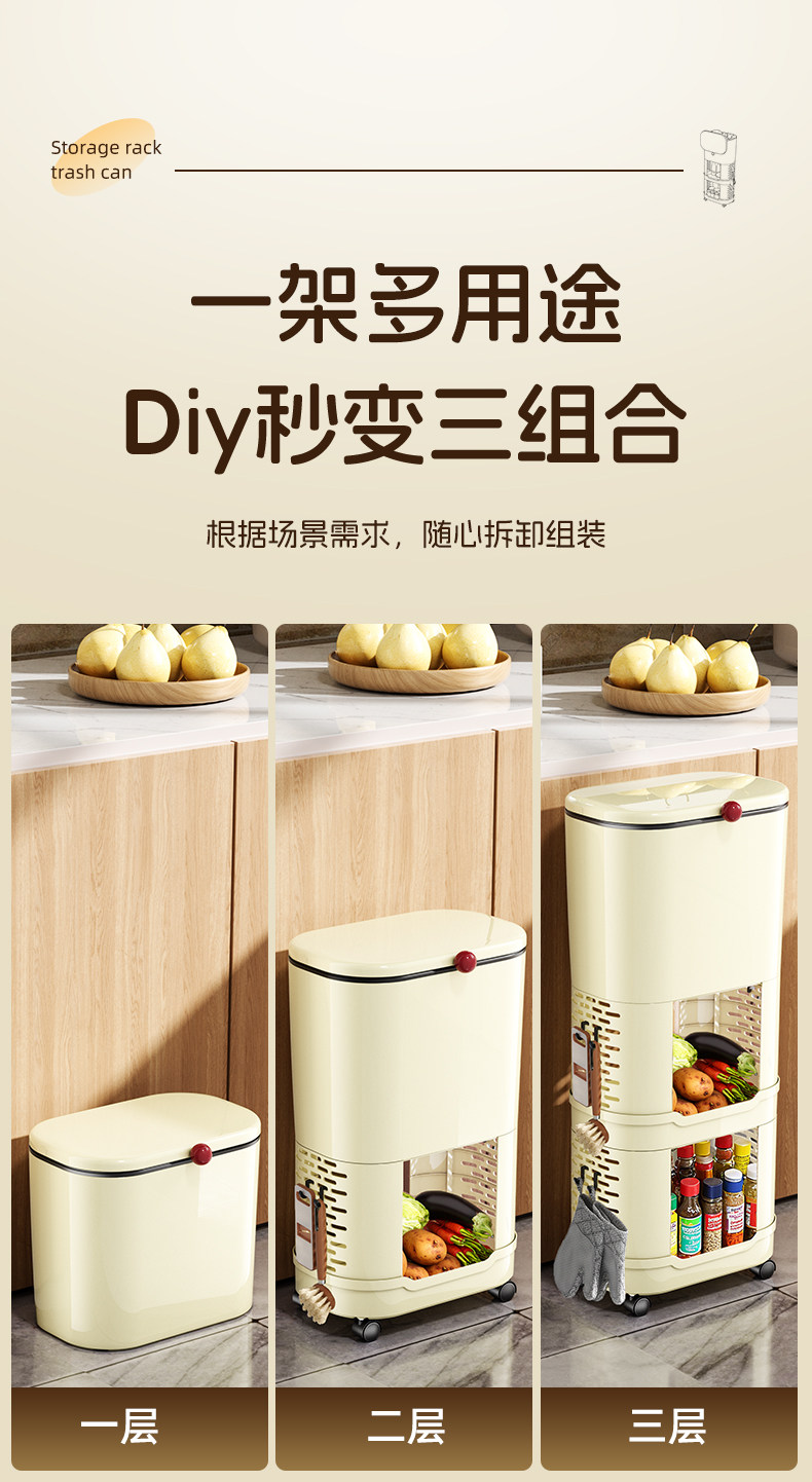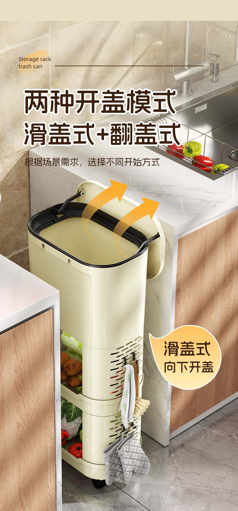 Kitchen removable wheeled trash can for household large-capacity sliding cover double-layer high model without bending and gapping storage shelf