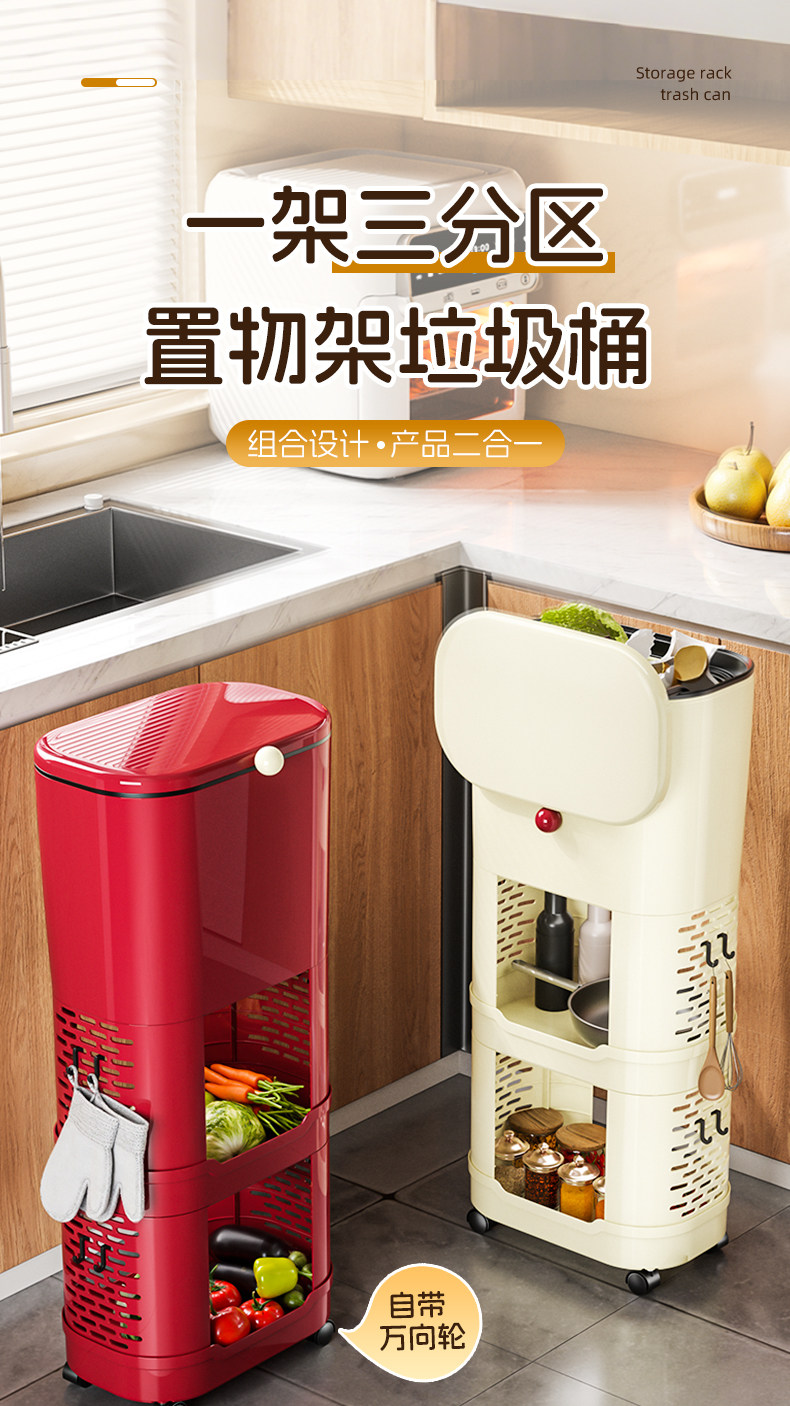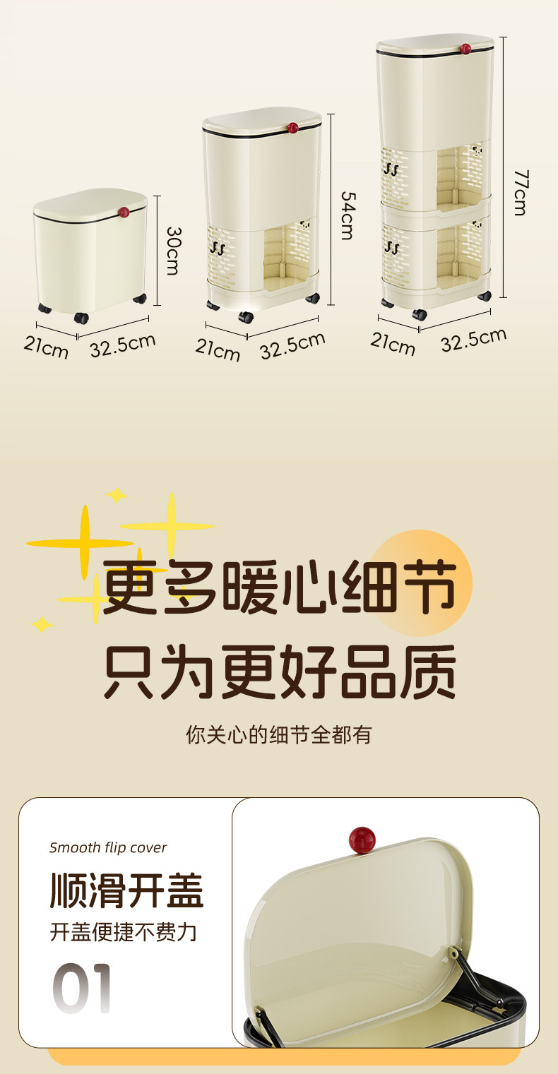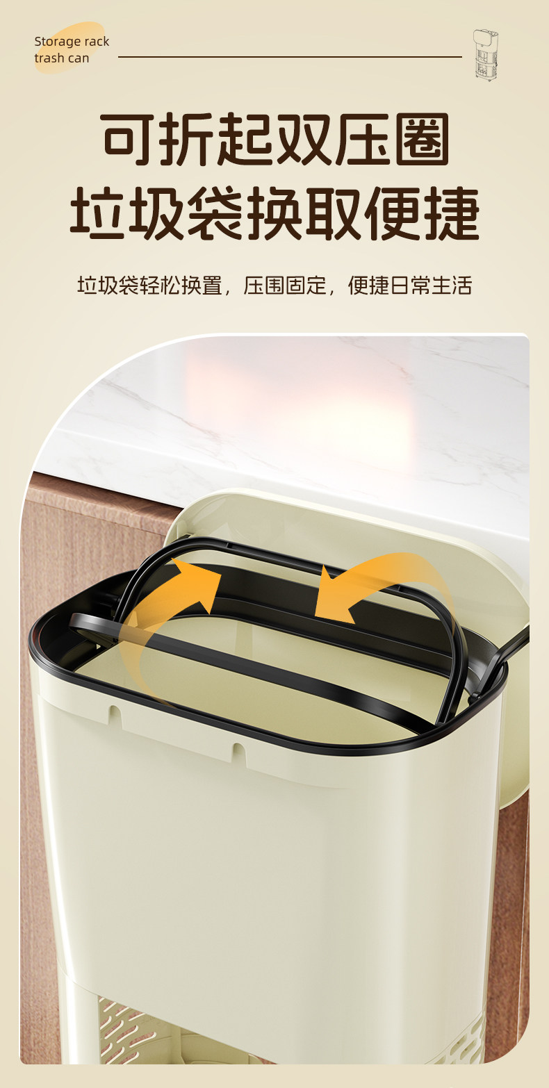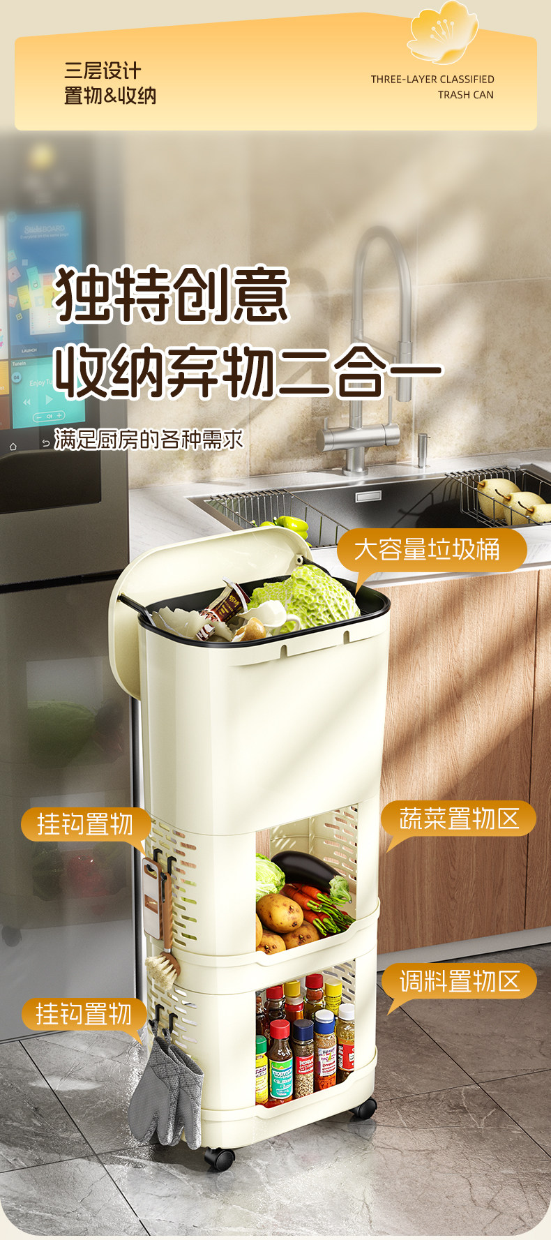 Kitchen removable wheeled trash can for household large-capacity sliding cover double-layer high model without bending and gapping storage shelf