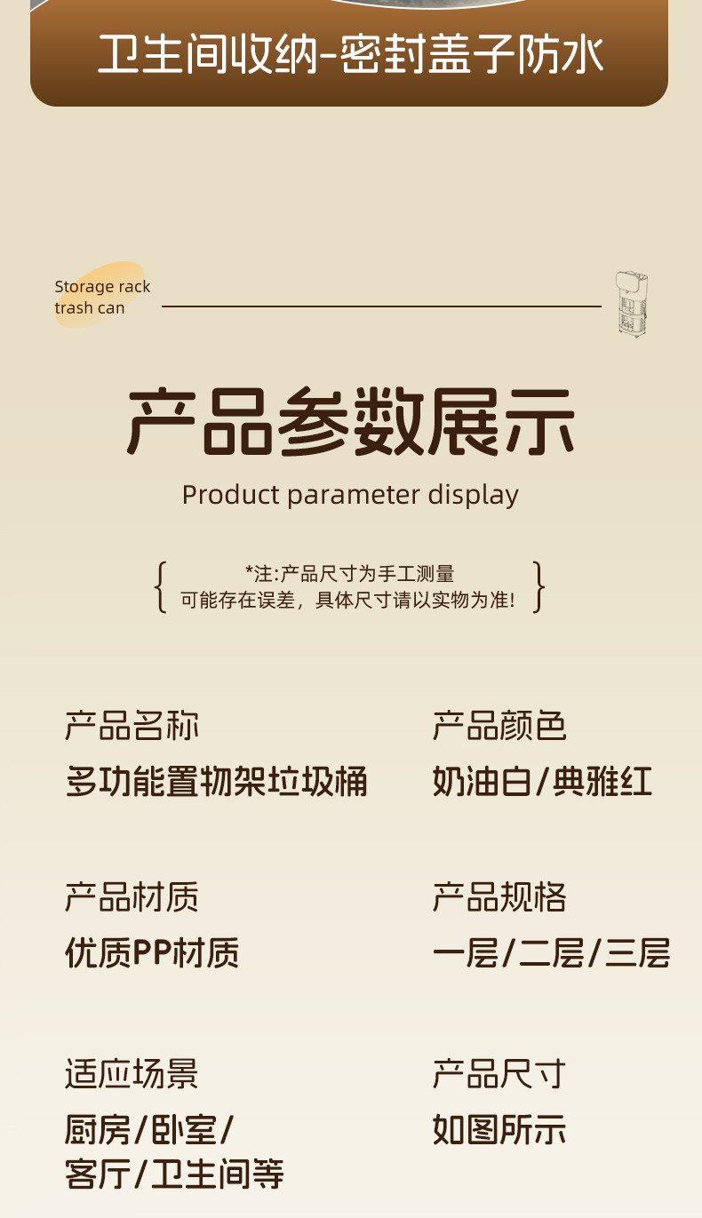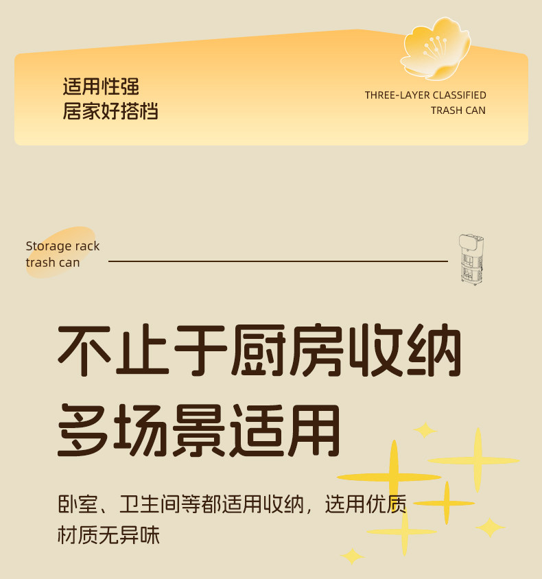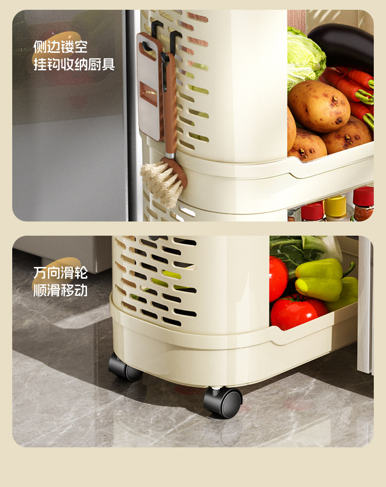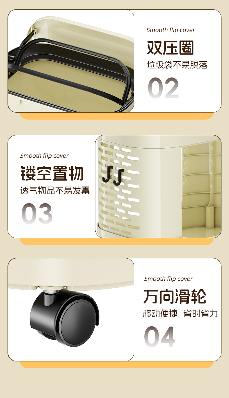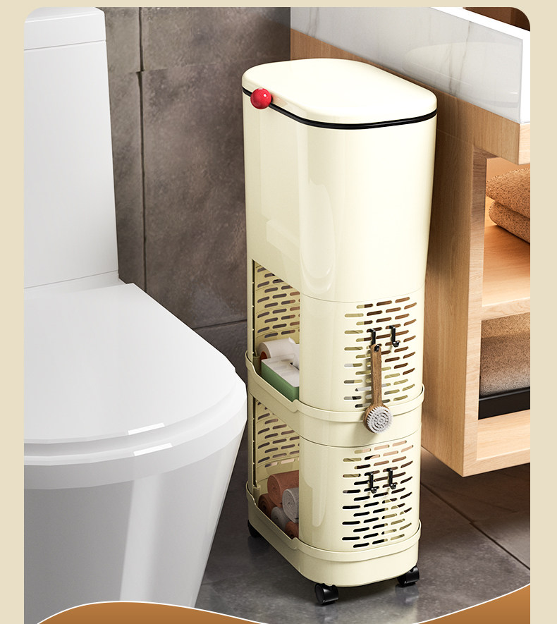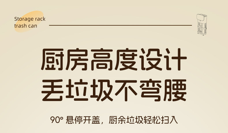 Kitchen removable wheeled trash can for household large-capacity sliding cover double-layer high model without bending and gapping storage shelf