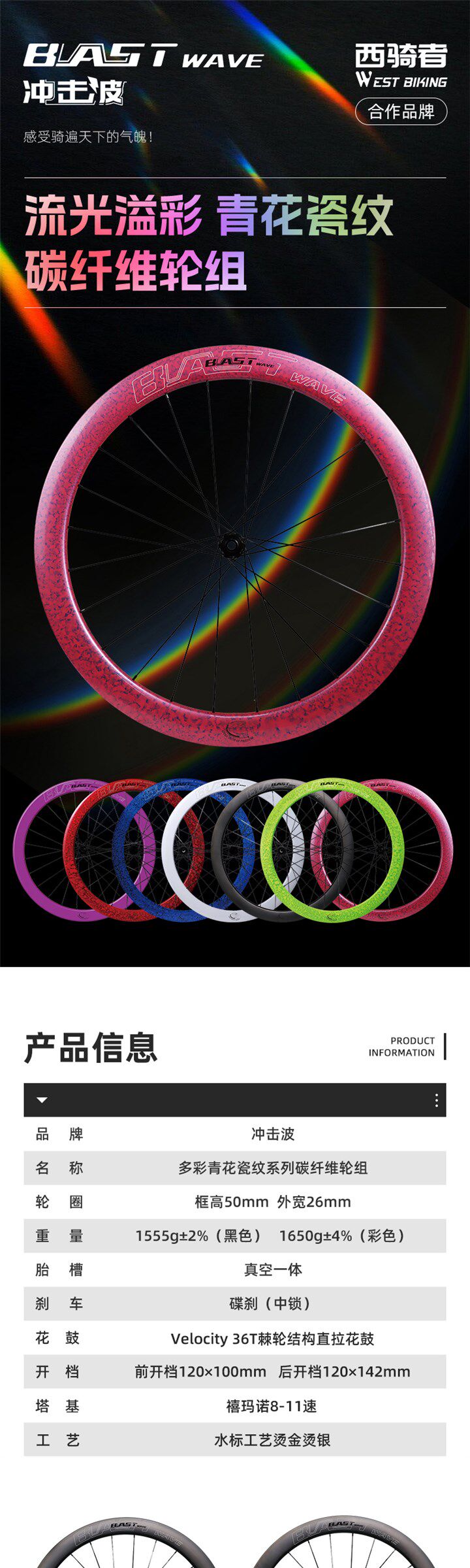 Shock wave wheel set carbon fiber road bicycle wheel set carbon knife K colorful cool series 50 vacuum