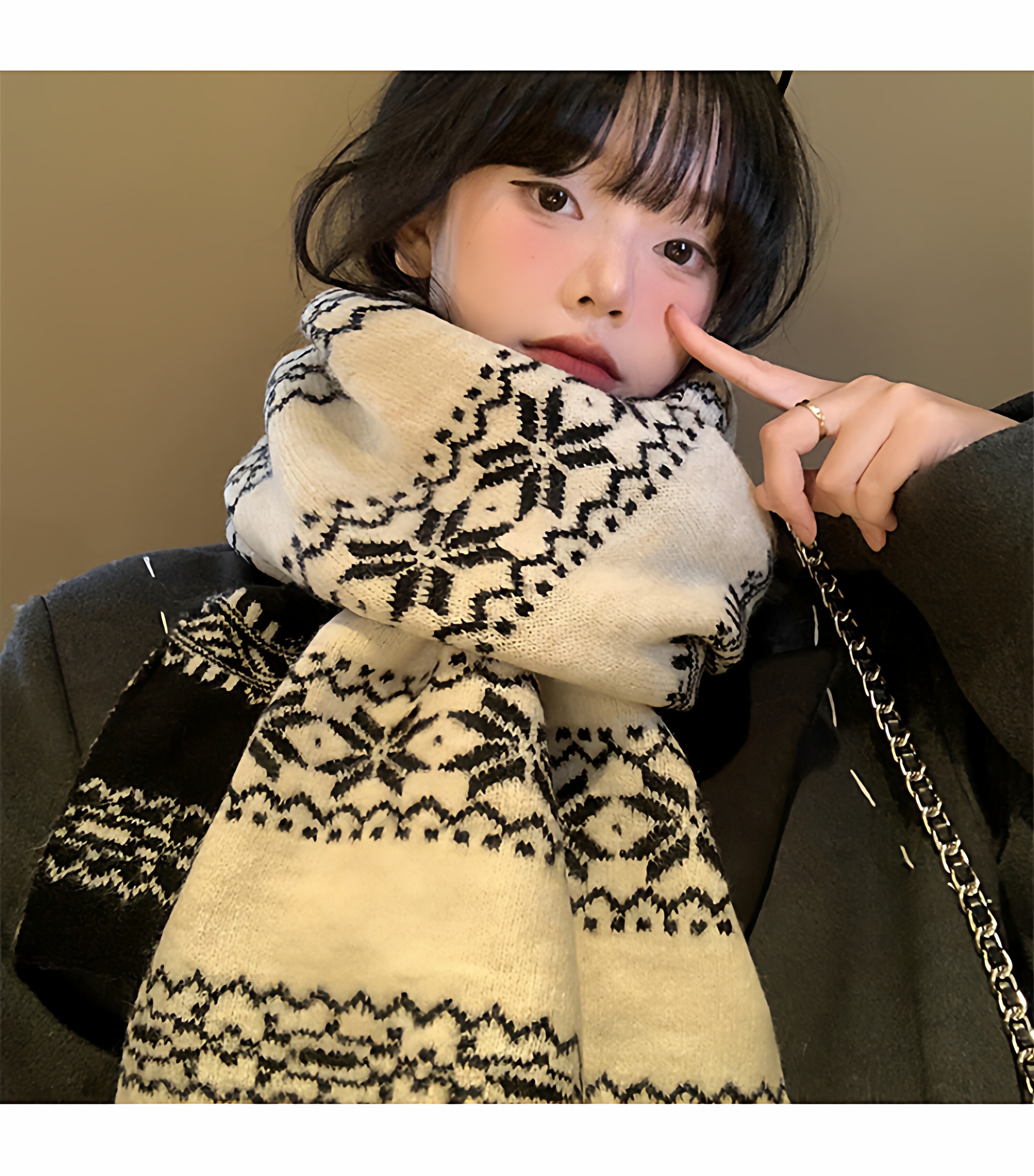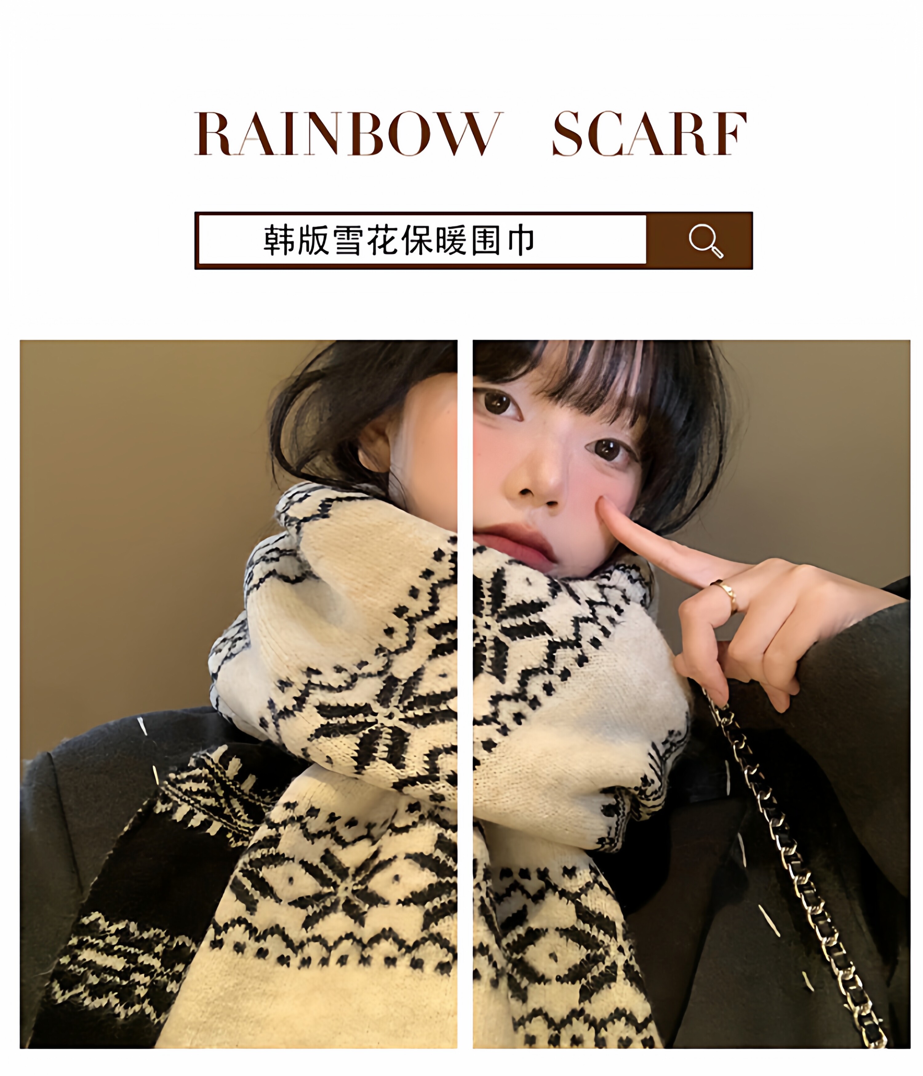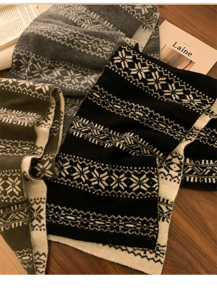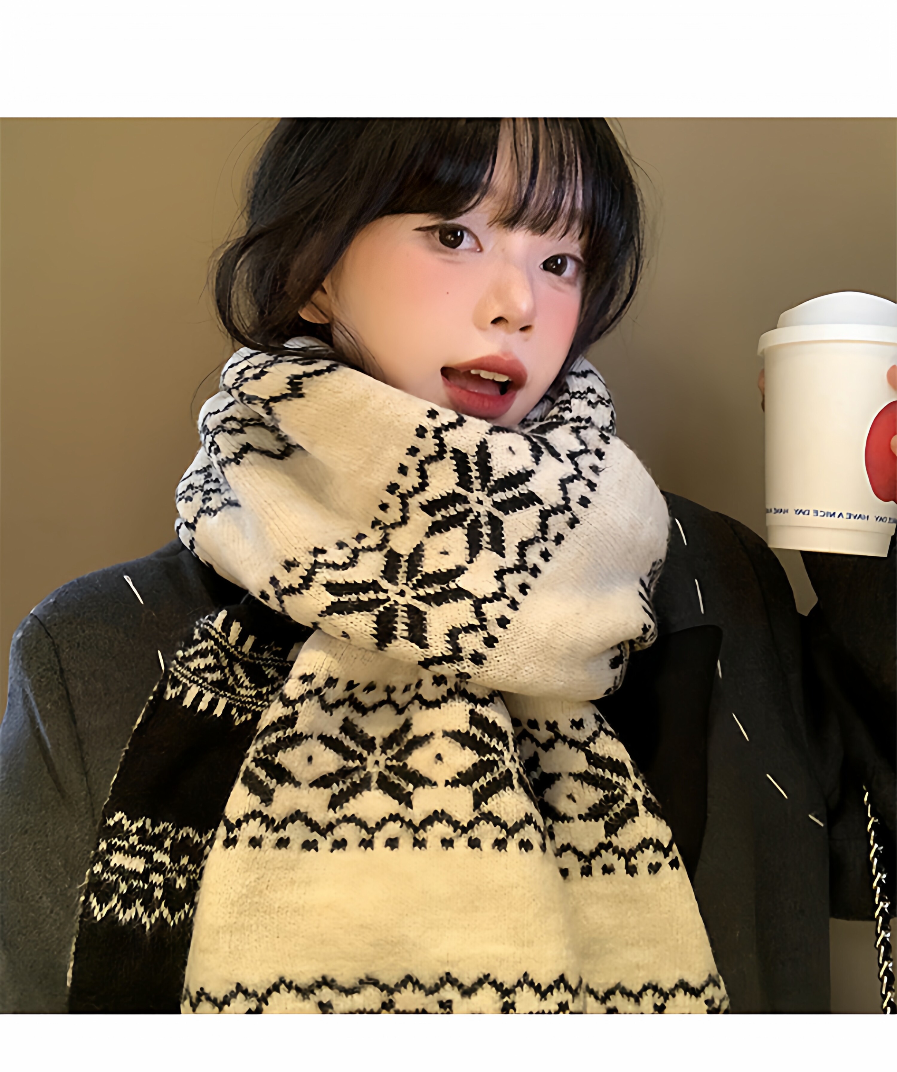 Snowflake Double-Sided Knitted Scarf for Women, Autumn and Winter Korean Style, Thickened for Warmth, High-End Feel, Vintage Shawl