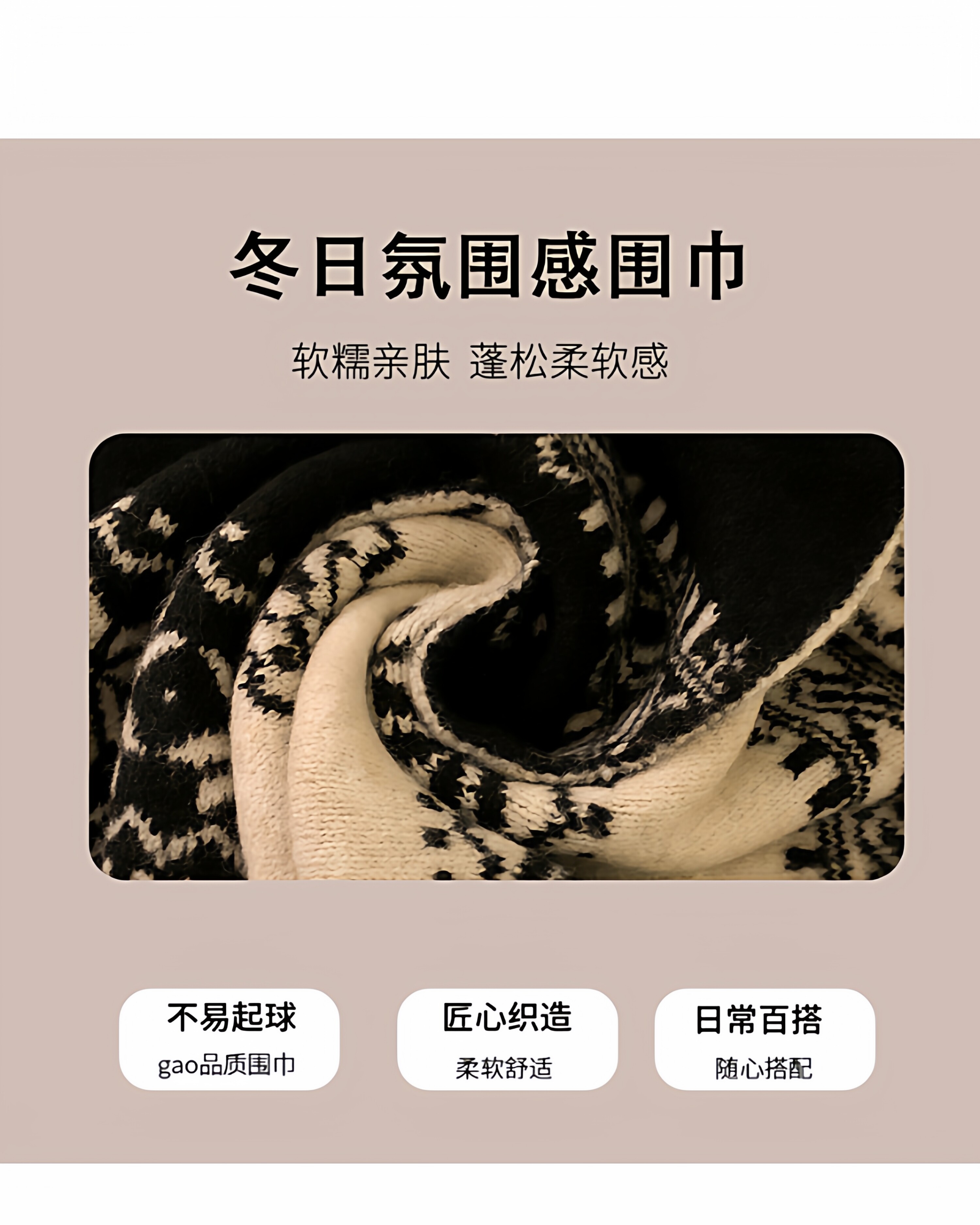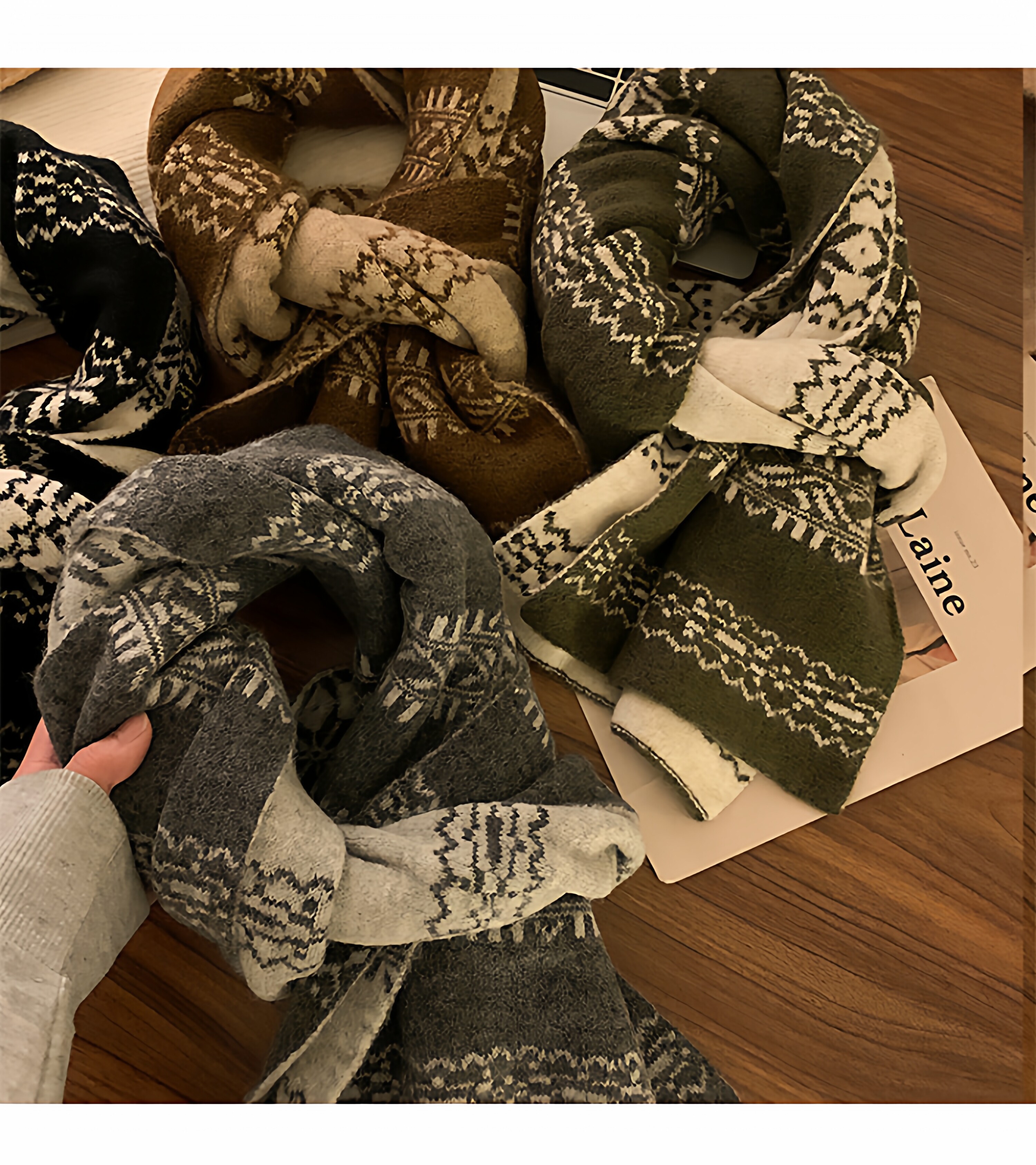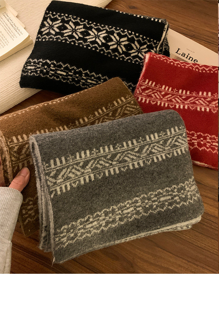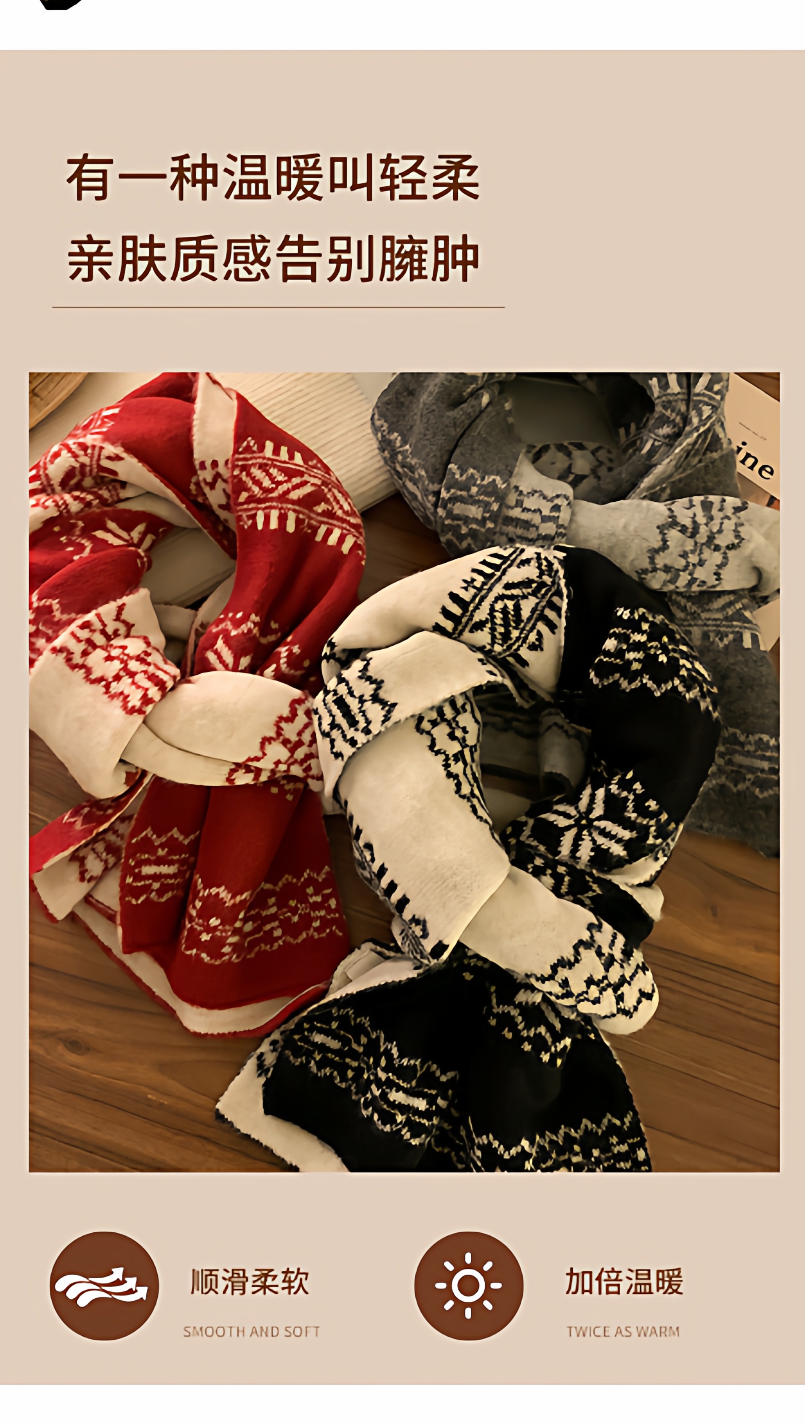 Snowflake Double-Sided Knitted Scarf for Women, Autumn and Winter Korean Style, Thickened for Warmth, High-End Feel, Vintage Shawl