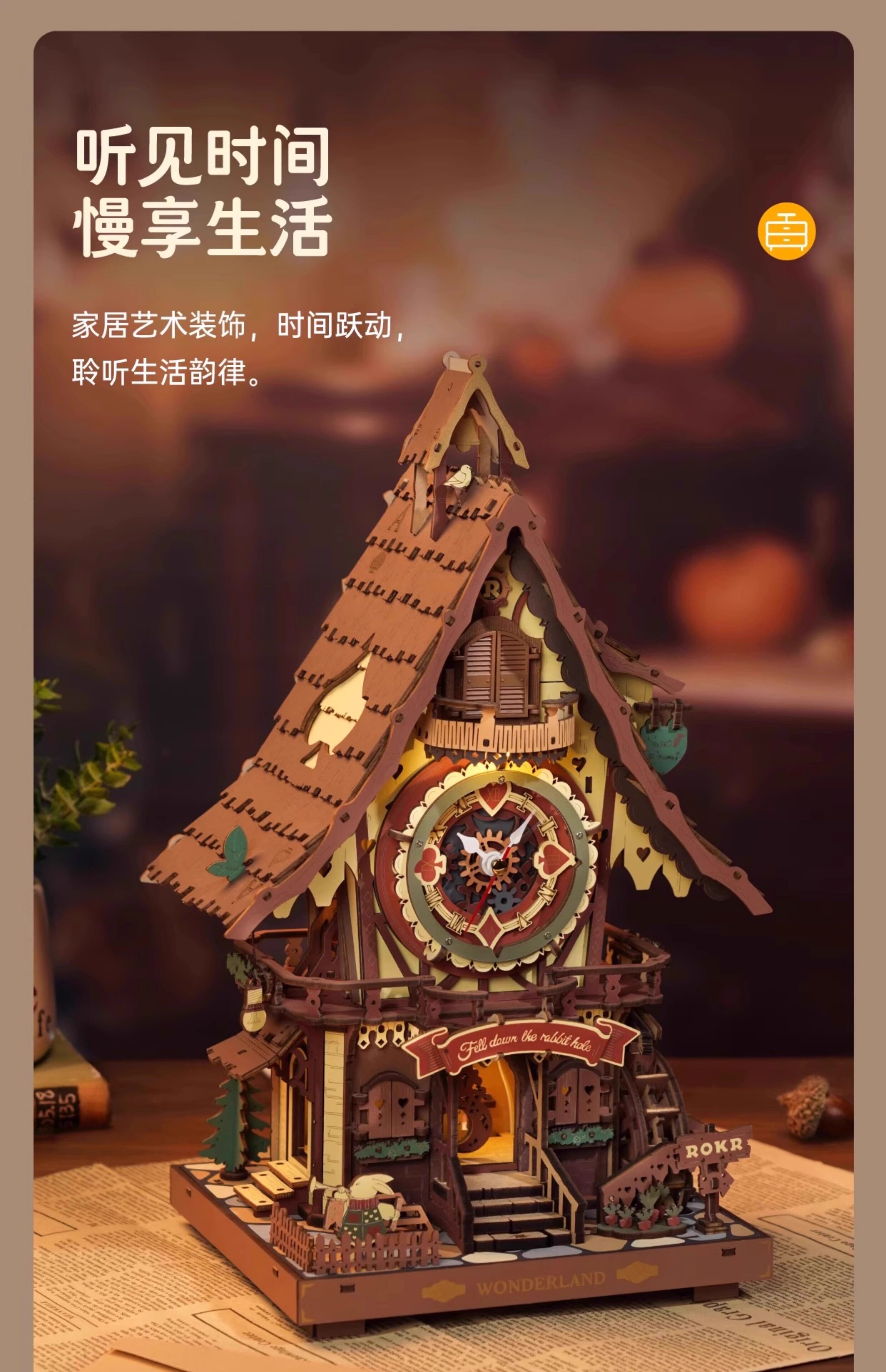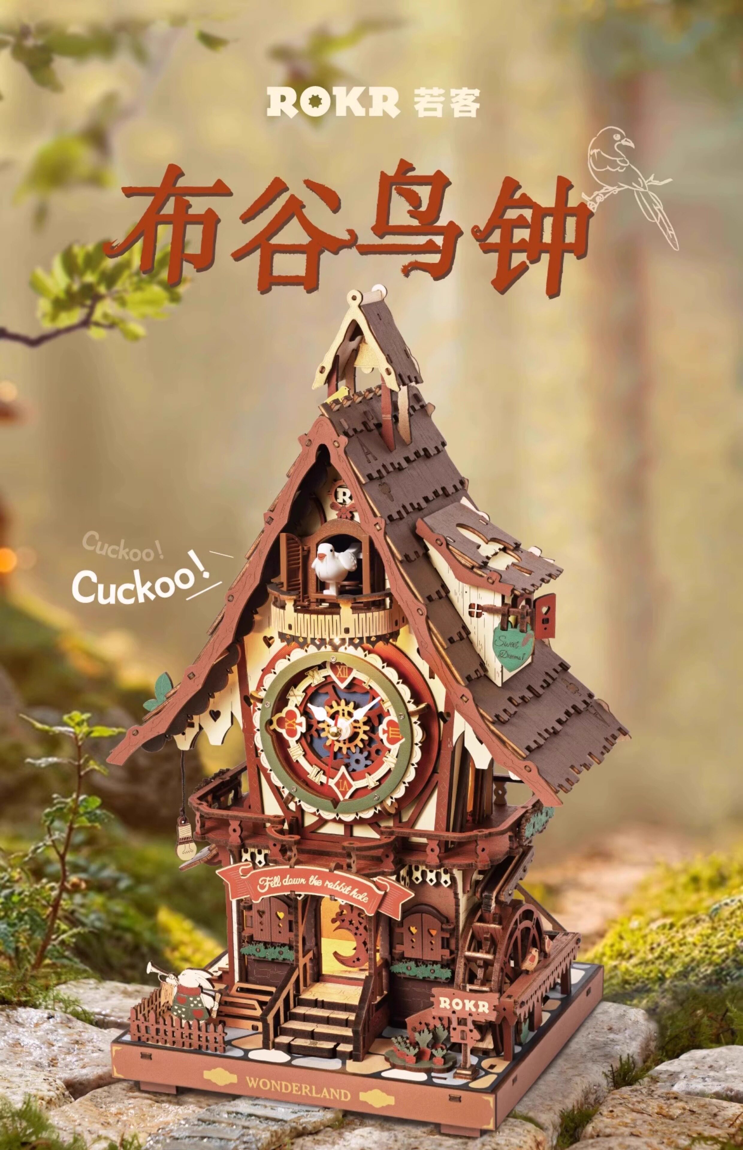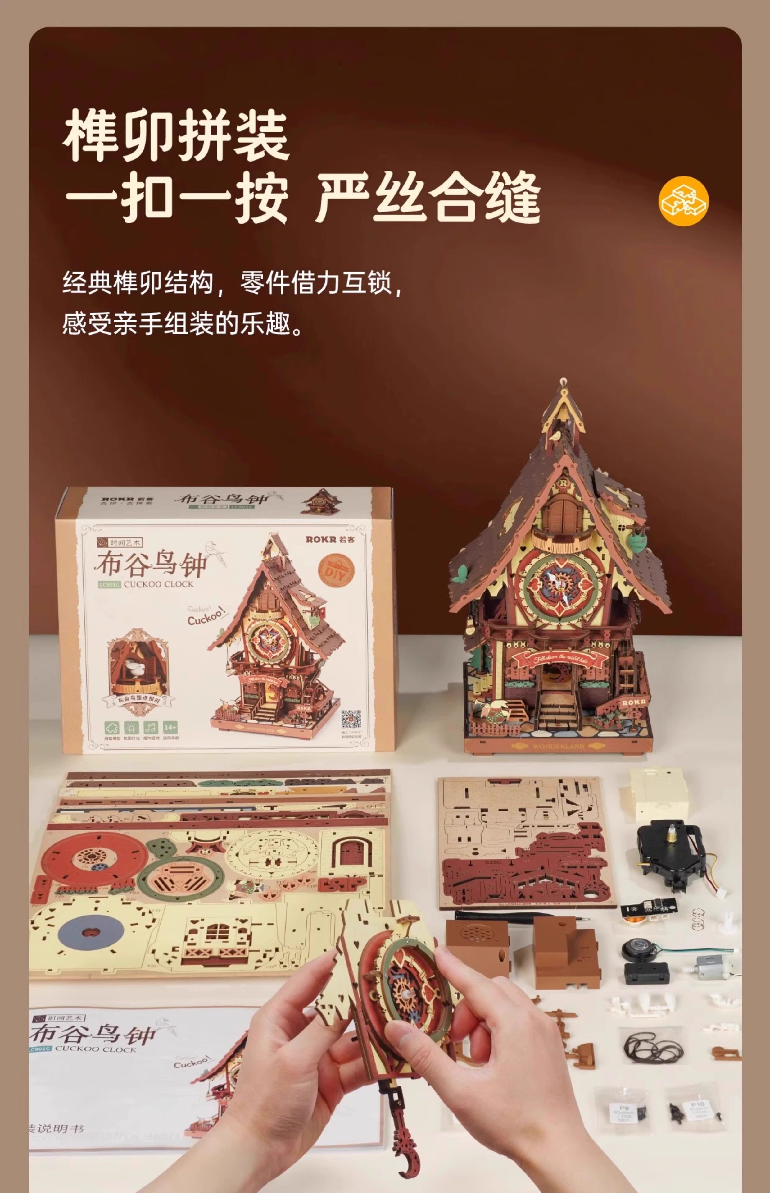 ROKR cuckoo clock building block toys handmade diy wooden assembly model 3D building three-dimensional puzzle