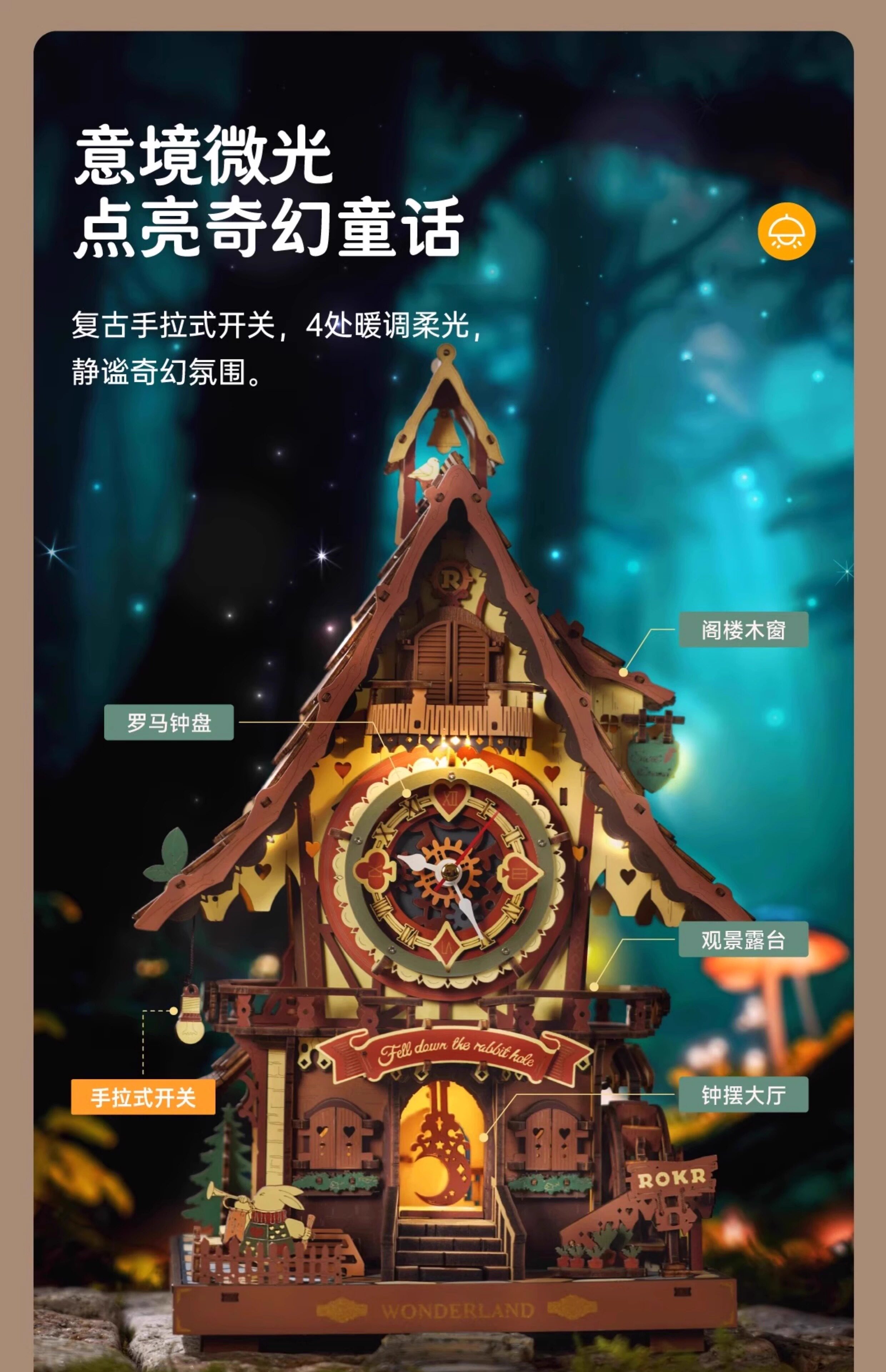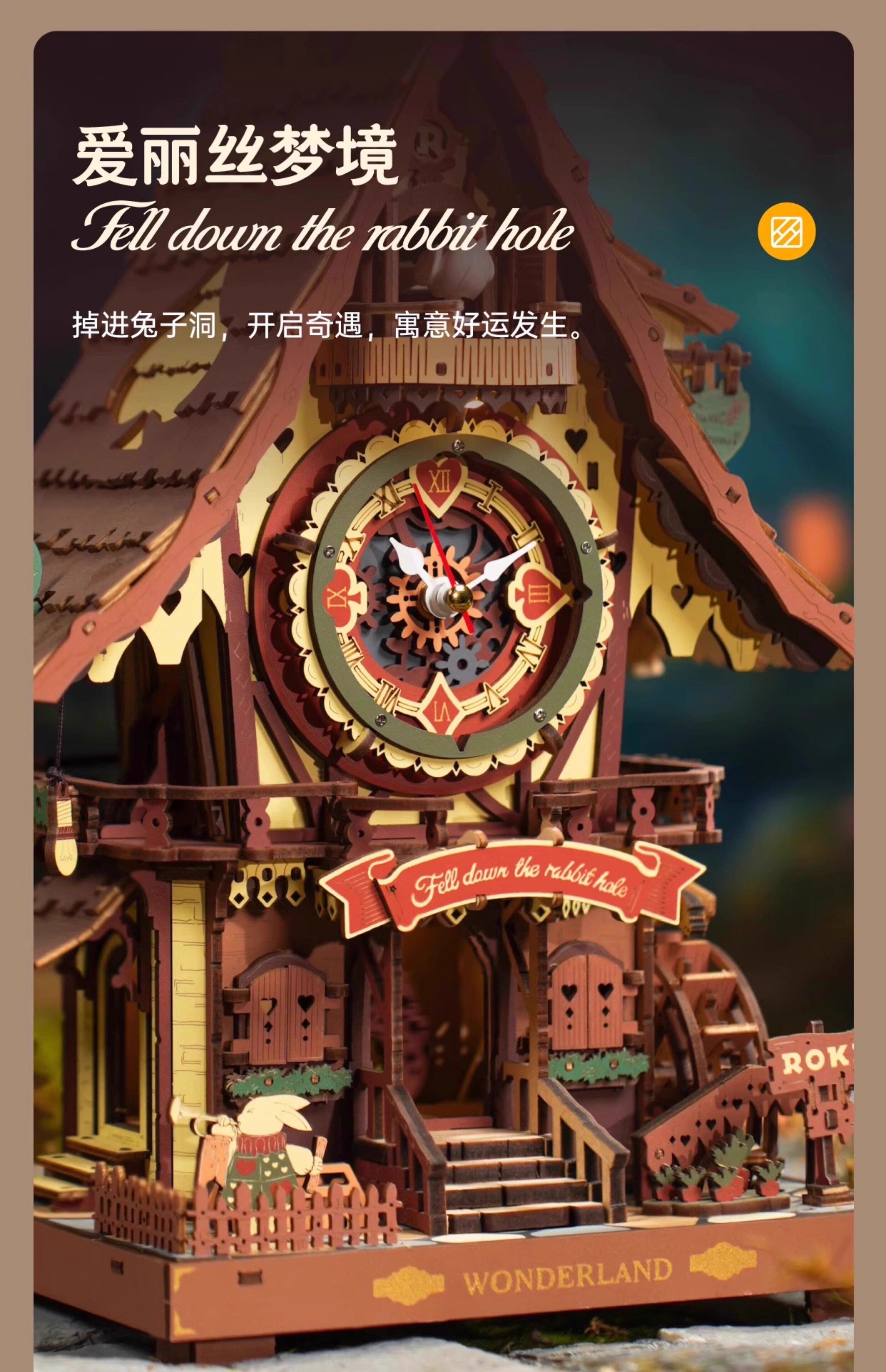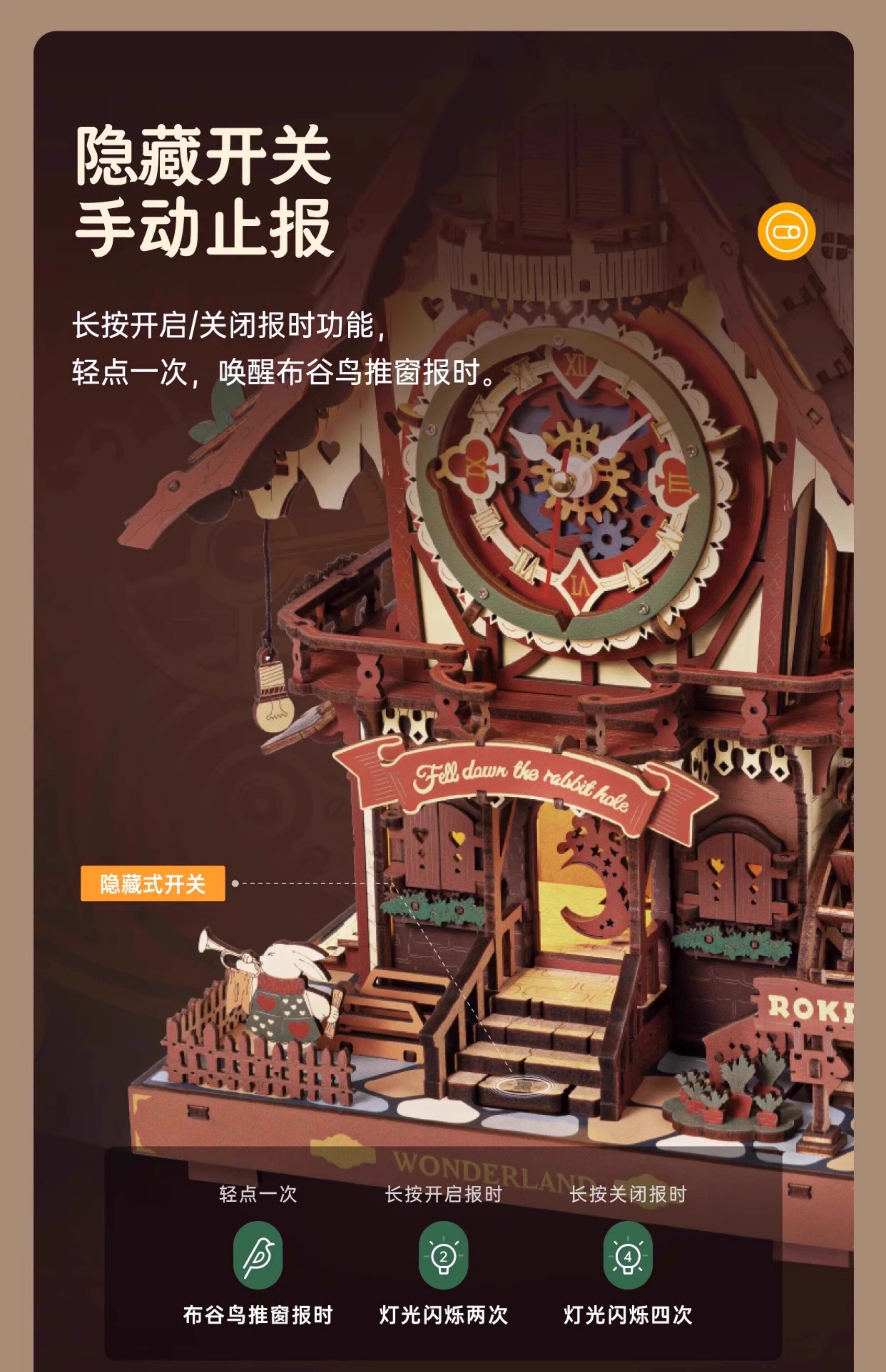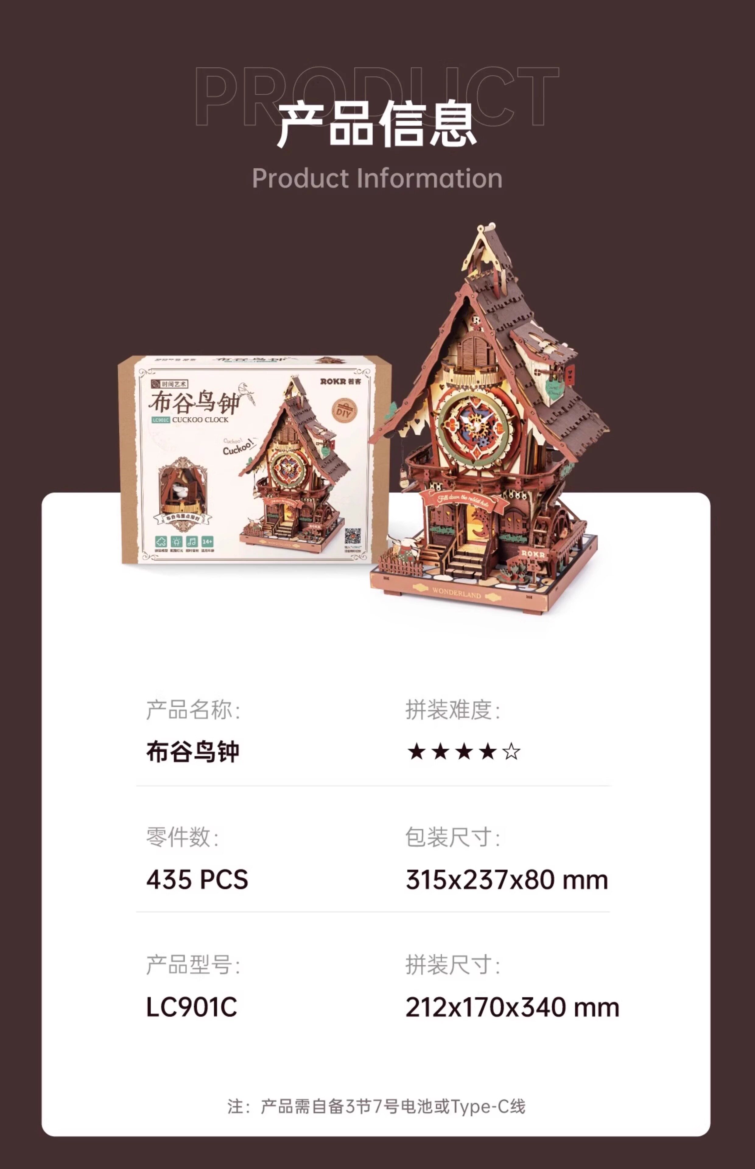 ROKR cuckoo clock building block toys handmade diy wooden assembly model 3D building three-dimensional puzzle