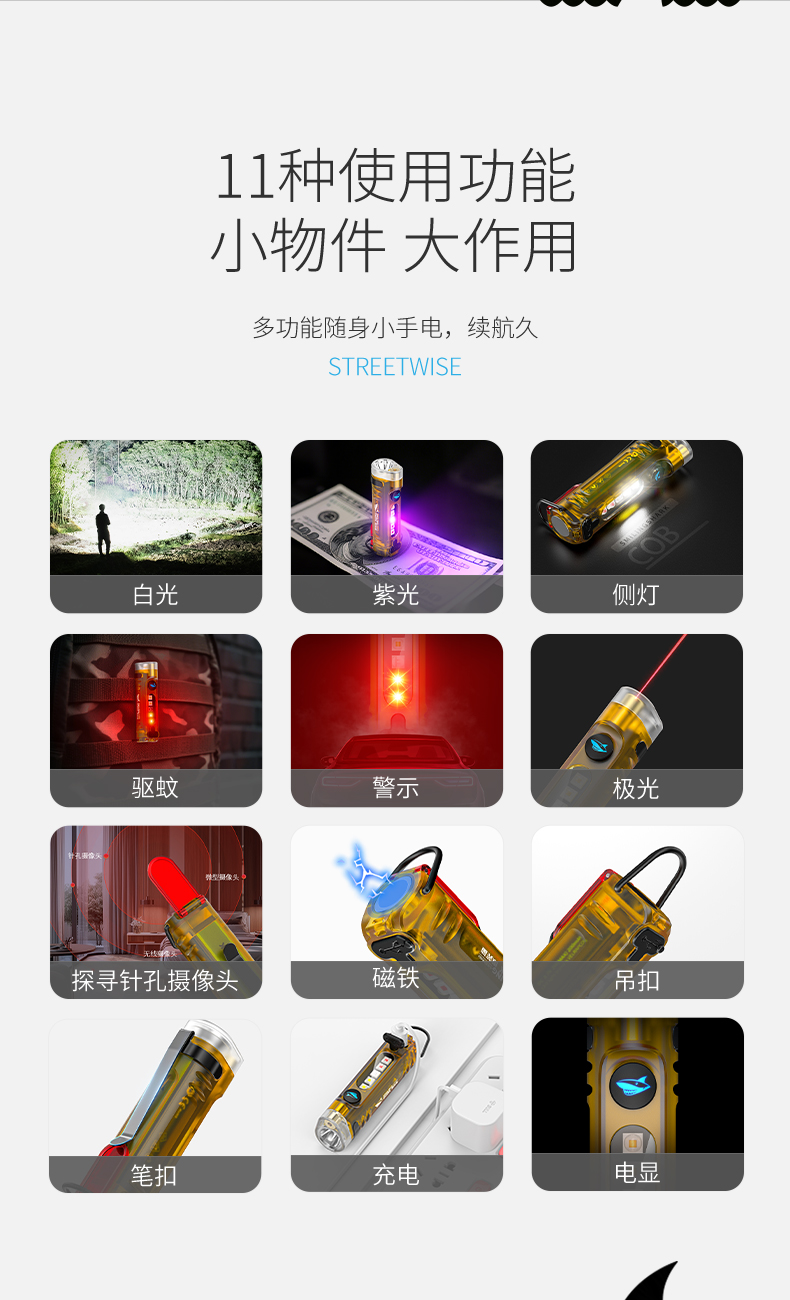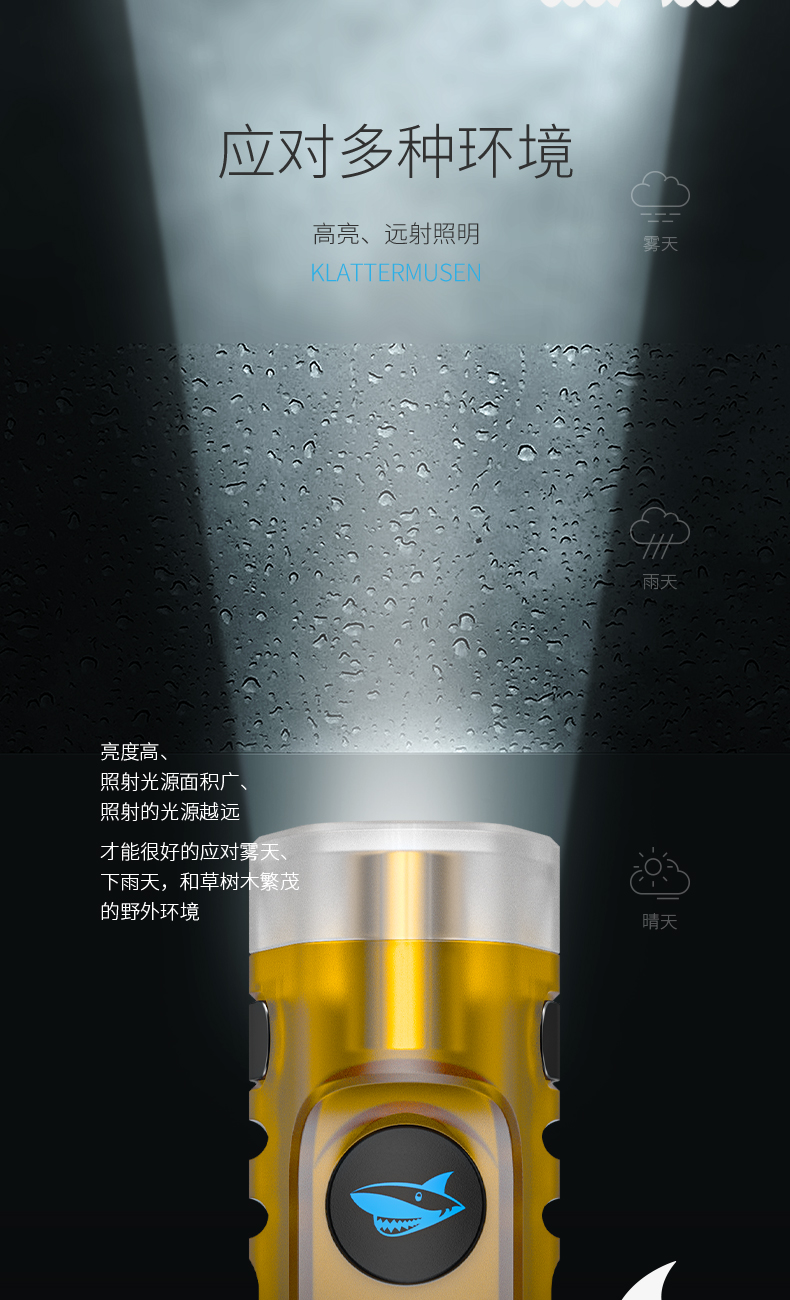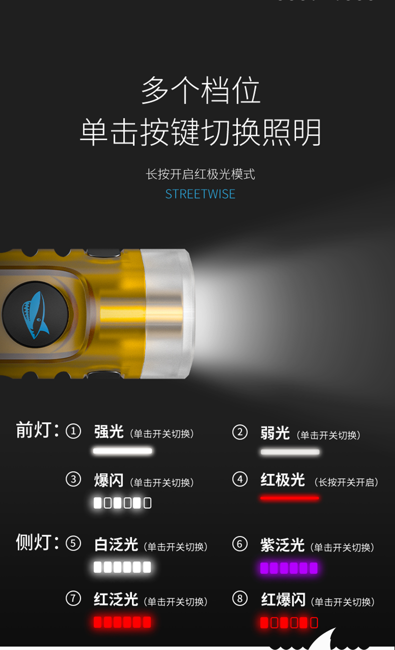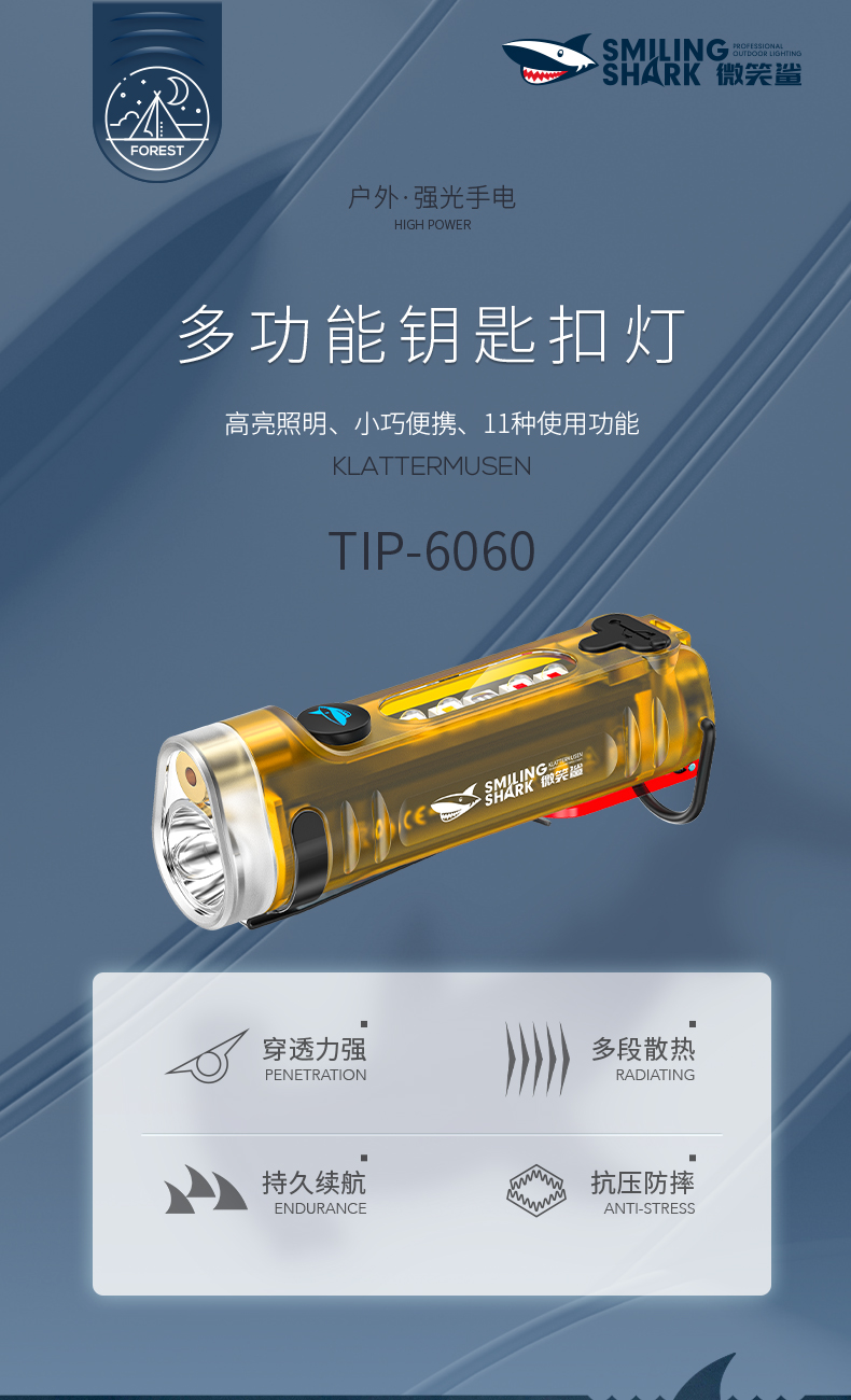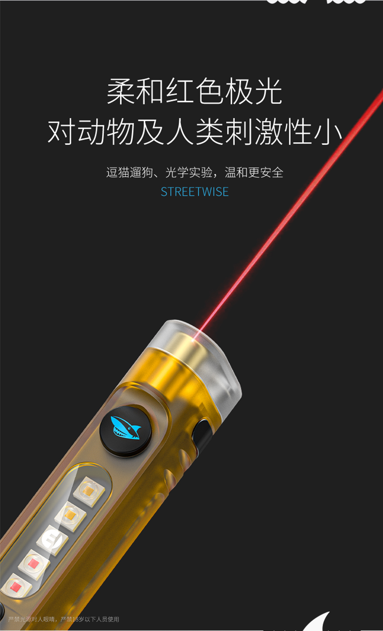 Smiling Shark Mini Multifunctional Keychain Light with Magnetic Attachment, Portable Red Laser Flashlight, Outdoor Red and Blue Flash Emergency Light