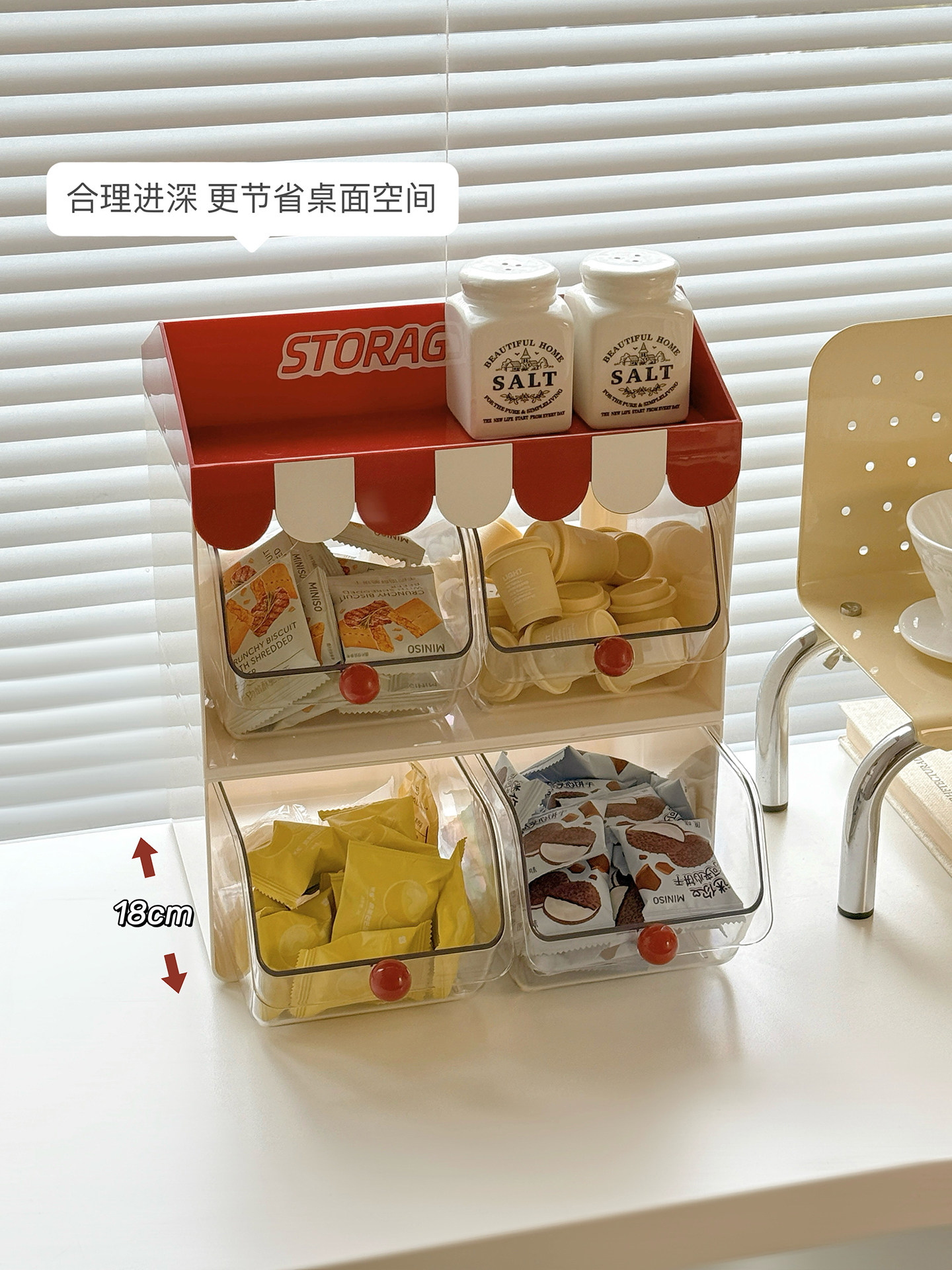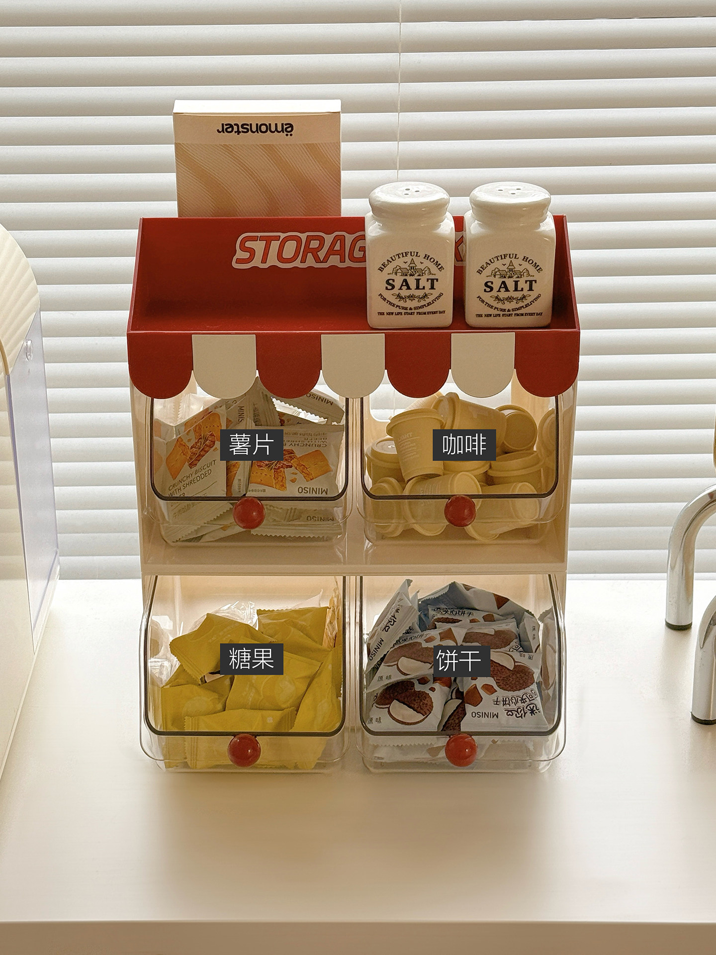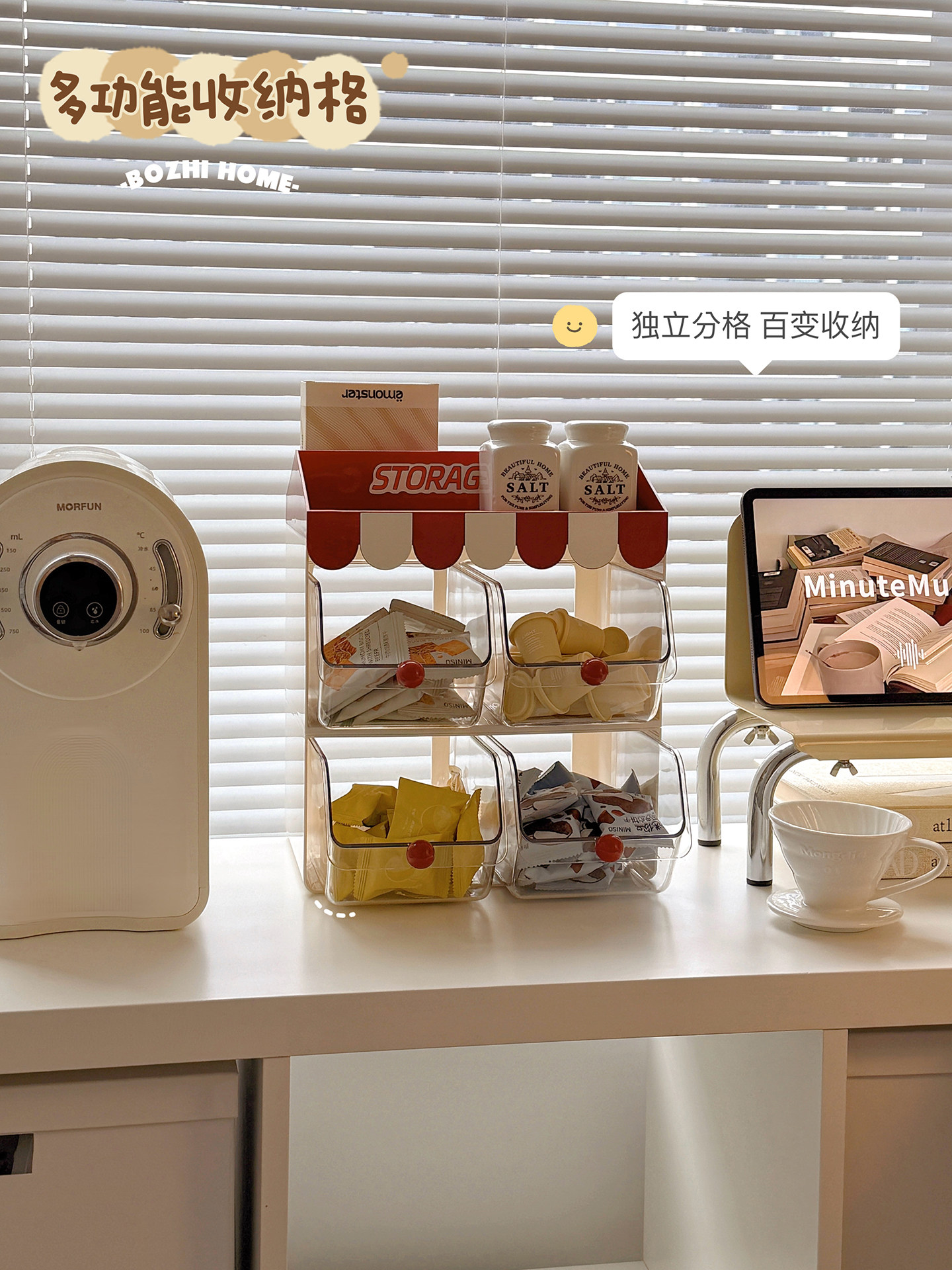 Tea Bag Storage Box Desktop Coffee Table Transparent Pantry Bar Counter Coffee Capsule Snack Drawer-Style Compartmentalized Storage Rack