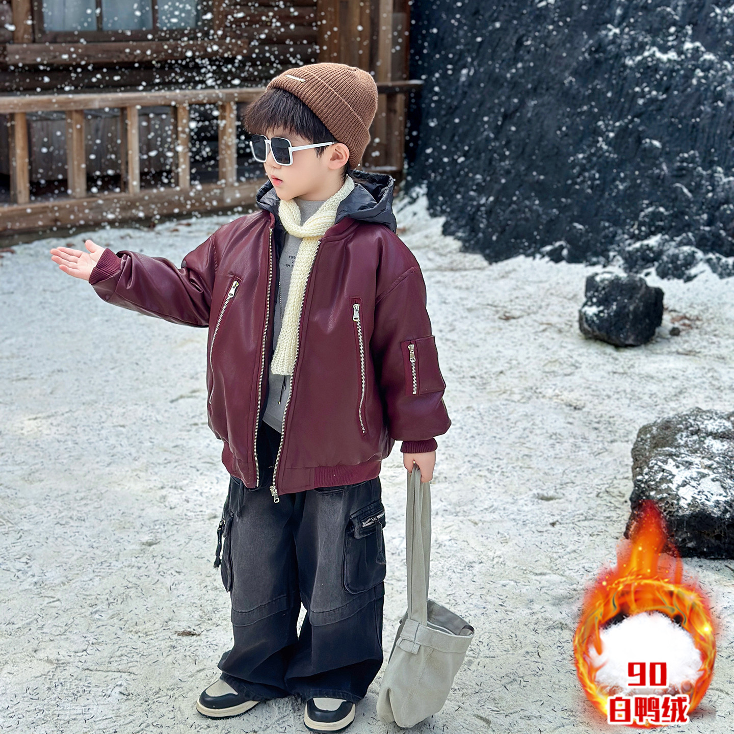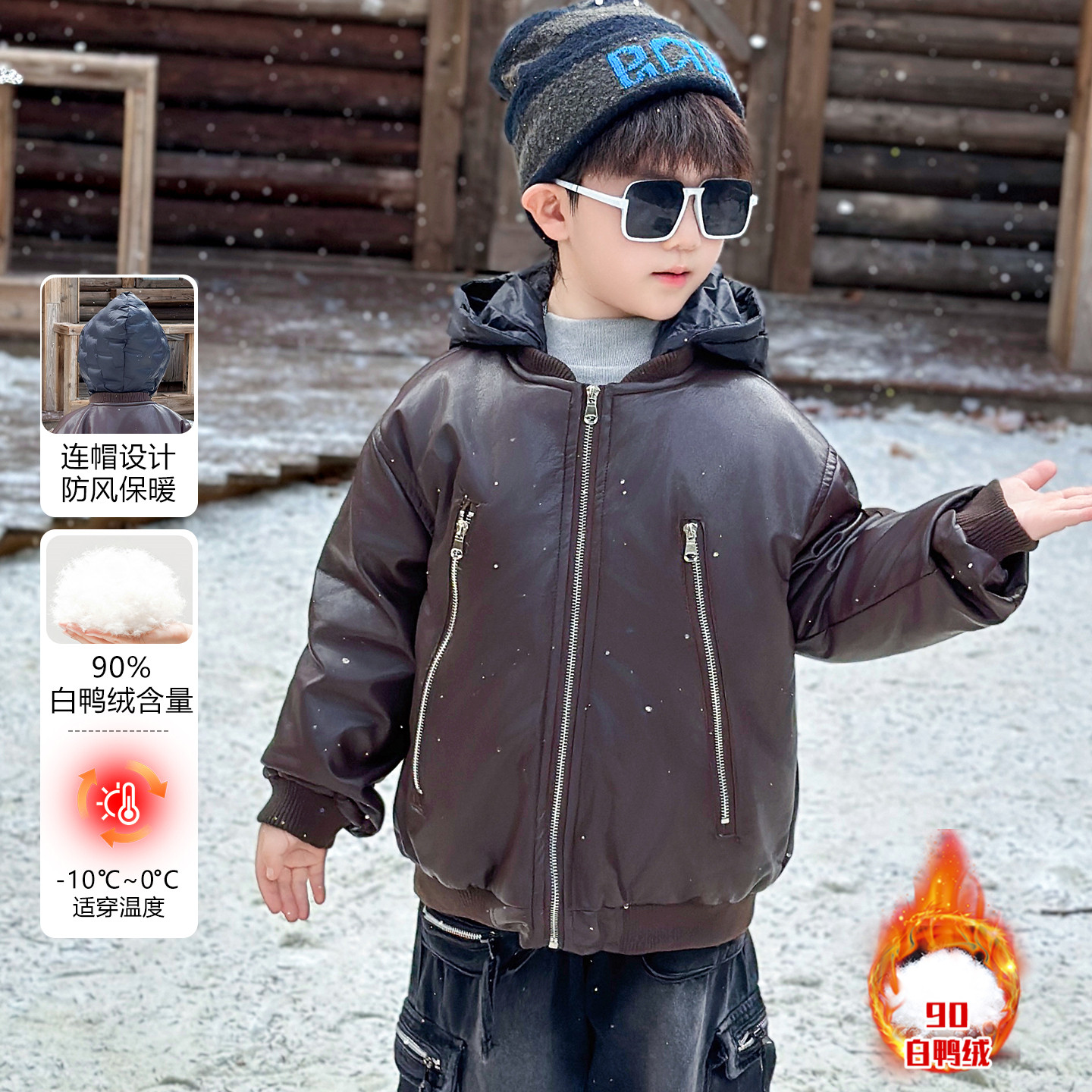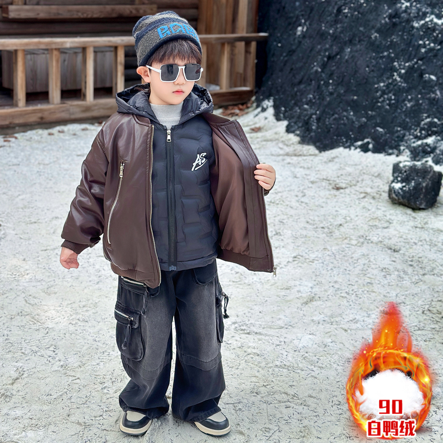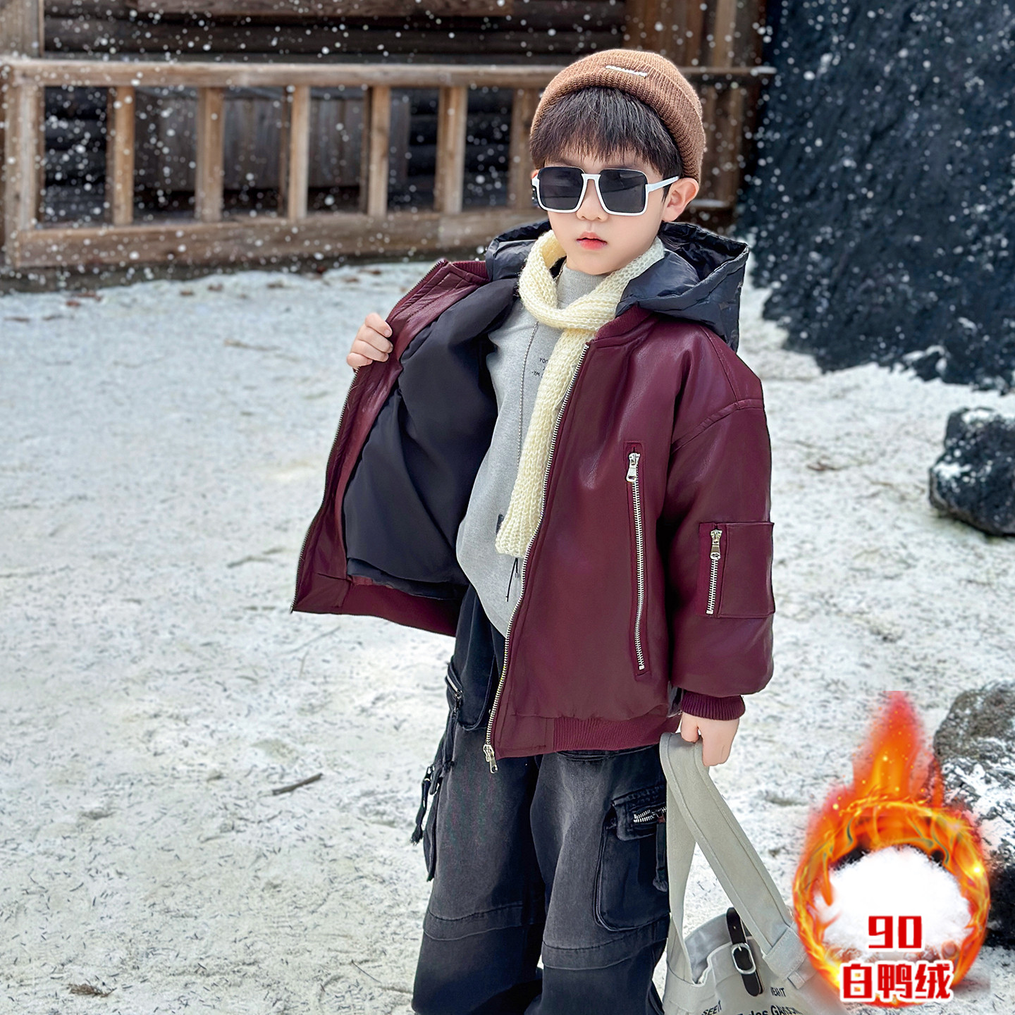 Boys' Winter down Jacket 2025 New Stylish Children's Winter Clothing Thickened Warm White Duck down Leather Coat for Babies