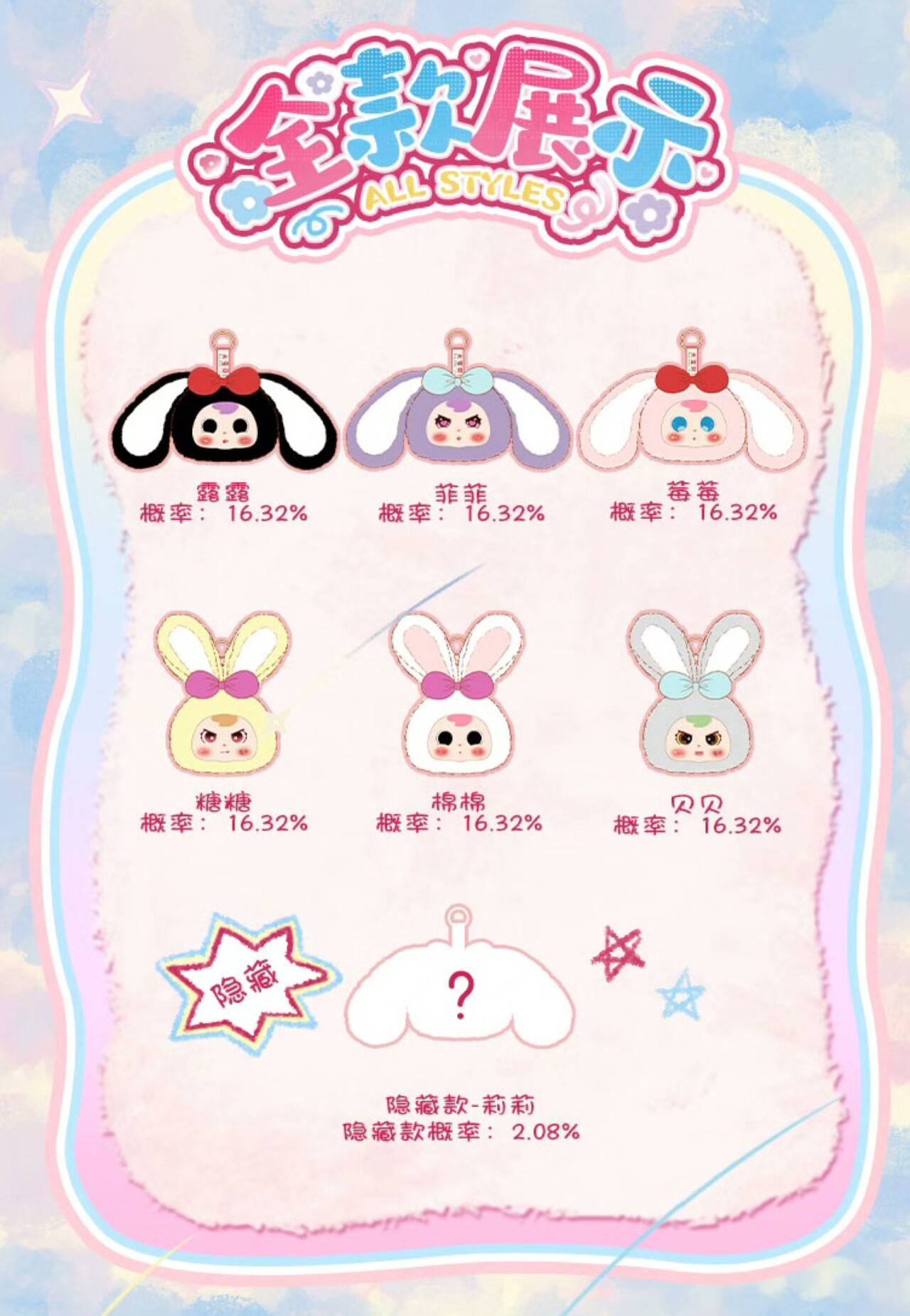 Big Baby Sweetheart Bunny Zipper Bag Series Plush Pendant Blind Box Doll Girl's Gift