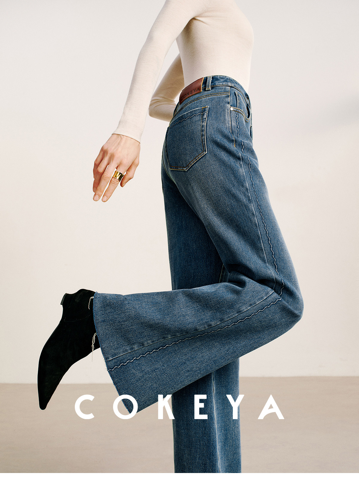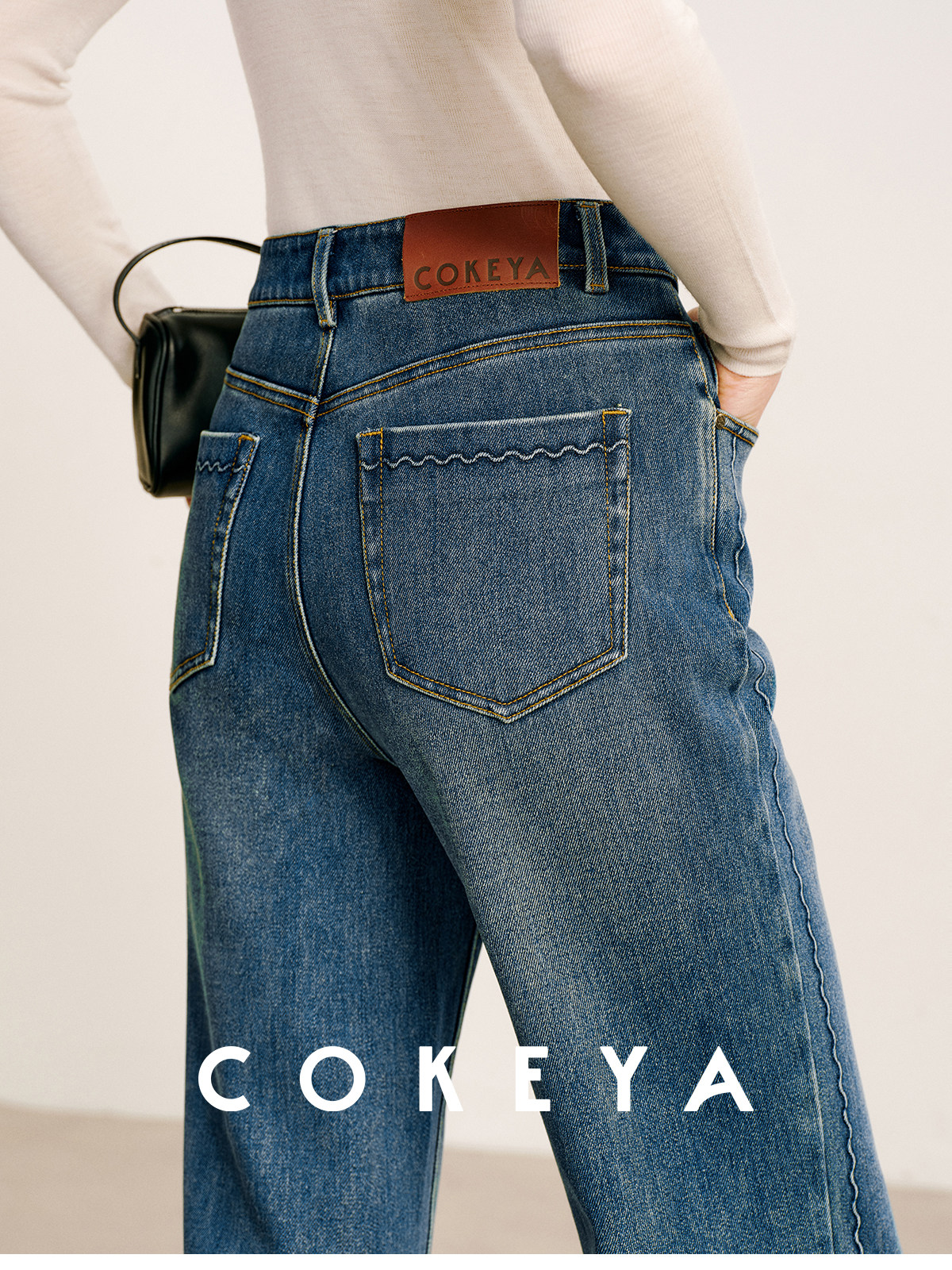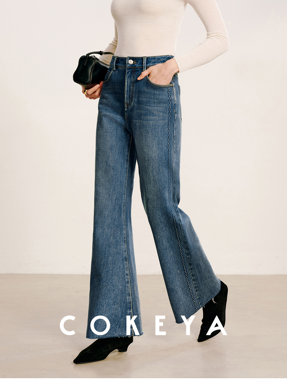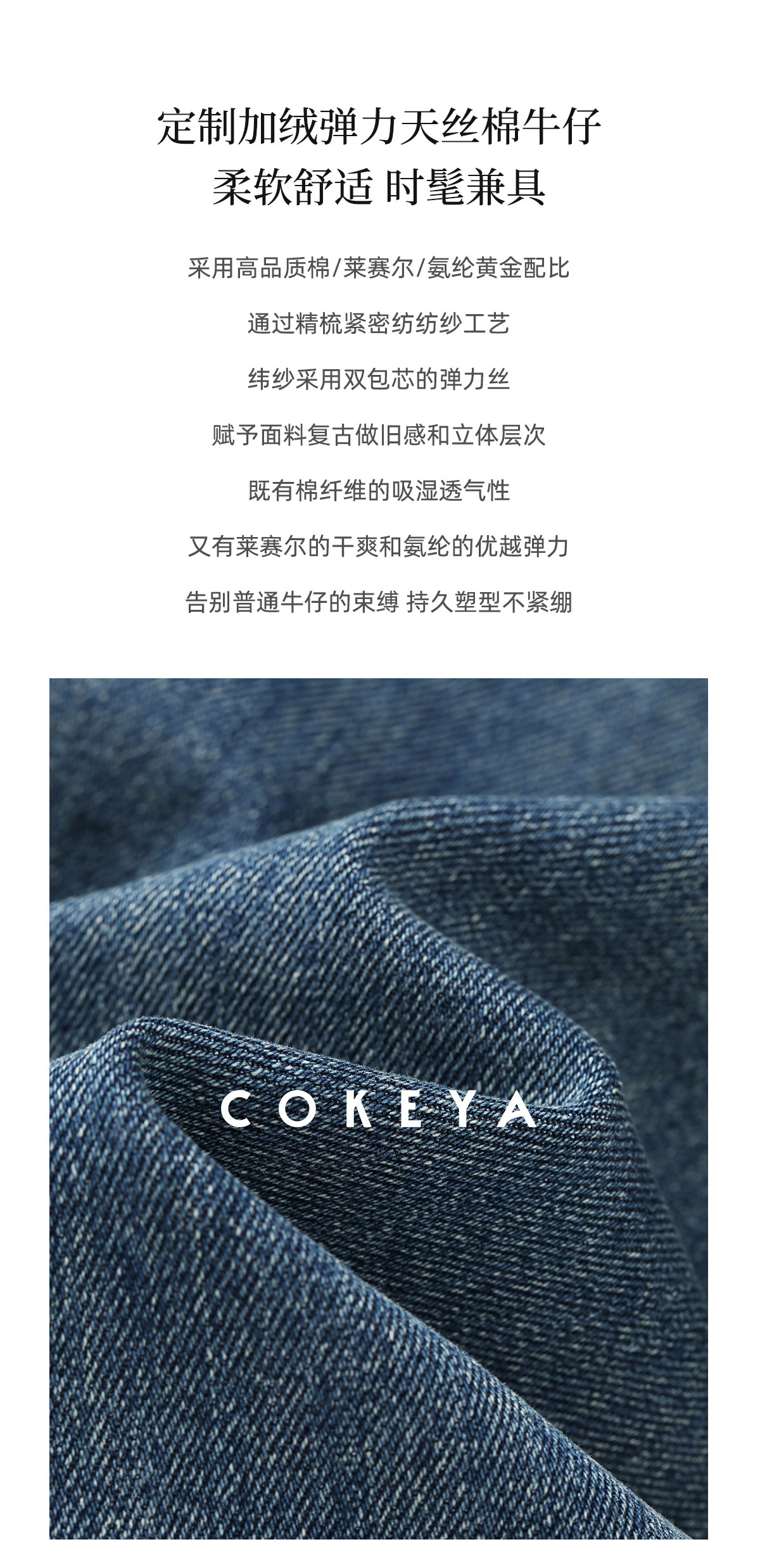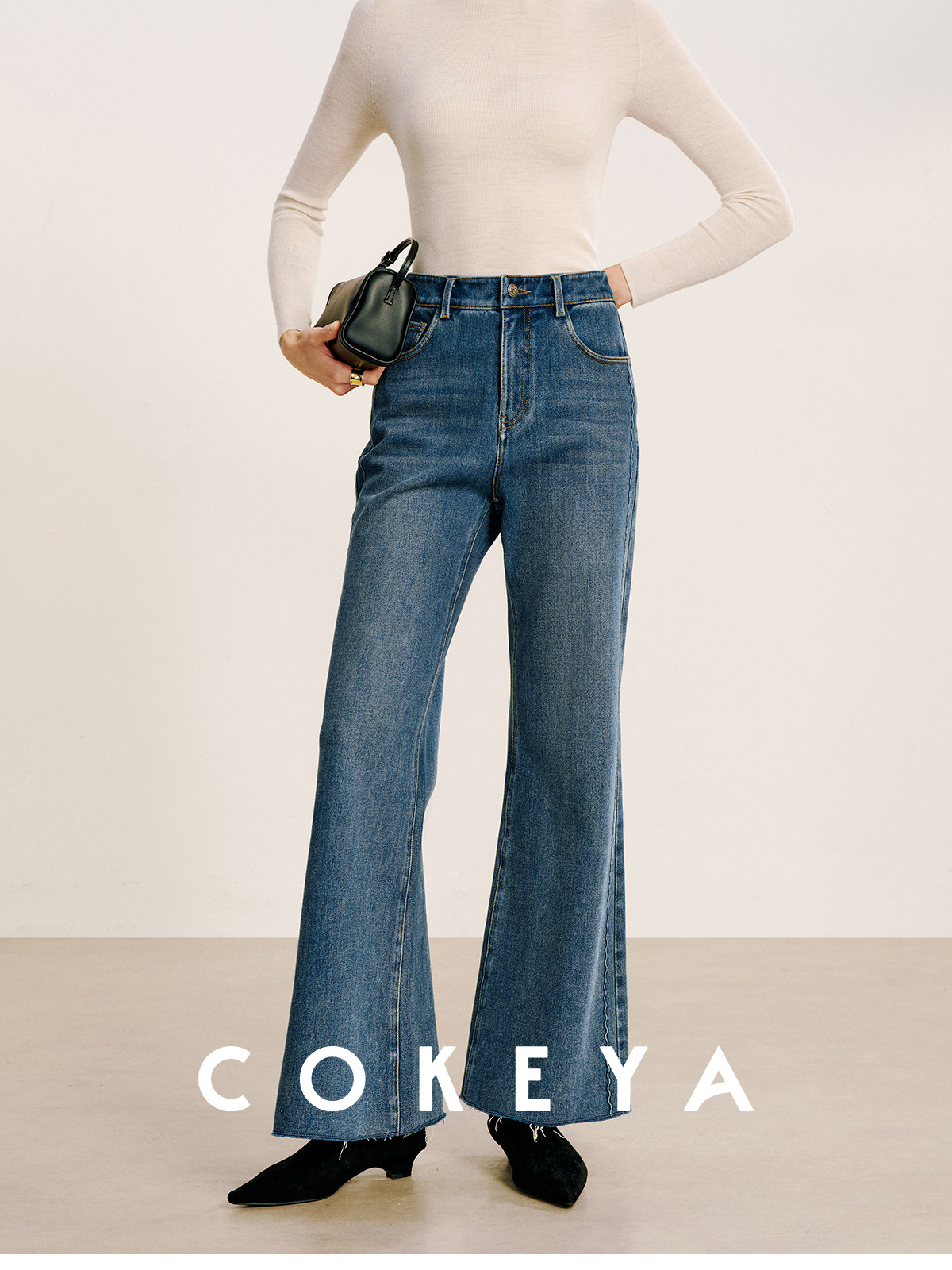 Cokeya/Fleece-Lined "Wave Pants"~Tencel Cotton High-Waisted Slimming Loose Flared Jeans for Women Winter Flared Pants