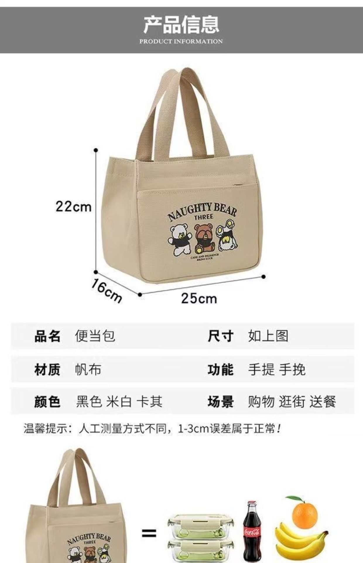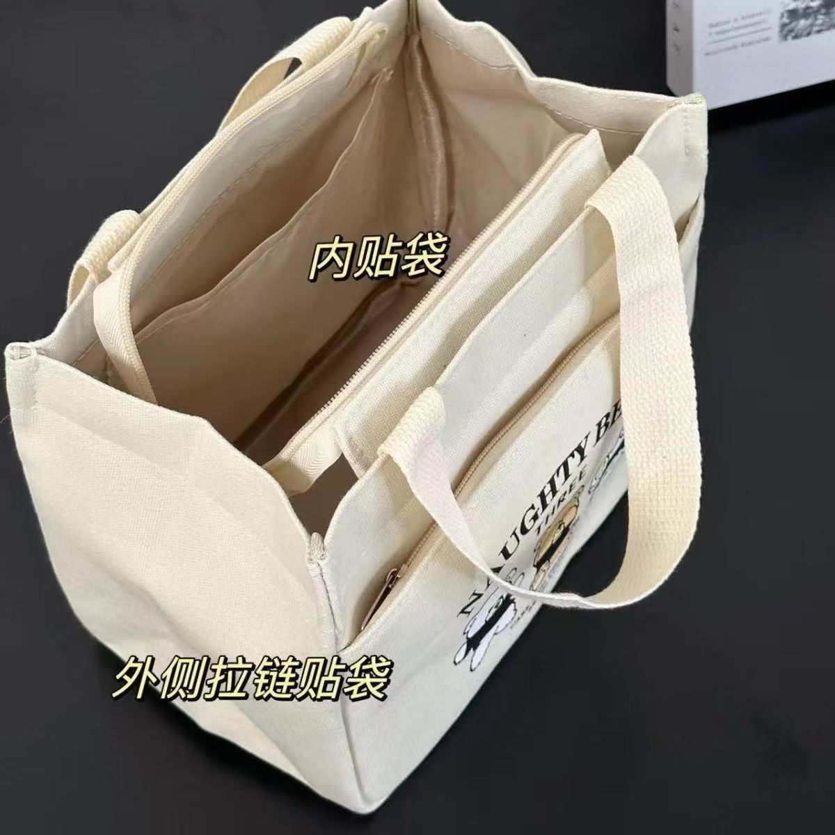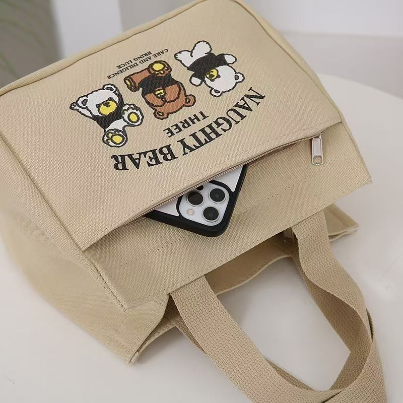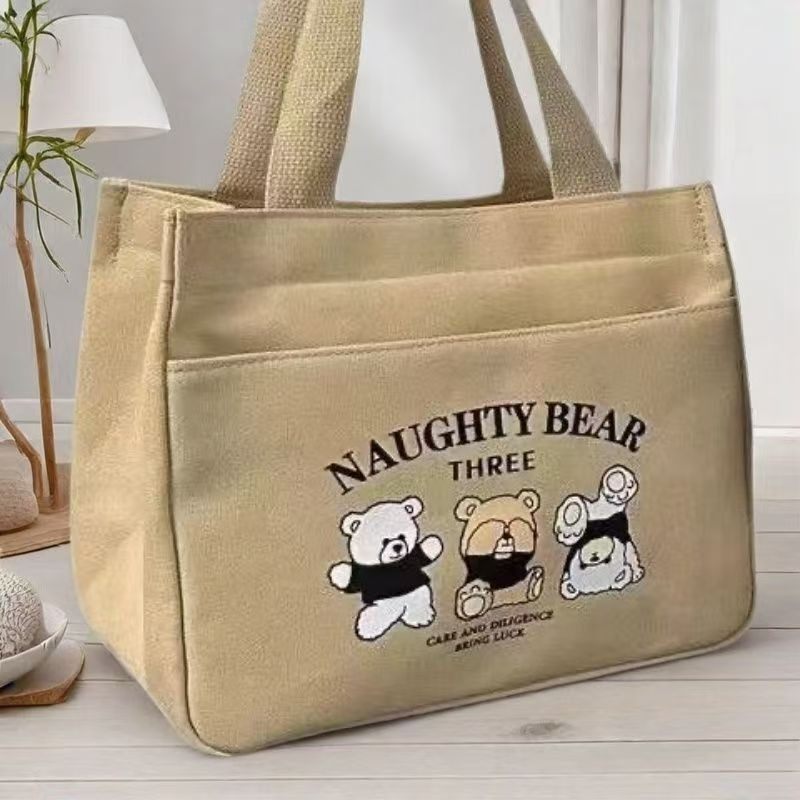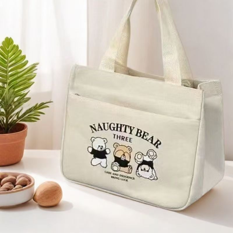 High-Appearance Canvas Tote Bag for Moms, Simple and Compact 3D Handbag for Outings, Thickened Lunch Bag for Commuting and Work