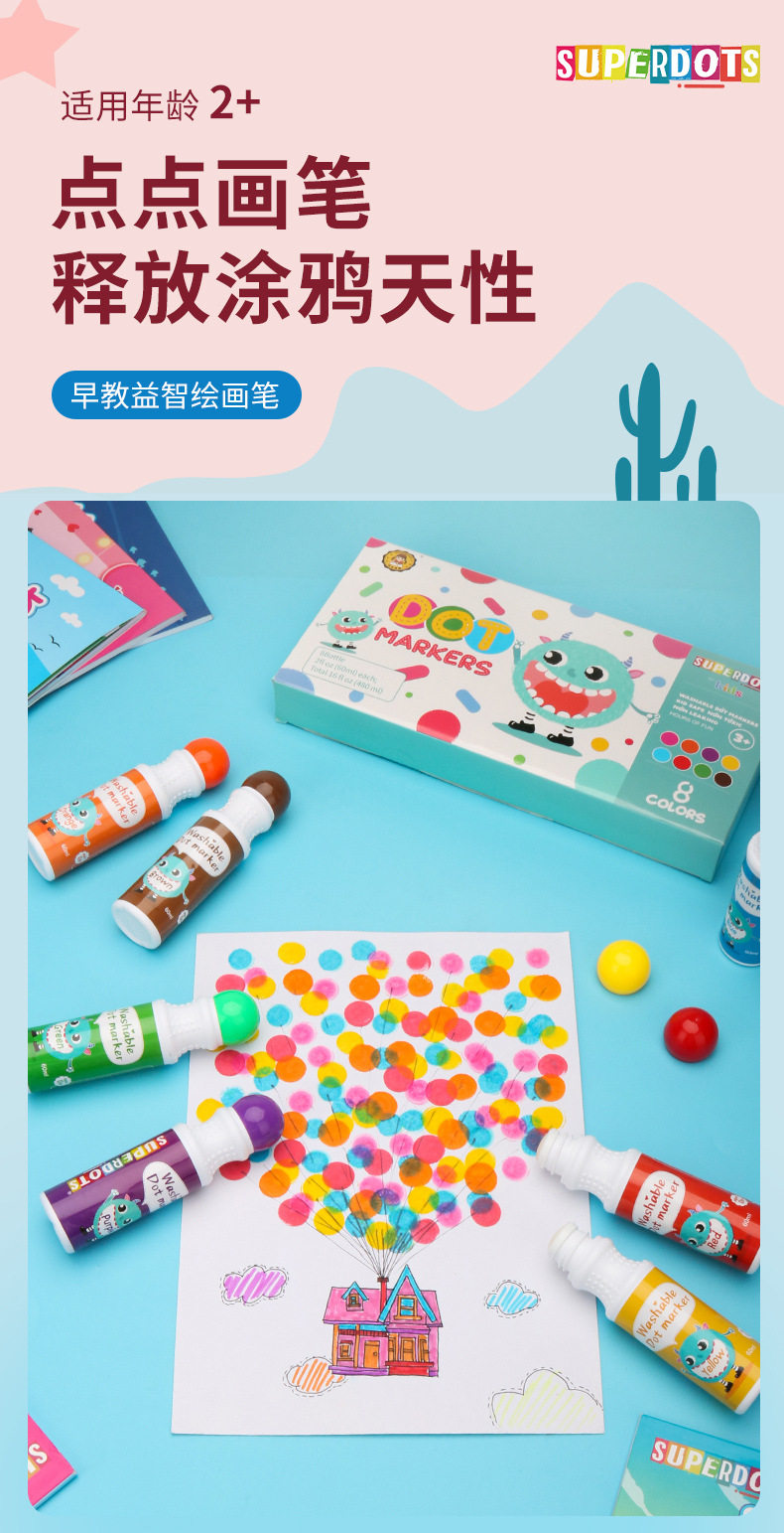 2 Years Old + Early Education Children's Watercolor Pens Are Washable and Erasable, Baby Dot Graffiti Pens, Toddler Painting Pens, Recommended by Kindergarten Teachers