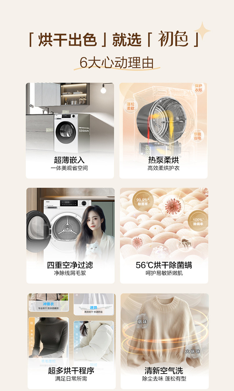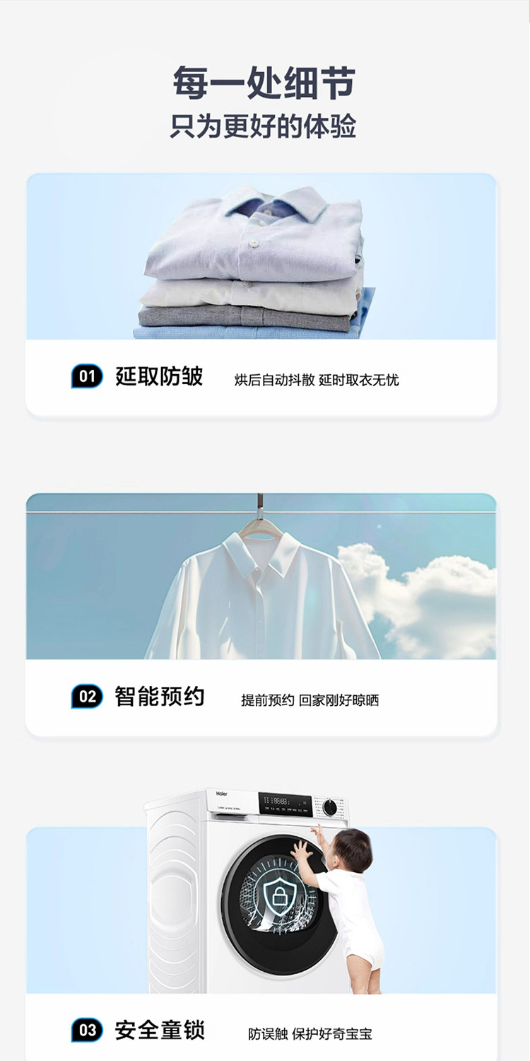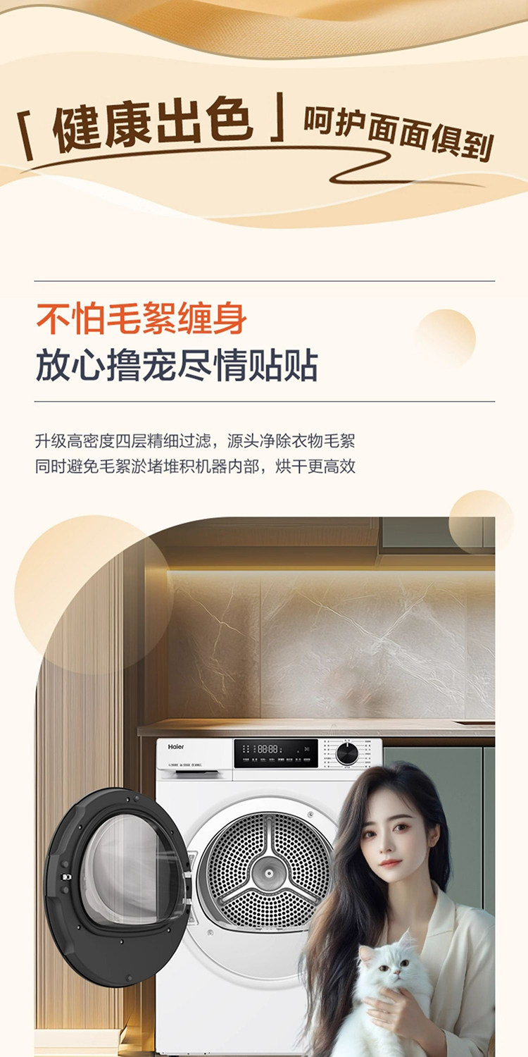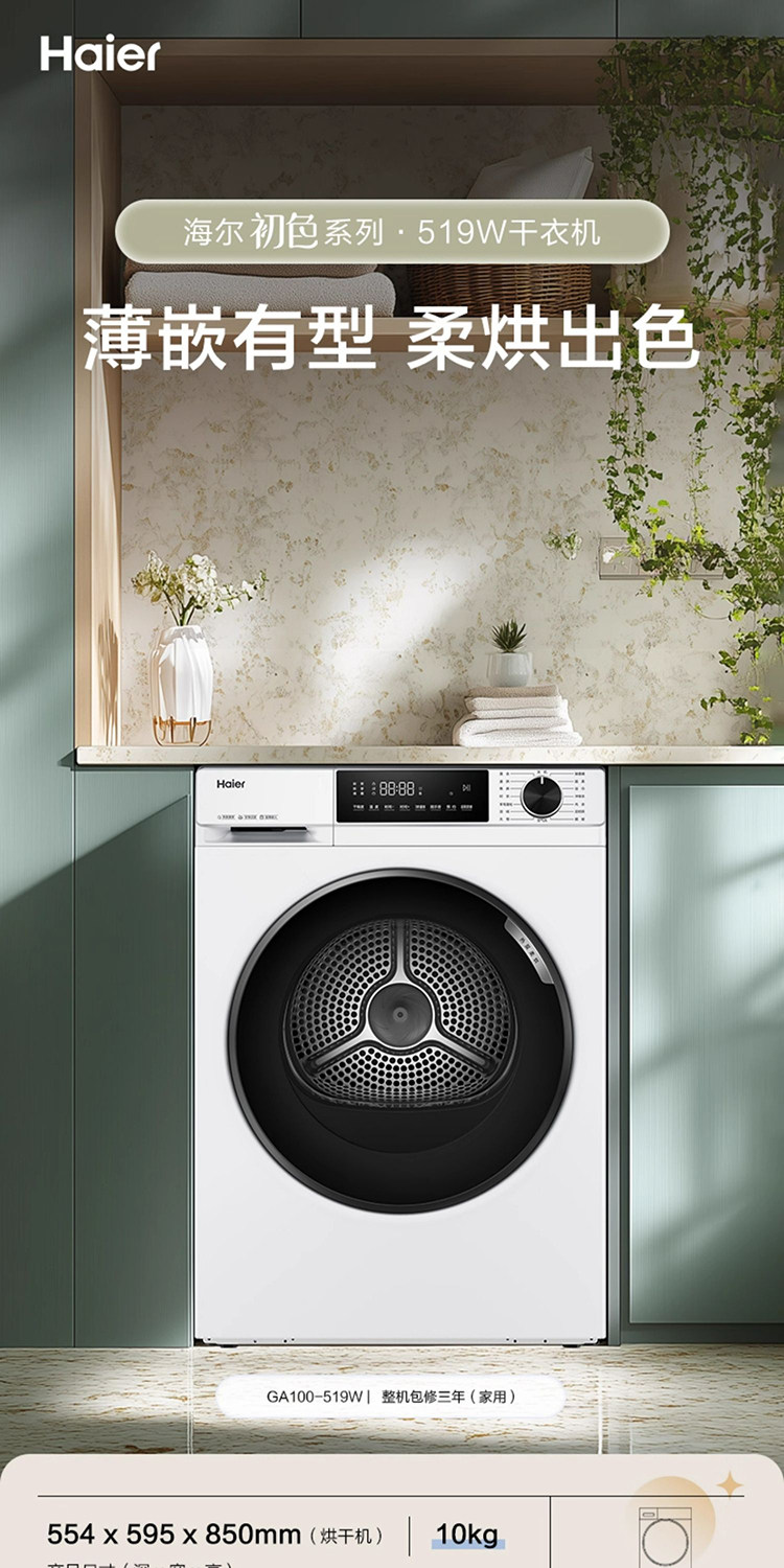 Haier GA100-519W Haier dryer 10kg ultra-thin fully automatic drum heat pump dryer