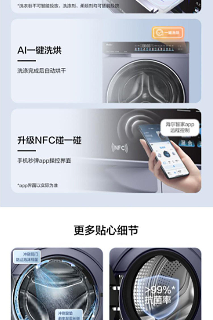 Haier [Yunxi 4.0] Xqg100-Hbleg73Kbu1 Direct Drive 1.21 Wash-To-Dry Ratio Drum Washing and Drying Machine