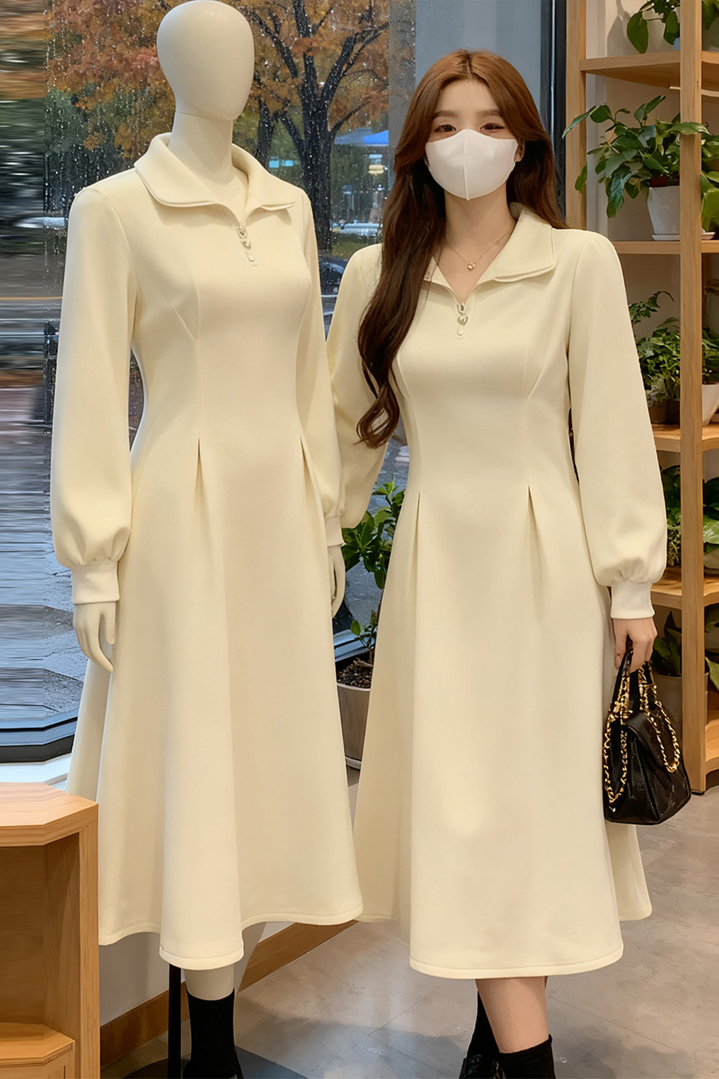 Large size sweatshirt skirt for petite women in autumn and winter plus velvet for fat mm to slim down waist and right shoulder bottoming with polo collar skirt
