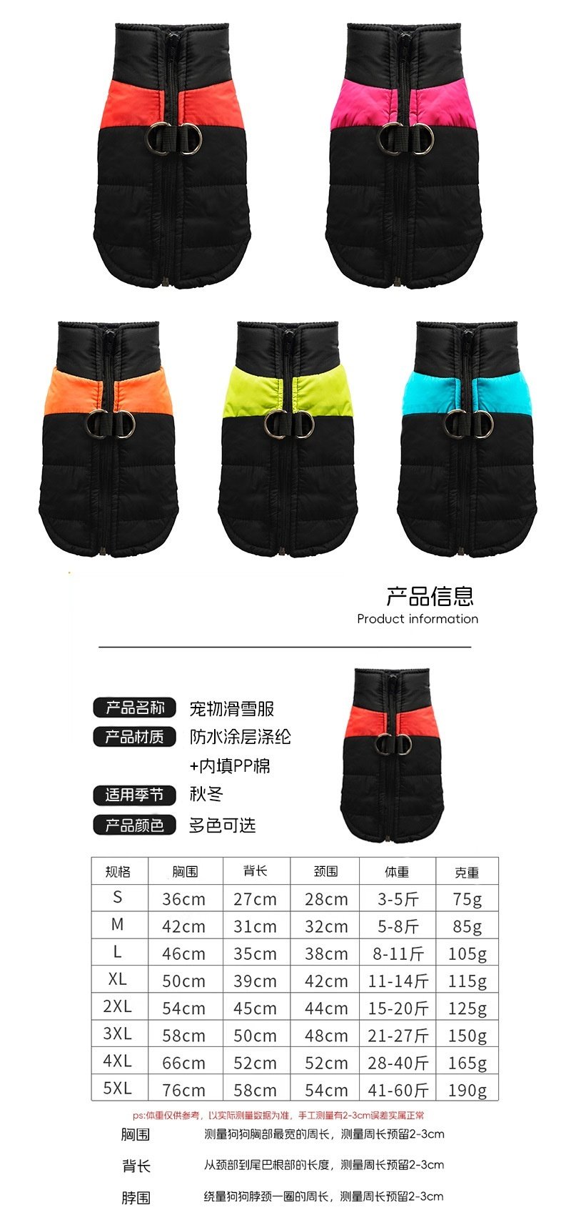 Size S (Bust 36cm, Recommended for 1.5-2.5kg Pets),M (Chest 42cm Recommended 2.5-4kg Pets),L (Chest 46cm Recommended 4-5.5kg Pets),XL (Chest 50cm Recommended 5.5-7kg Pets),XXL (Bust 54cm, Recommended 7.5-10kg Pets),3XL (Chest 58cm Recommended 10.5-13.5kg Pets),4XL (Chest 66cm, Recommended 14-20kg Pets),5XL (Chest 76cm Recommended 20.5-30kg Pets)
