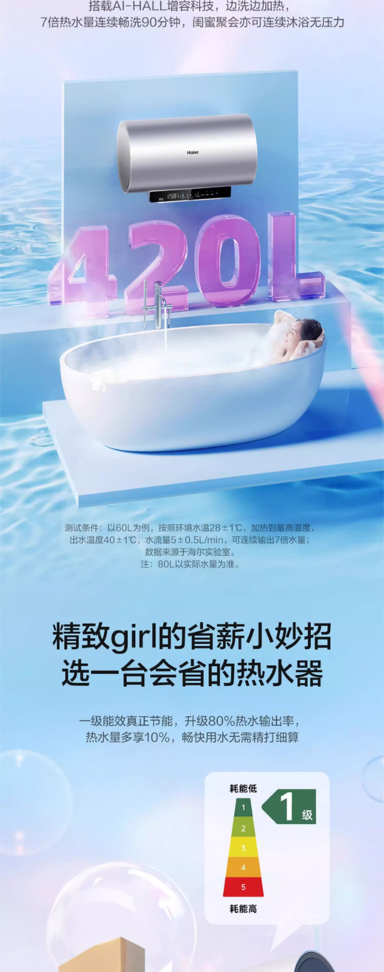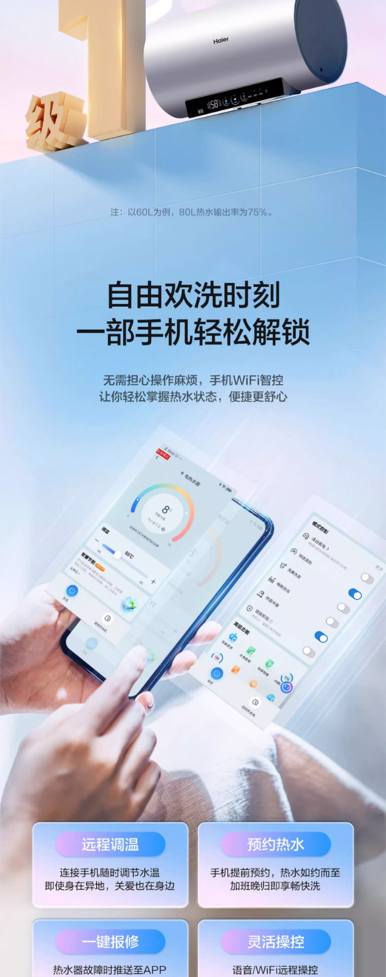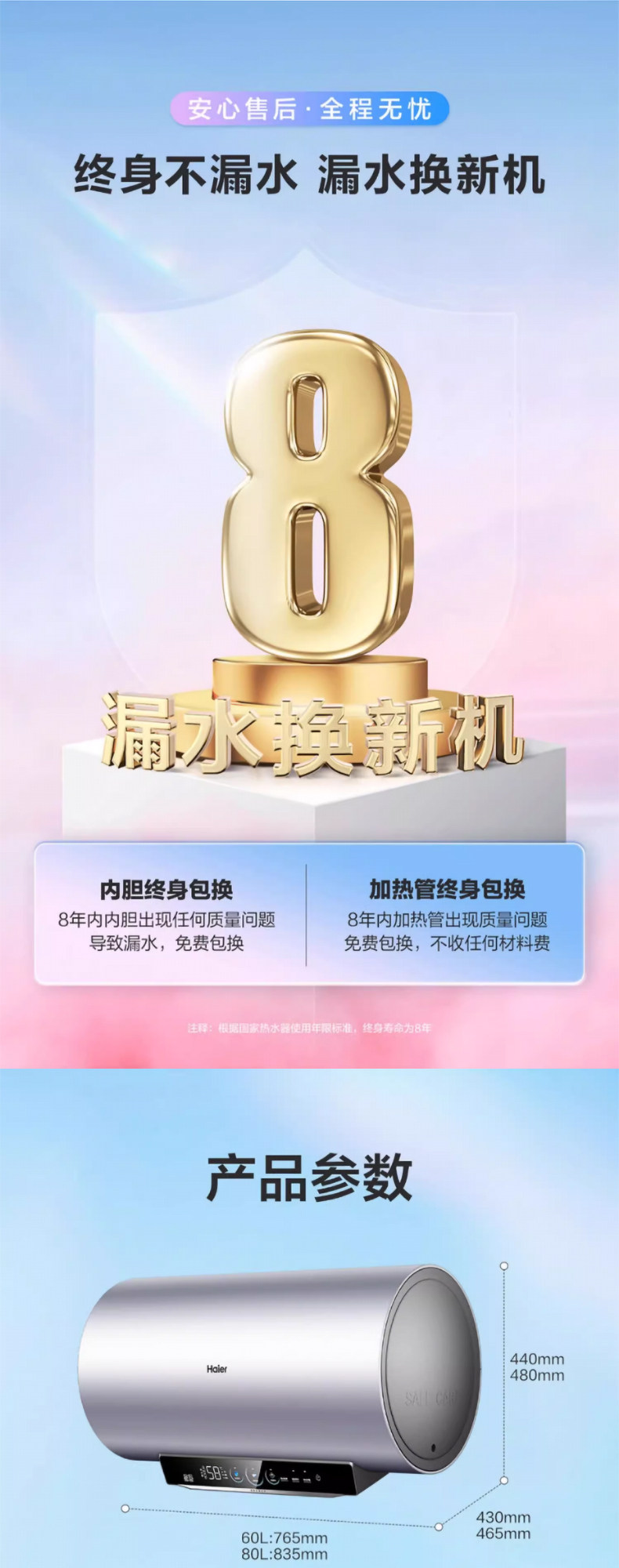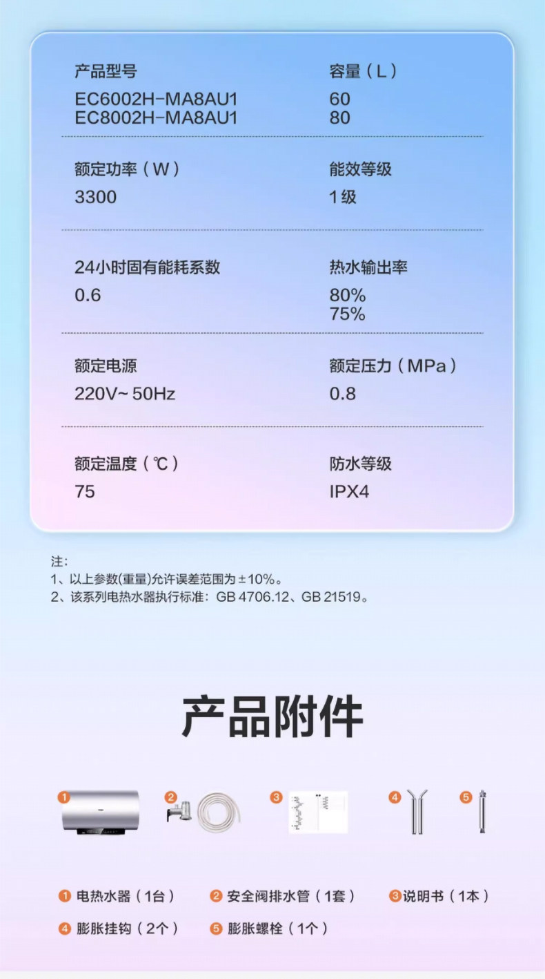 Haier Ma8 Cylindrical 60/80L Electric Water Heater for Home Use, Variable Frequency Fast Heating, Seven-Star Water Purification, No Cleaning Required, First-Class Energy Efficiency