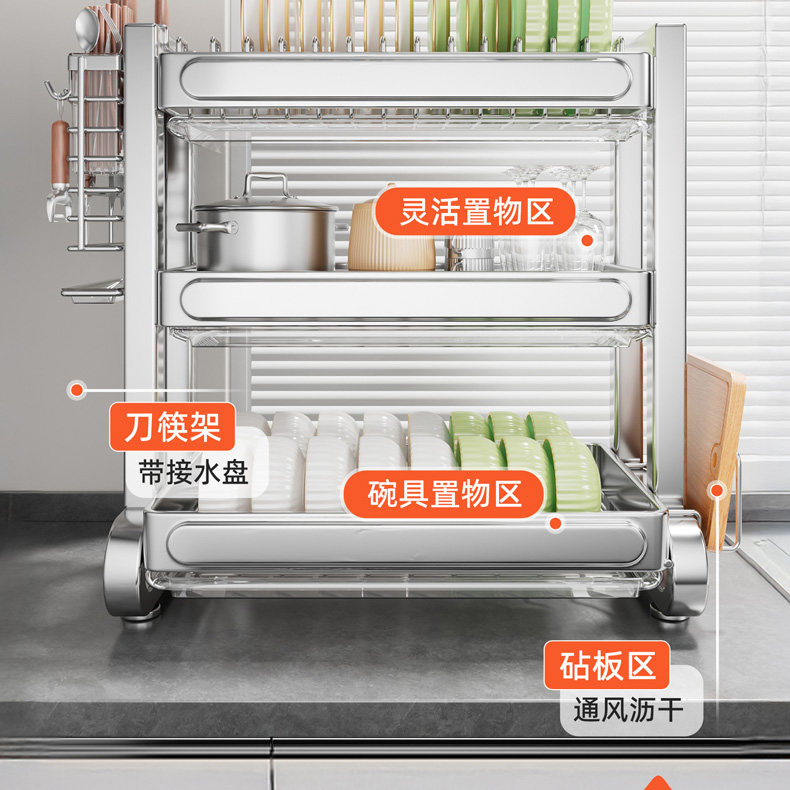 Type of Storage Supplies Pots and Pans,Chopping Board Rack,Dishes,Drain Rack,Tableware,Seasoning,Chopsticks,Knife