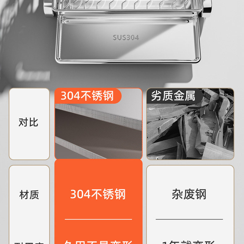 304 Stainless Steel Drain Rack for Home Kitchen, Multifunctional Bowl Cabinet for Storing Bowls, Plates, and Dishes