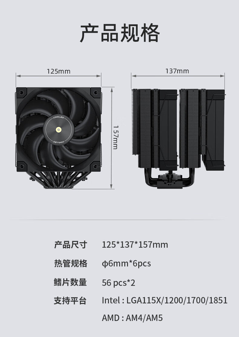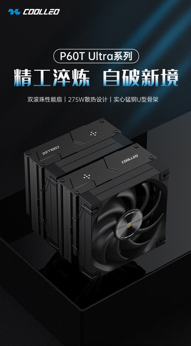 Coolio P60T Ultra/P60T V3 Ultra air-cooled radiator dual towers dual fans six heat pipes