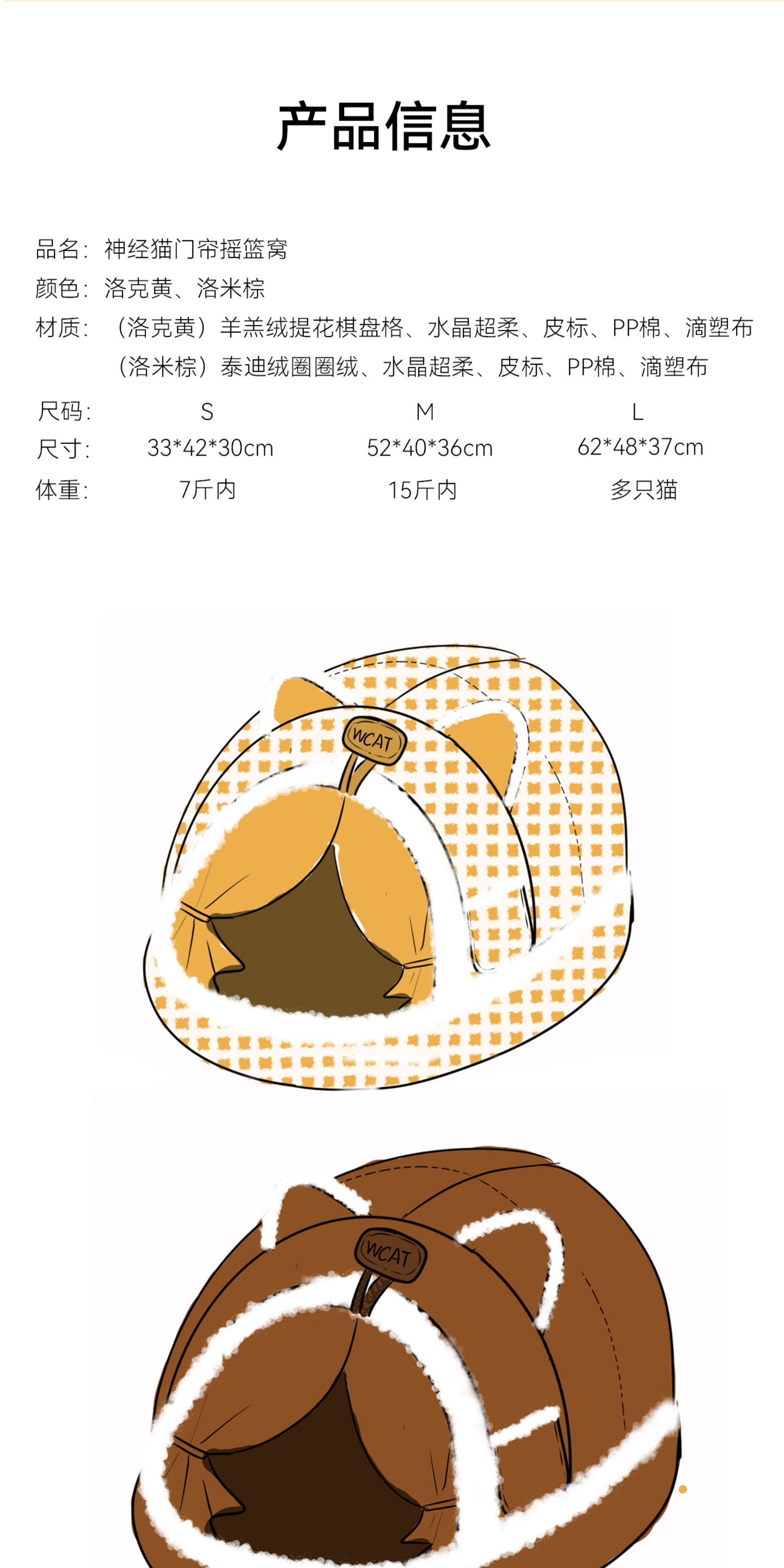Autumn and Winter Warm Cat Nest with a Sense of Security, with Door Curtain, Cat Hideout House, Small Dog Bed, Pet Cat Ear-Shaped Cat House Sleeping Nest