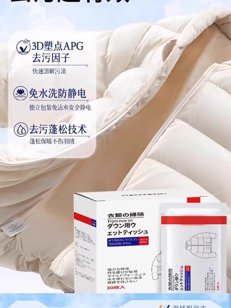 Japanese down Jacket No-Wash Cleaning Wipes Individually Packaged Dry Cleaning Agent Powerful Stain Remover Removes Oil Stains Without Leaving Marks