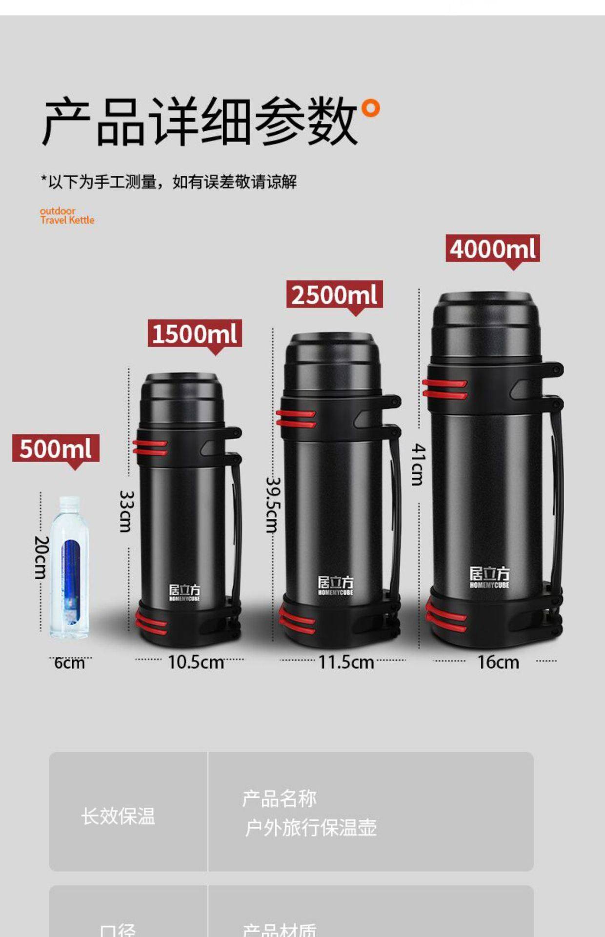 72-Hour Long-Lasting Thermal Kettle, Large Capacity 5-Liter Thermos Cup, Outdoor Portable Car Travel 316 Stainless Steel
