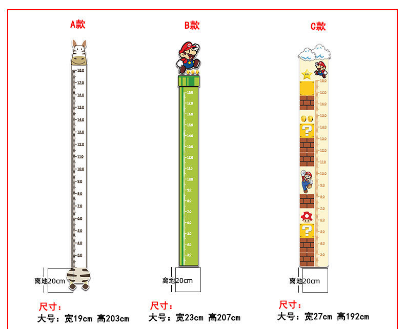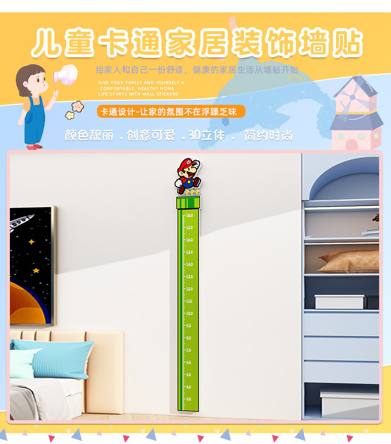 Mario Cartoon Height Measuring Ruler Wall Sticker Super Mario Children's Room Decoration Baby Bedroom Wall Decoration