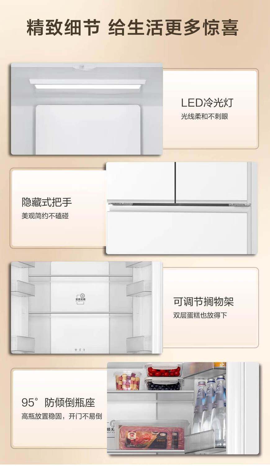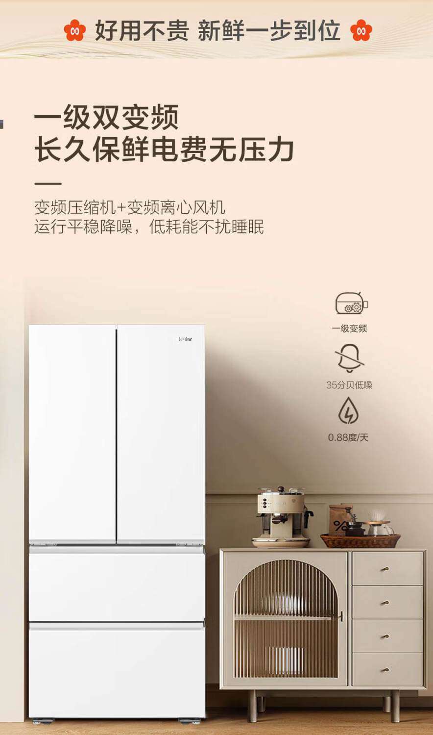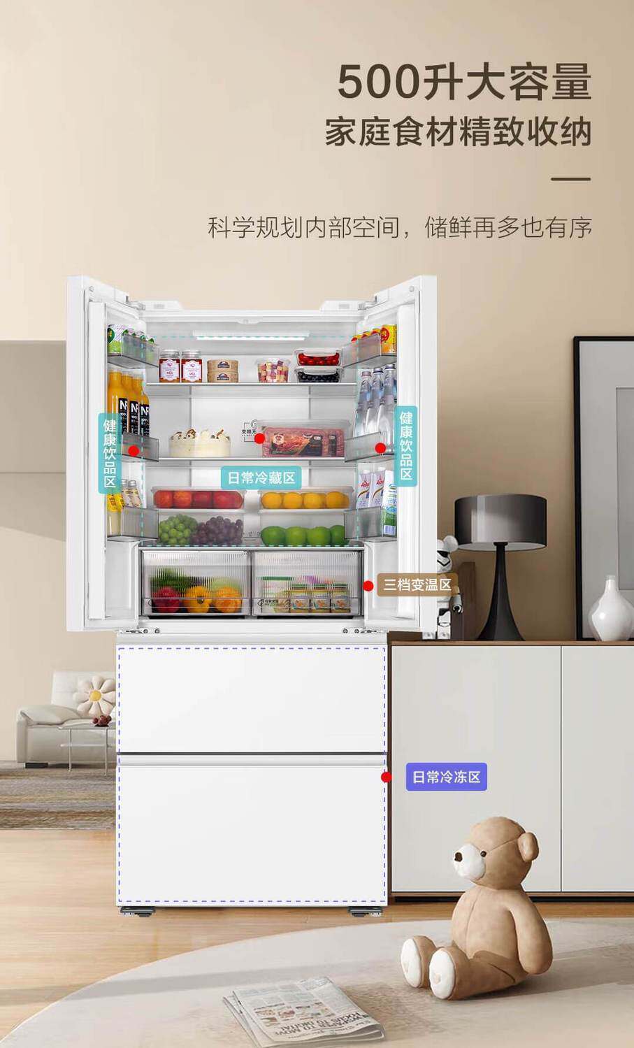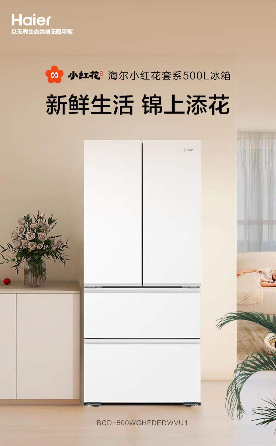 Haier Refrigerator Little Red Flower Ultra-Thin French-Style Multi-Door Household Air-Cooled Frost-Free First-Class Bcd-500Wghfdedwvu1
