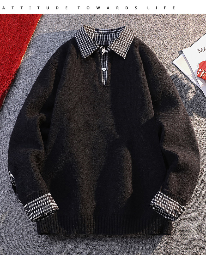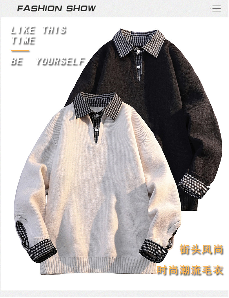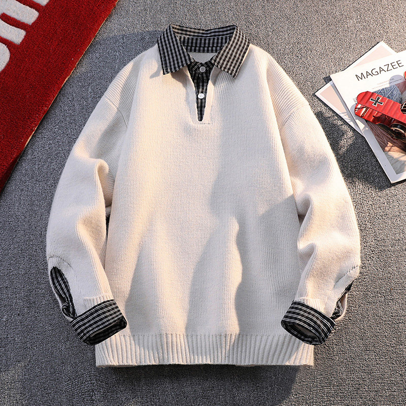 Men's Loose-Fitting High-End Casual Hong Kong Style Sweater with Polo Collar, Trendy Brand Knitwear for Autumn and Winter