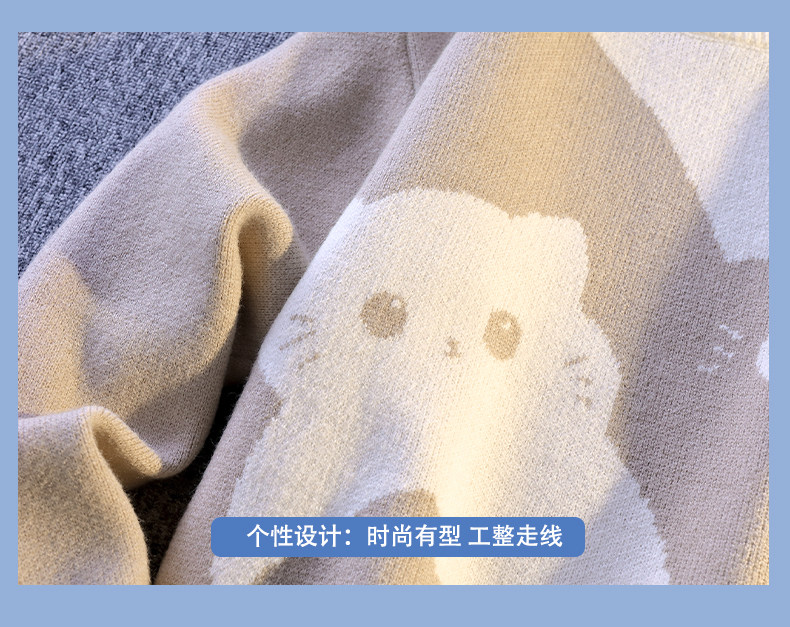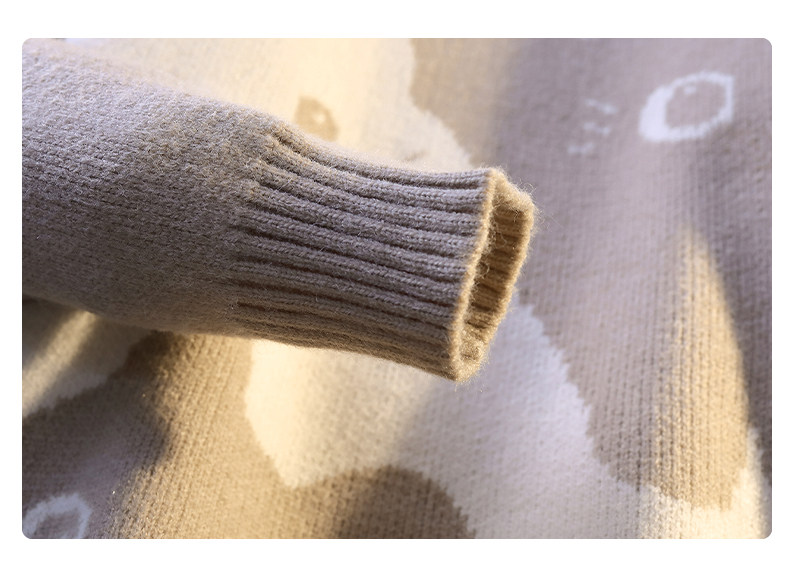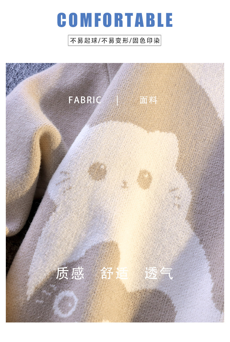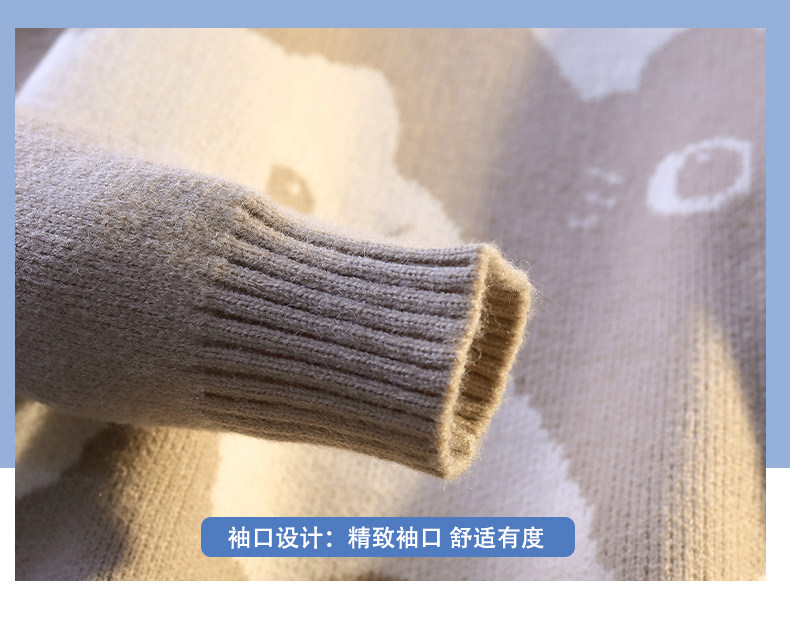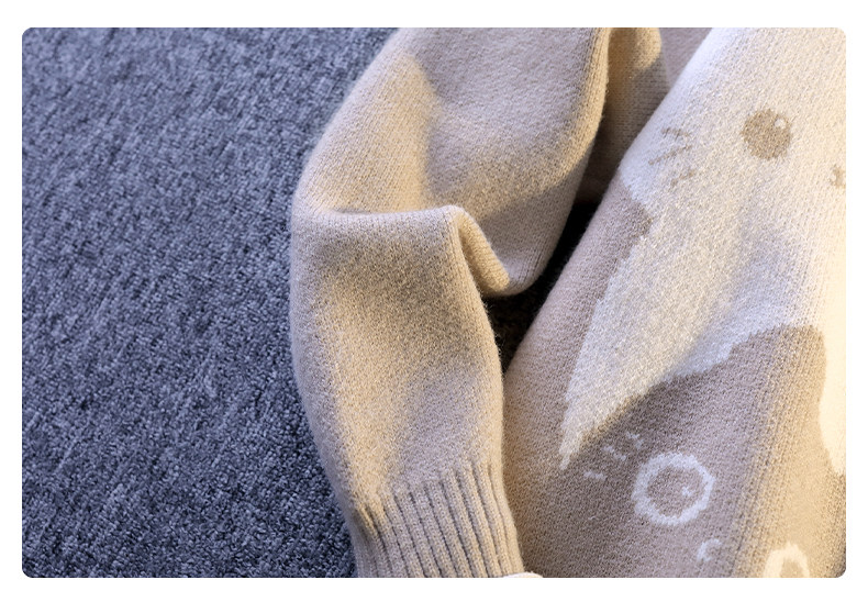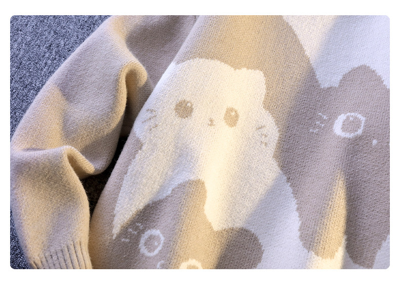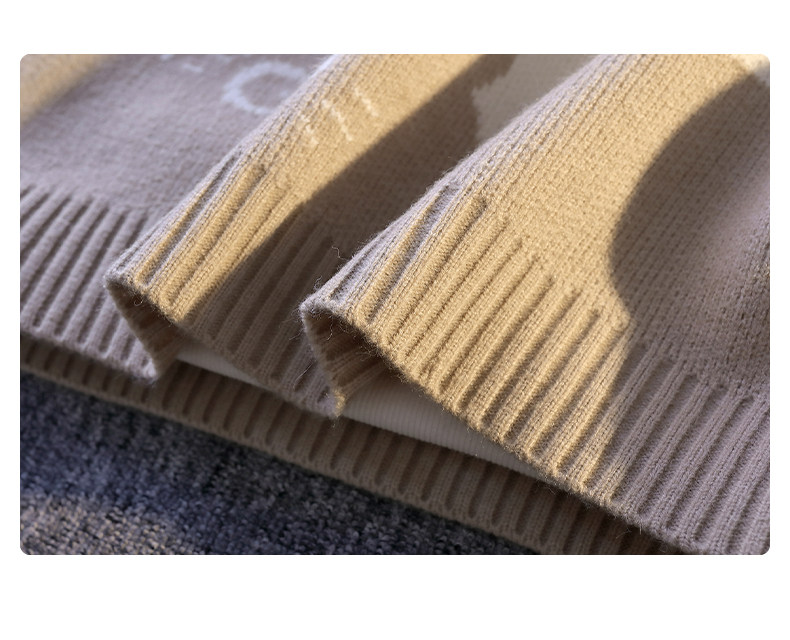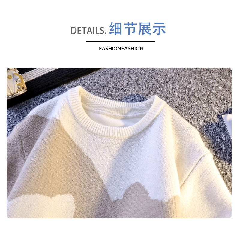 College Style Round Neck Sweater for Men in Autumn and Winter, Contrasting Color Cat Knit Sweater, Loose and Lazy Style, Handsome and Warm Top
