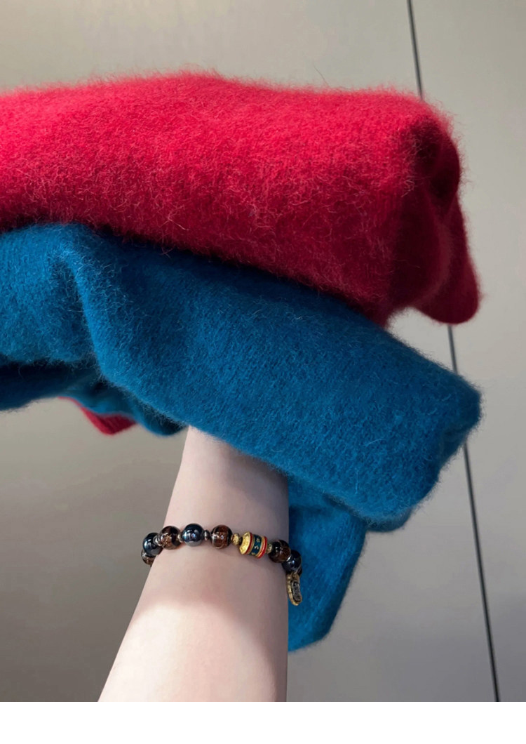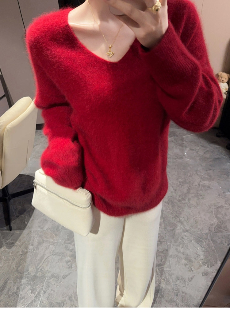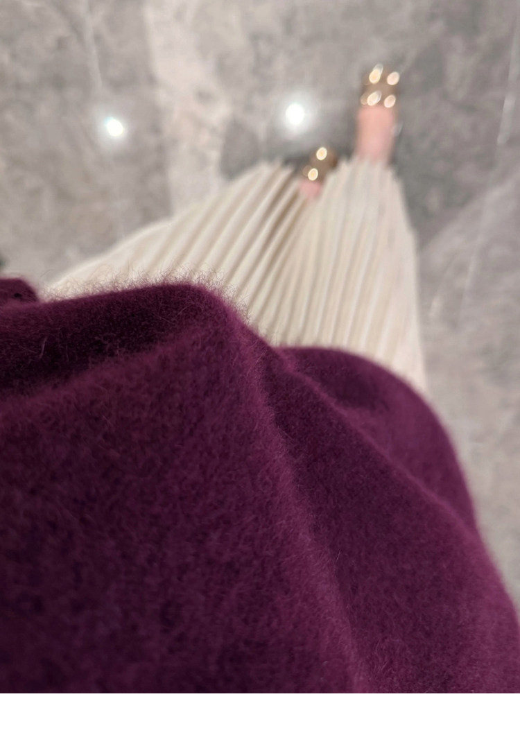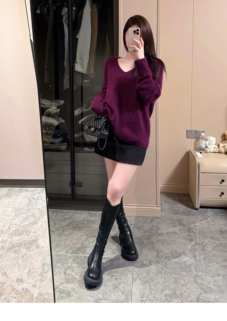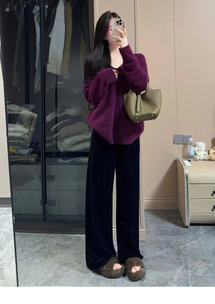 Autumn and Winter V-Neck Grape Purple Raccoon Velvet Knit Sweater for Women, Lazy Style, Elegant Inner Layer Sweater, High-End Base Top