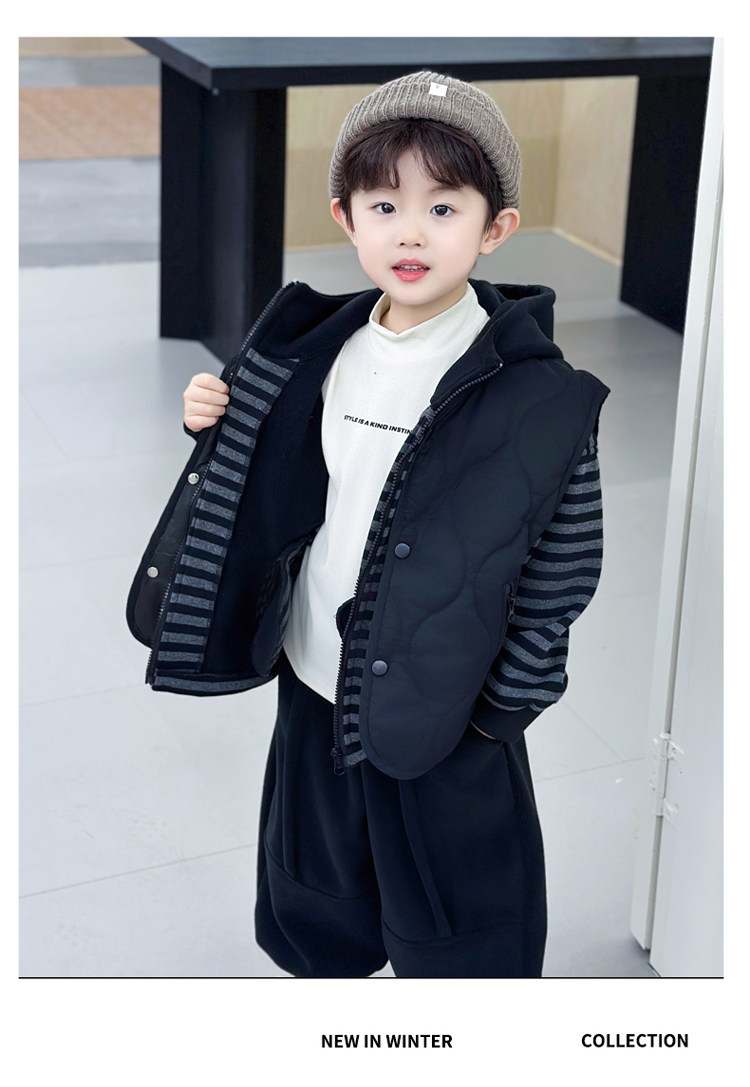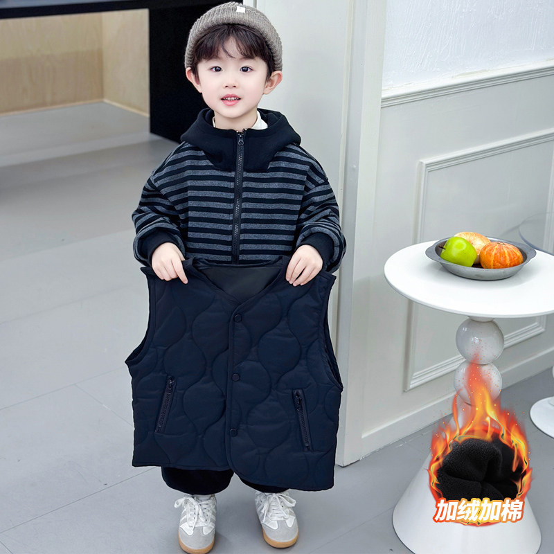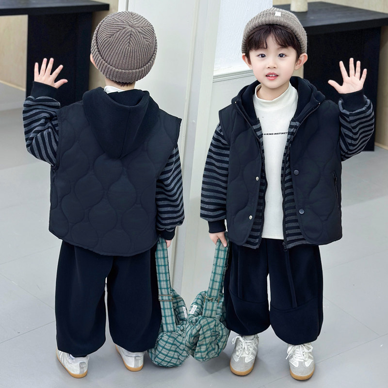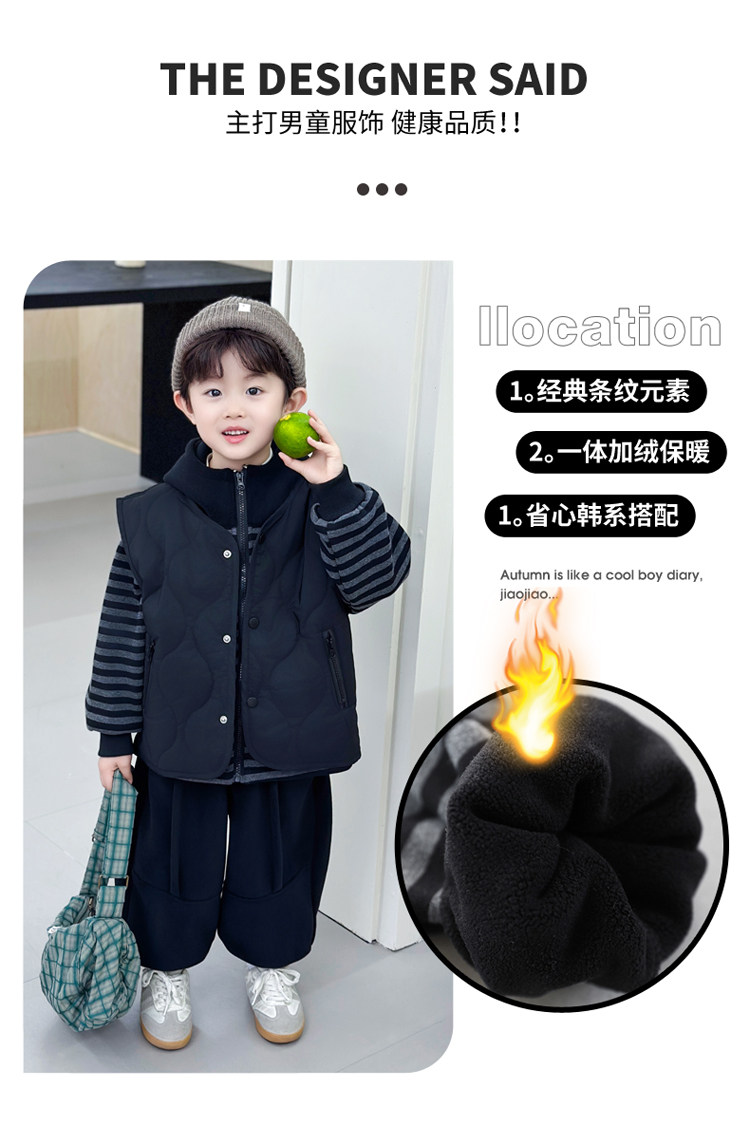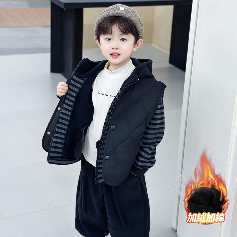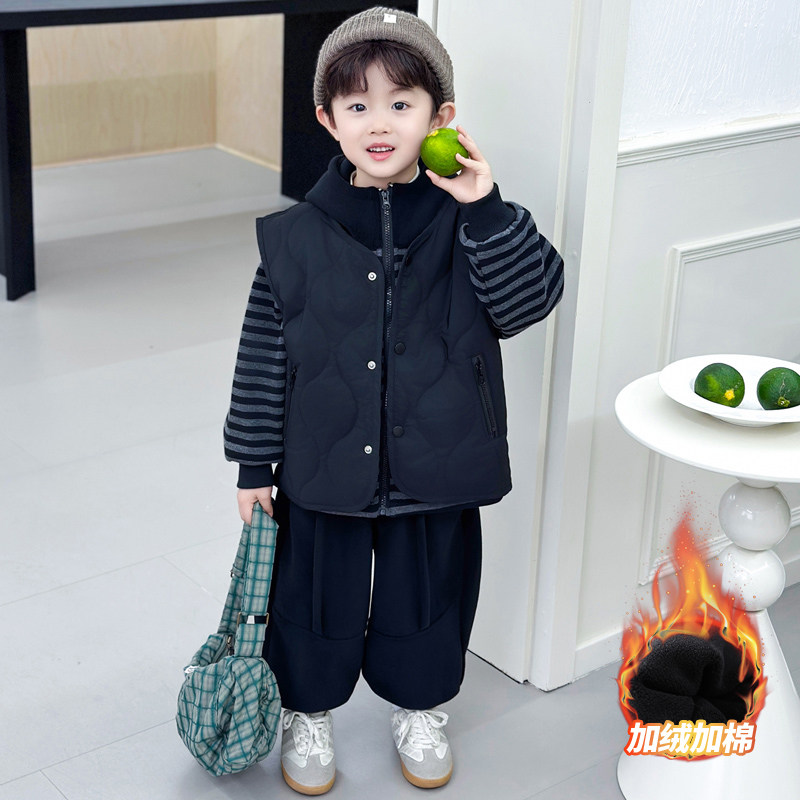Boys suit autumn and winter 2025 new style baby plus velvet clothes children's quilted vest and pants three-piece set