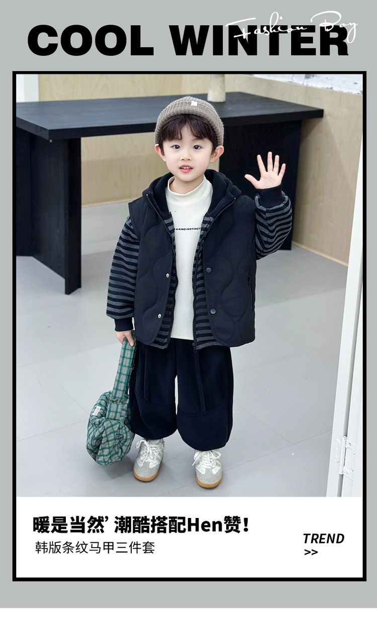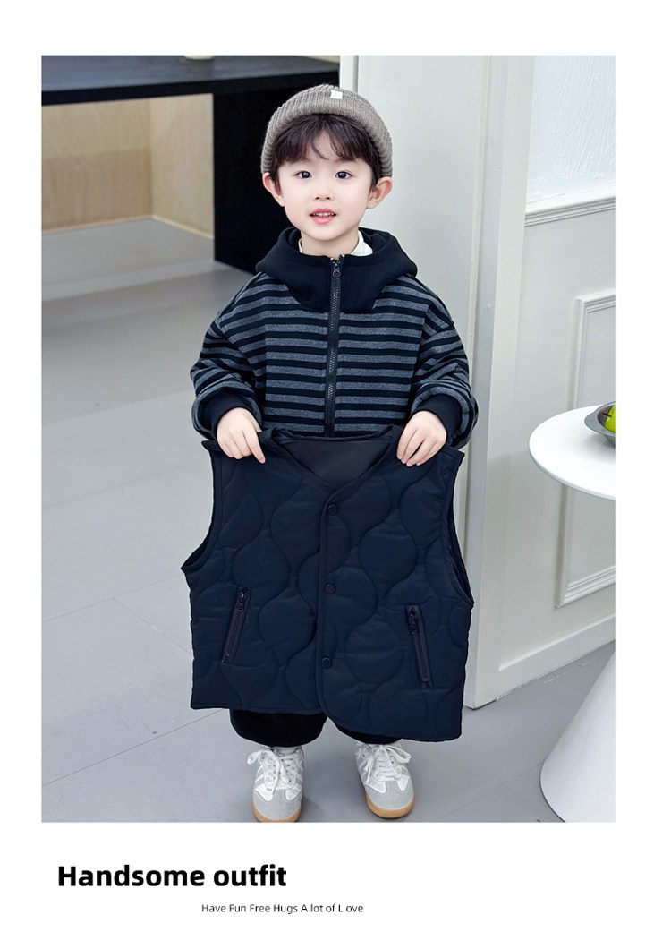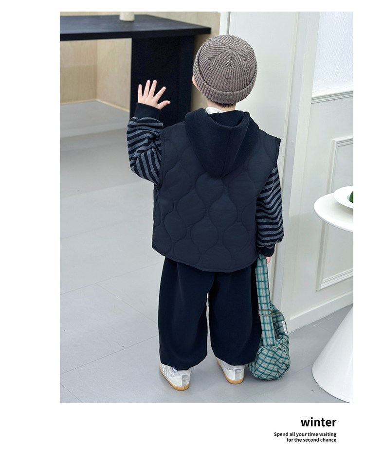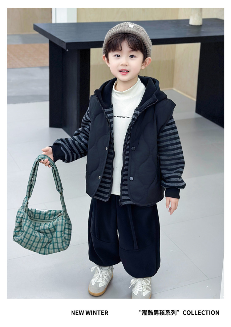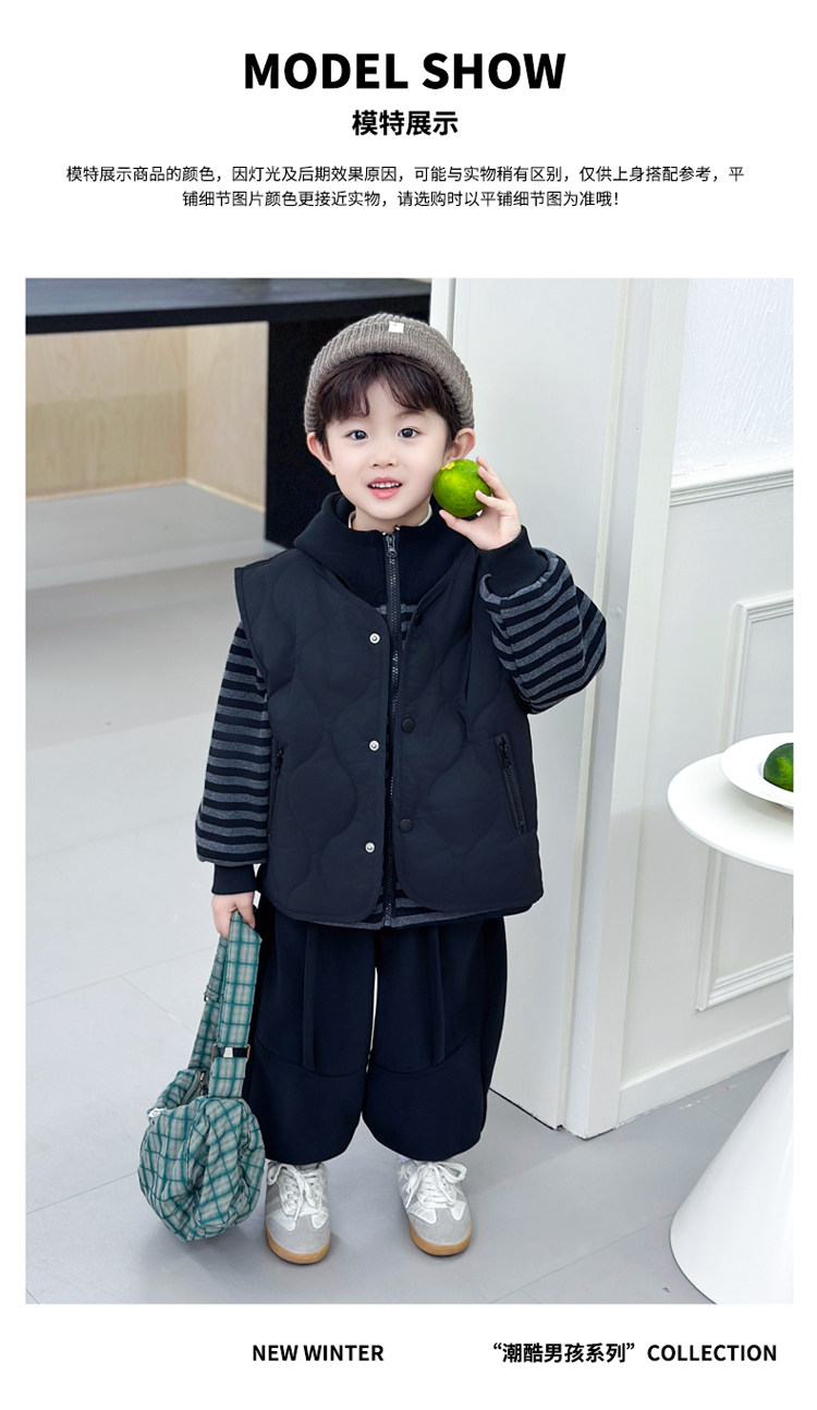 Boys suit autumn and winter 2025 new style baby plus velvet clothes children's quilted vest and pants three-piece set