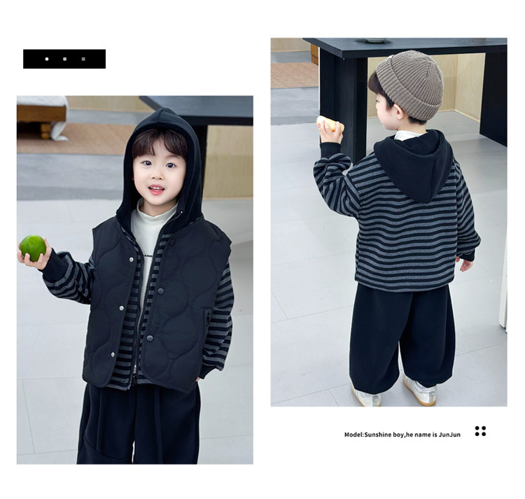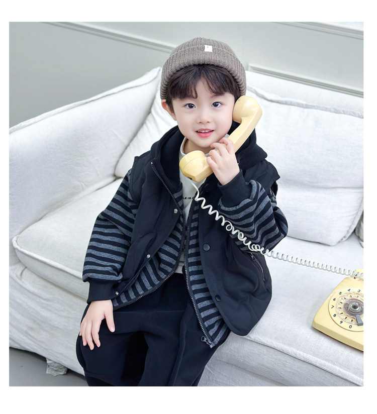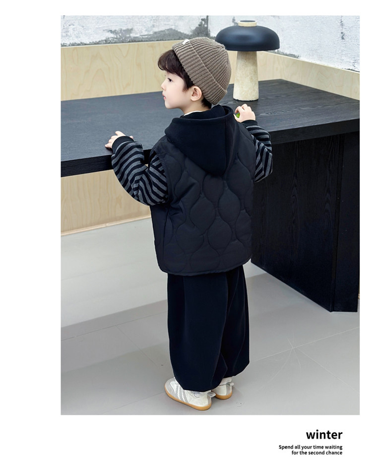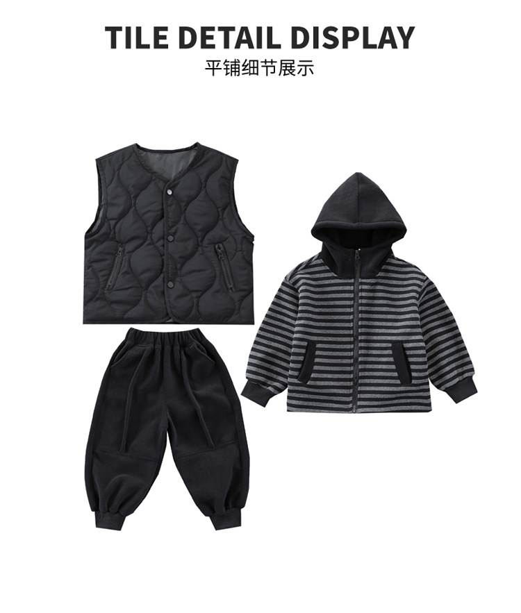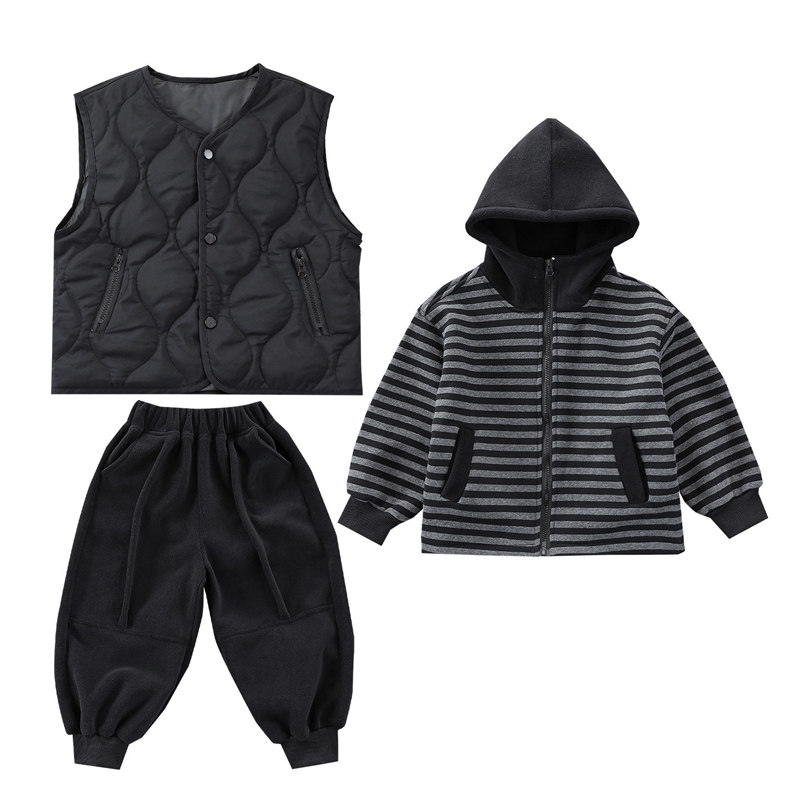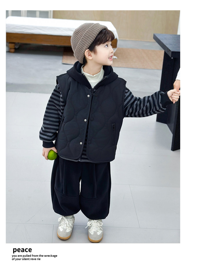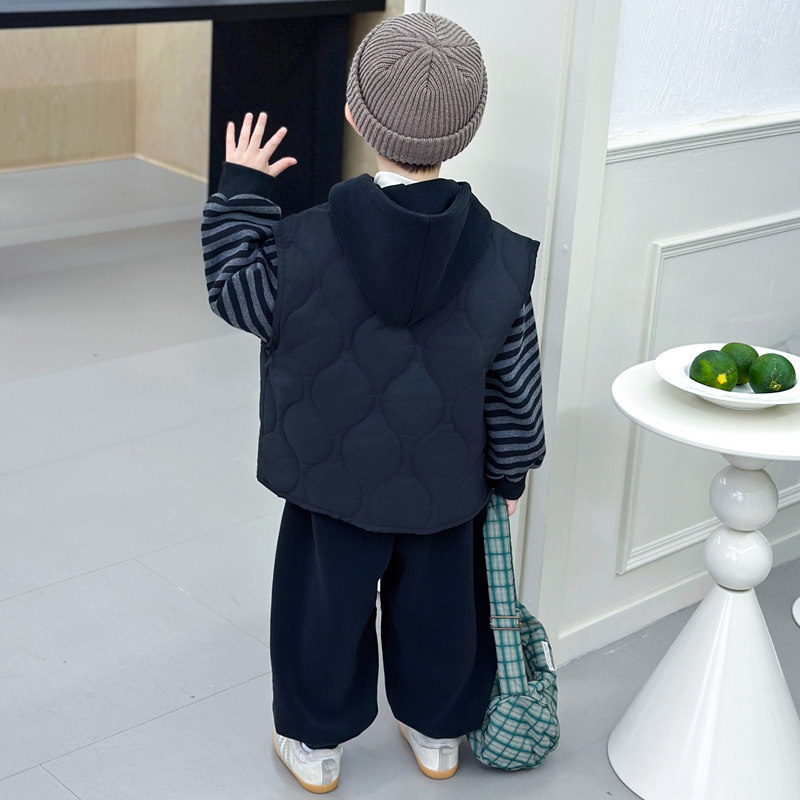 Boys suit autumn and winter 2025 new style baby plus velvet clothes children's quilted vest and pants three-piece set