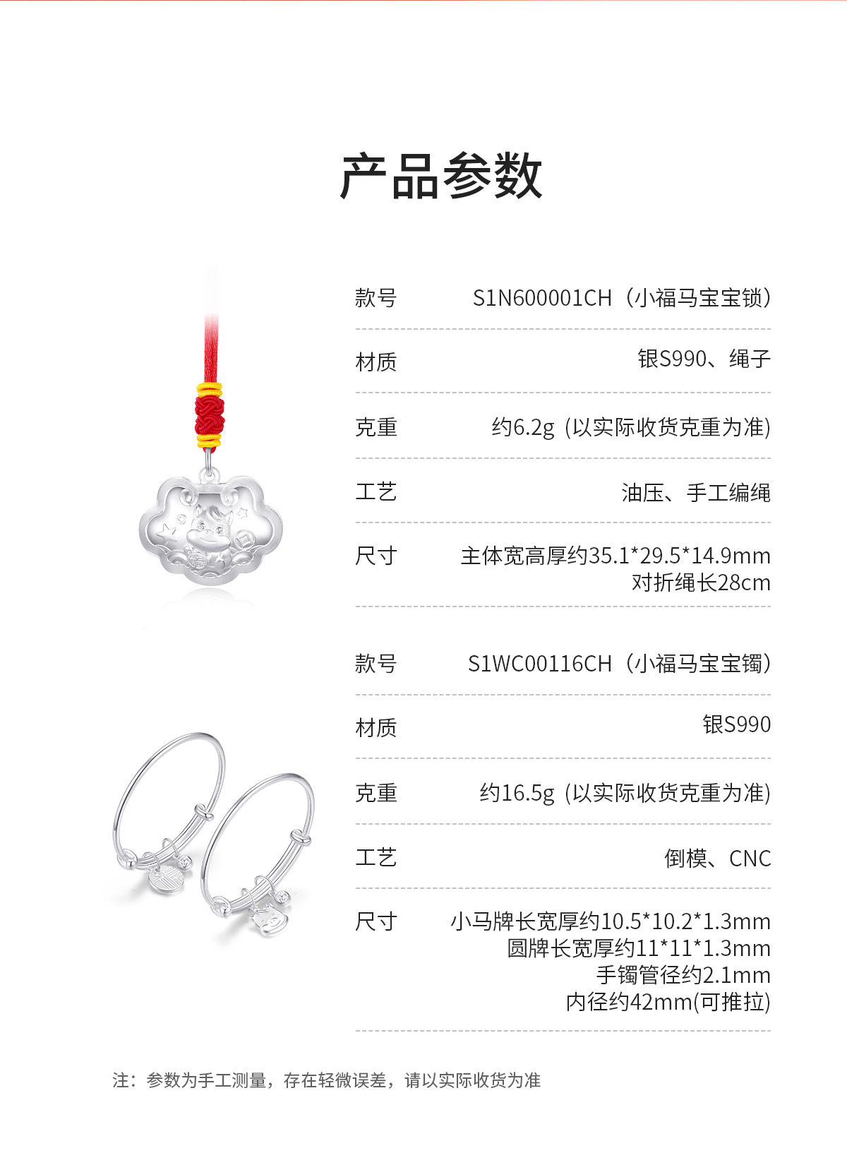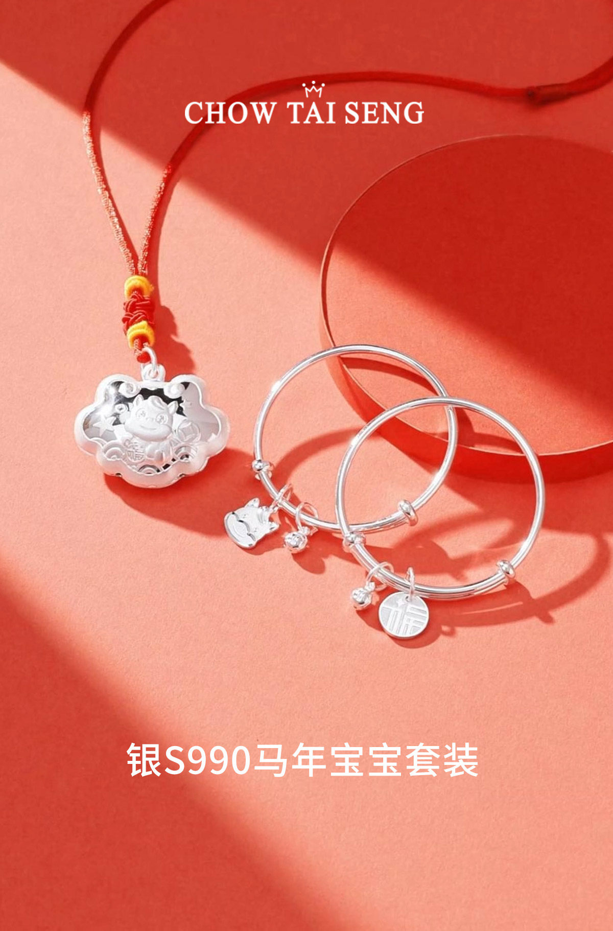 Zhou Taisheng Silver S990 Pure Silver Year of the Horse Baby Set Birth Year Children's Bracelet Baby Pendant New Birthday Gift