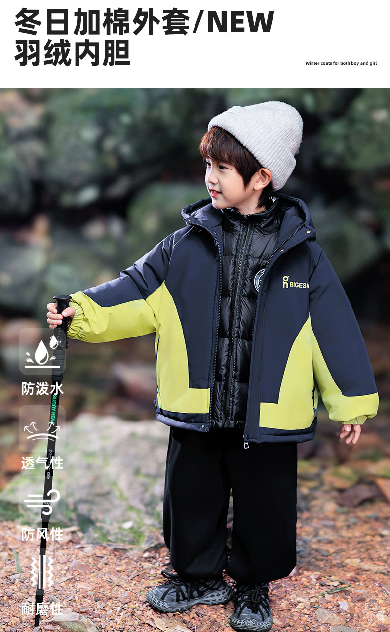 Boys' winter down jacket lining cotton jacket 2025 winter new children's thickened three-in-one assault clothes