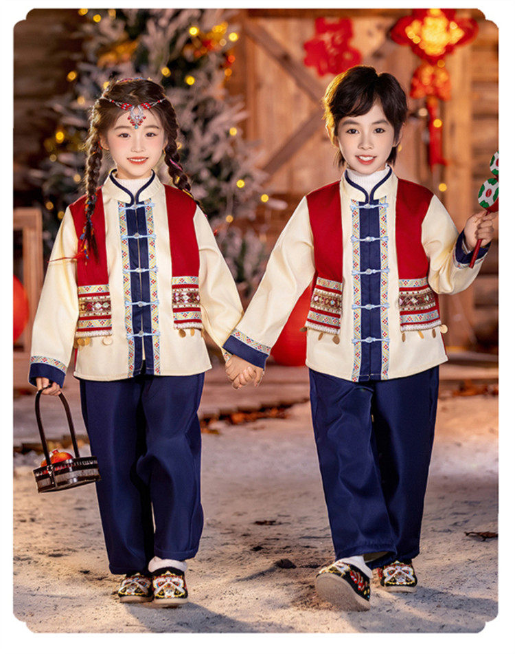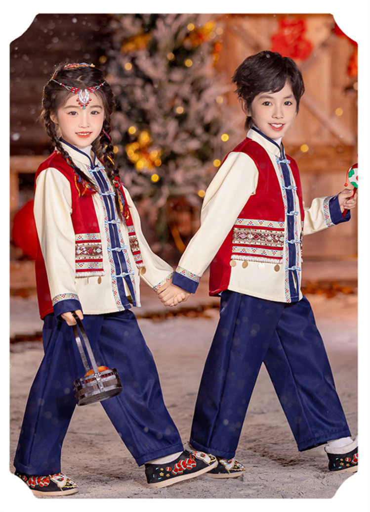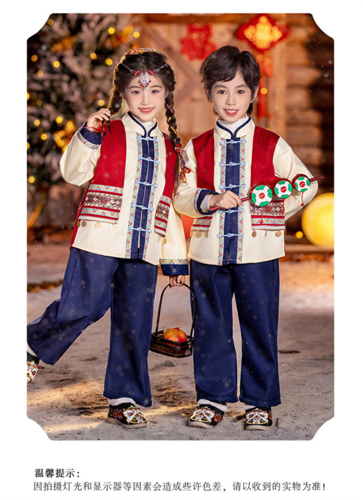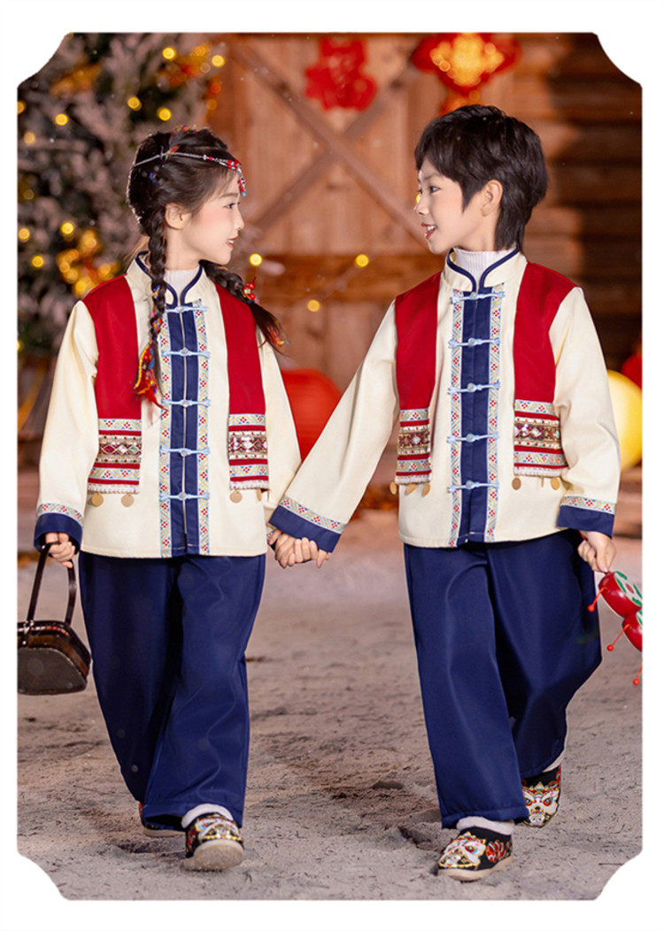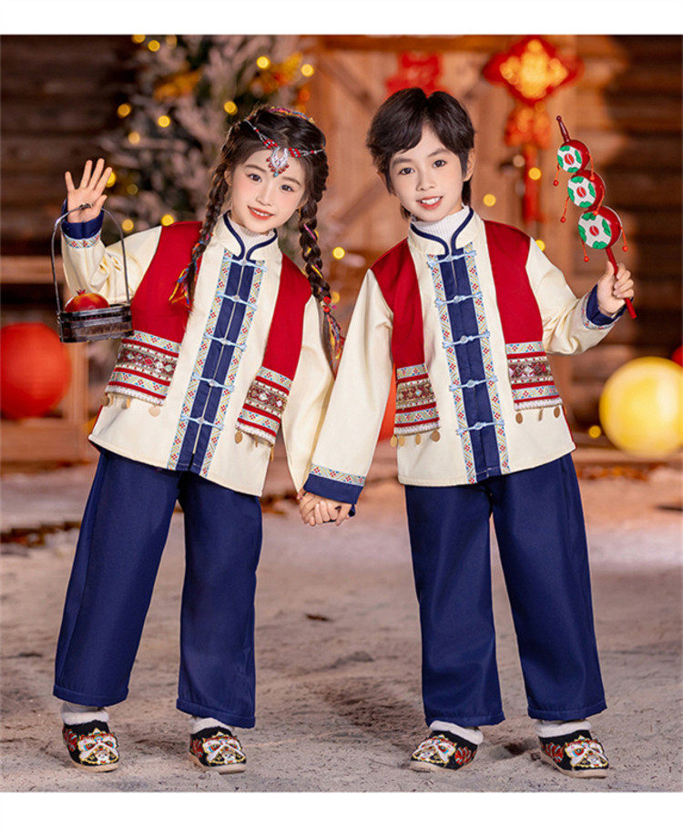 Ethnic Minority Style Clothing, Autumn and Winter Thickened Version, Children's Yunnan Dali Bai Ethnic Costume for Boys and Girls, Traditional Costume for New Year's Performance