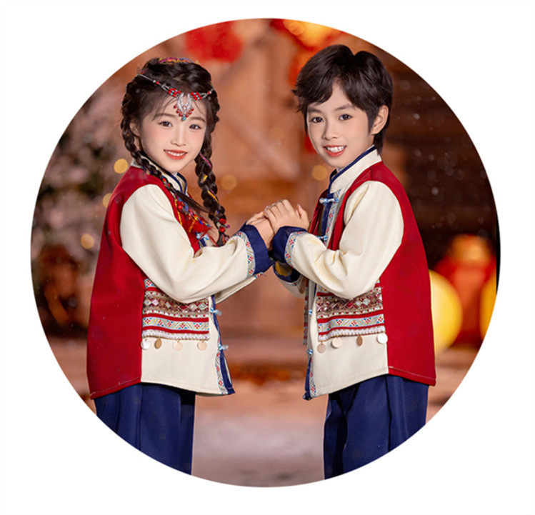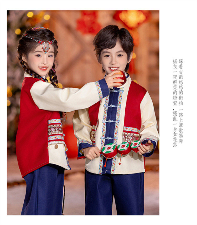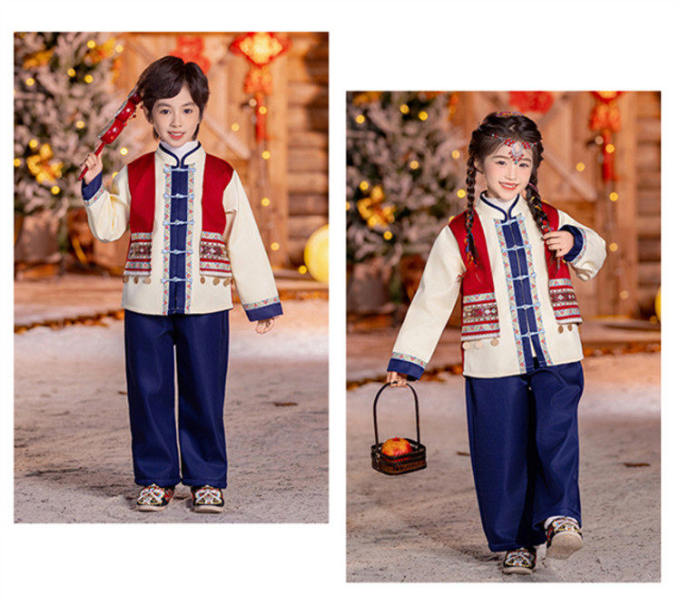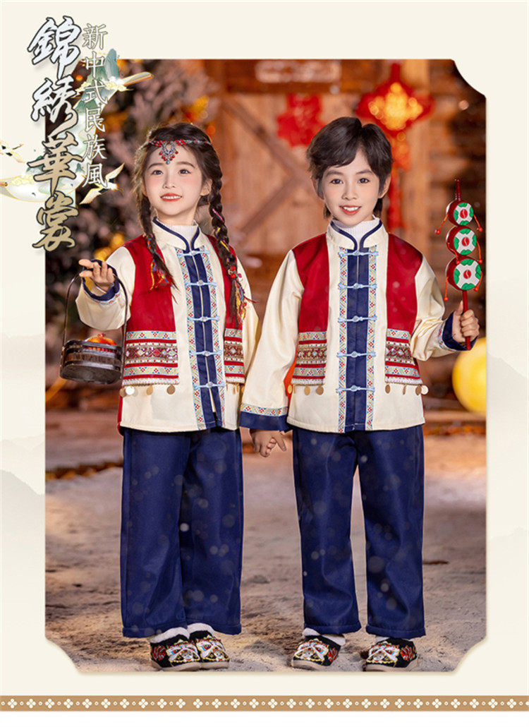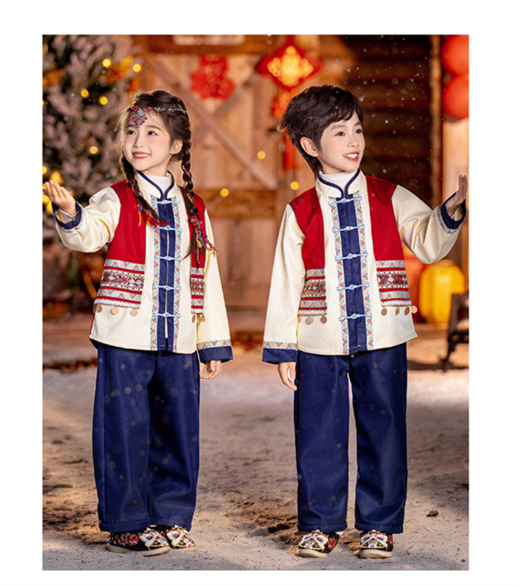 Ethnic Minority Style Clothing, Autumn and Winter Thickened Version, Children's Yunnan Dali Bai Ethnic Costume for Boys and Girls, Traditional Costume for New Year's Performance