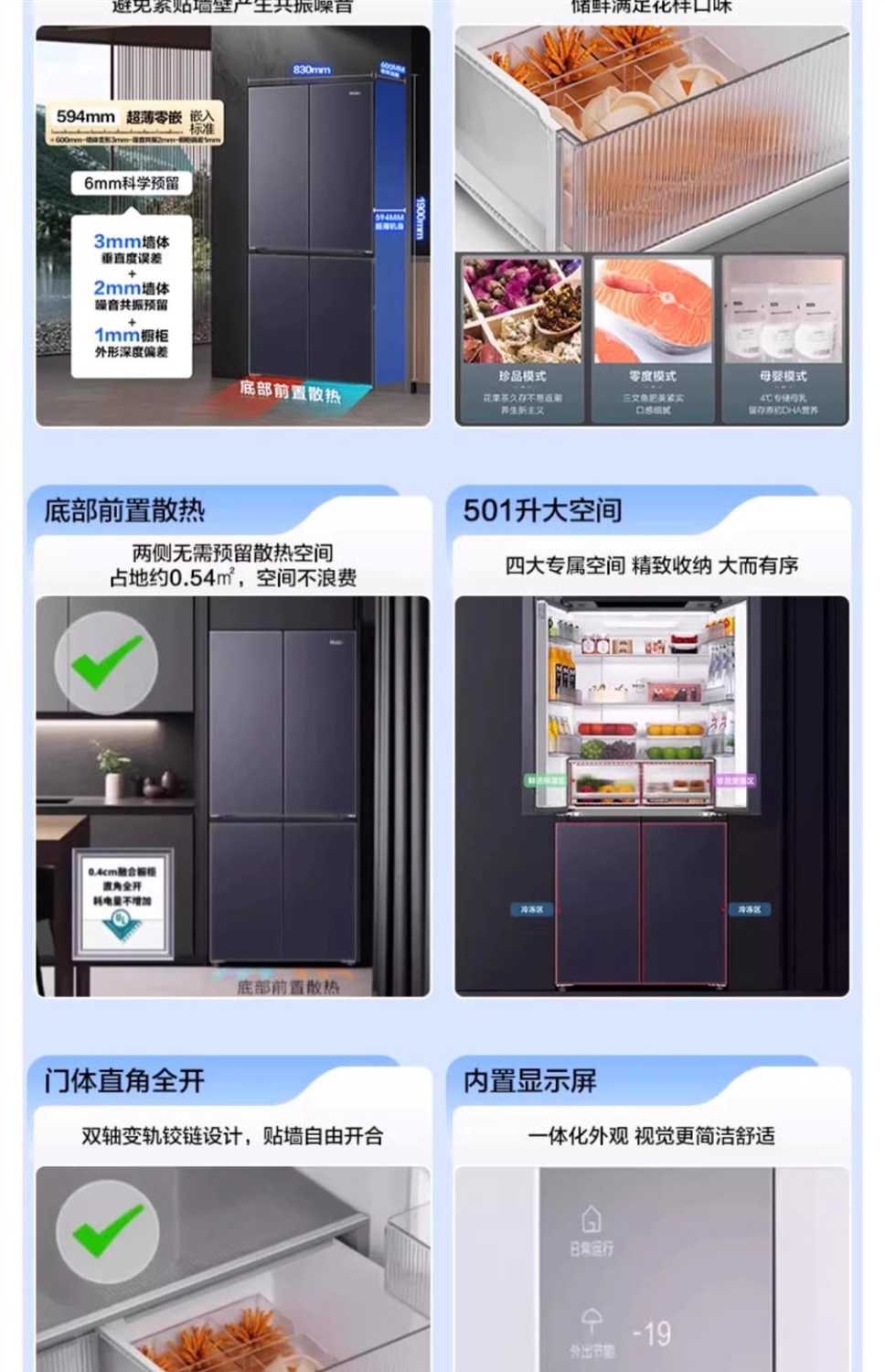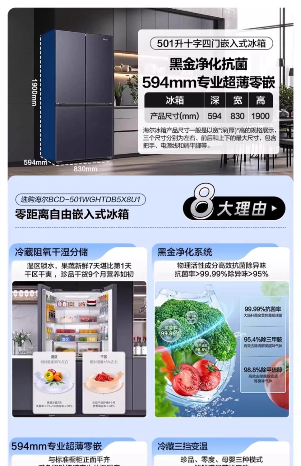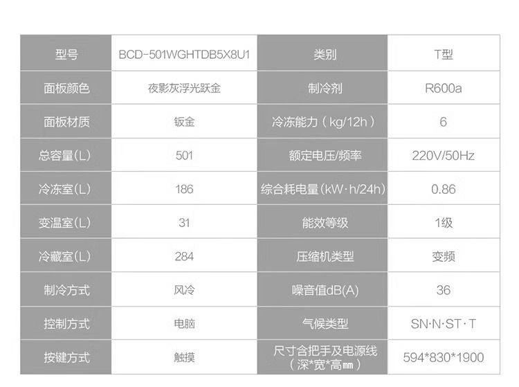 Haier refrigerator cross-door household first-class air-cooled frost-free zero embedded BCD-501WGHTDB5X8U1