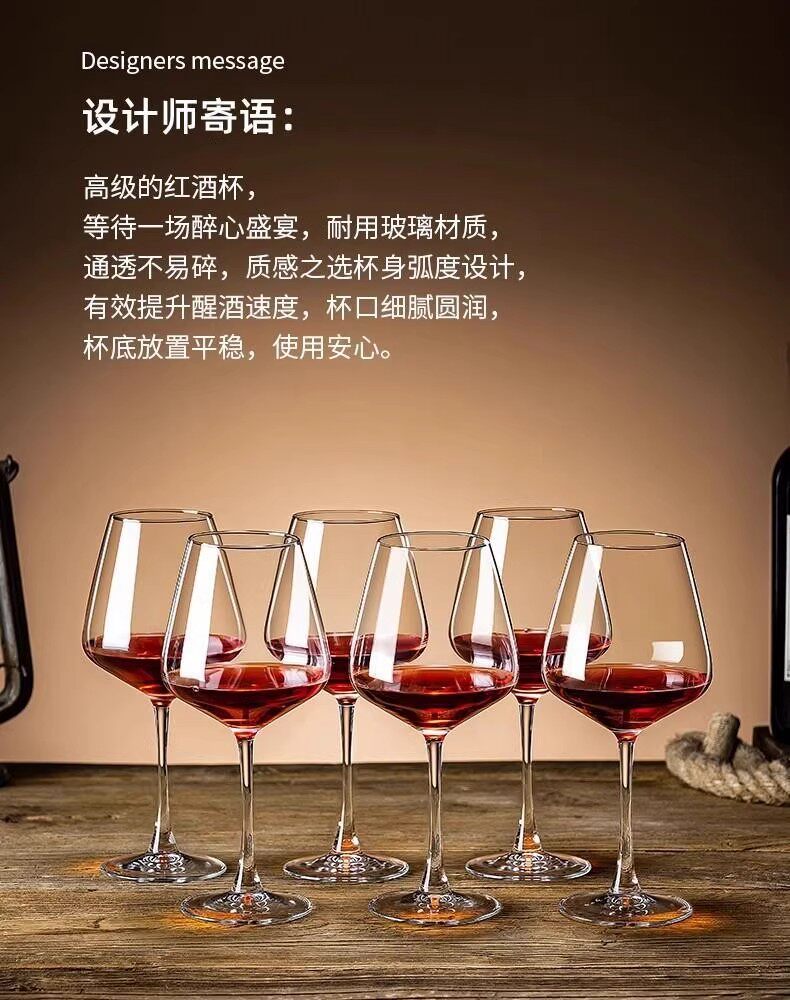 German Red Wine Glass for Home Use, Light Luxury, High-End, Exquisite, High-Quality Glass Cup, European-Style Creative Crystal Wine Glass