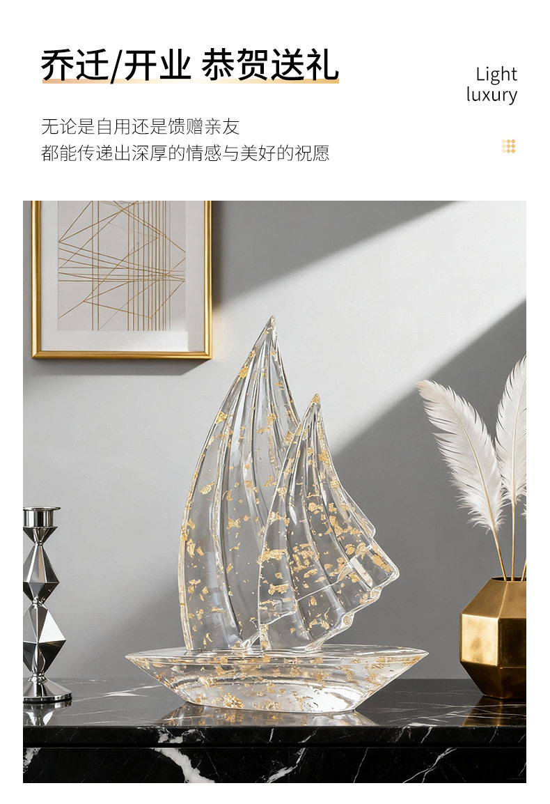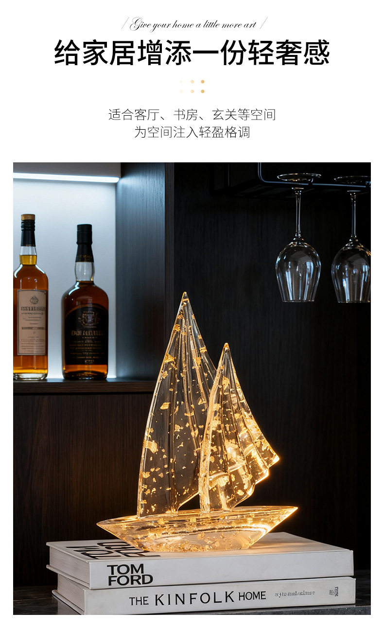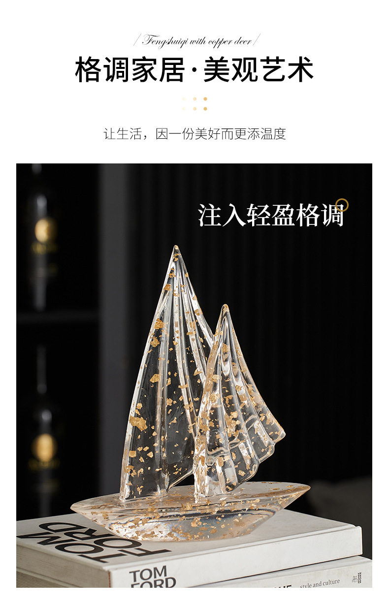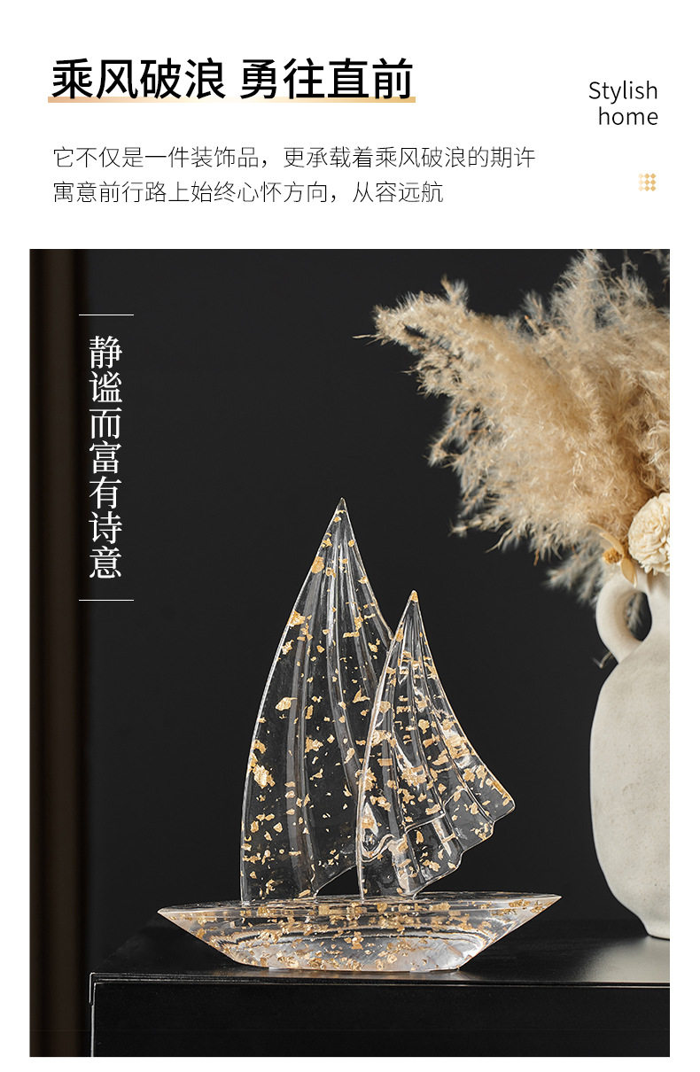 Light Luxury Ornaments, Artistic Sailboat-Shaped Living Room, Study, Office, Wine Cabinet Decoration, Resin Ornaments, Soft Decorations