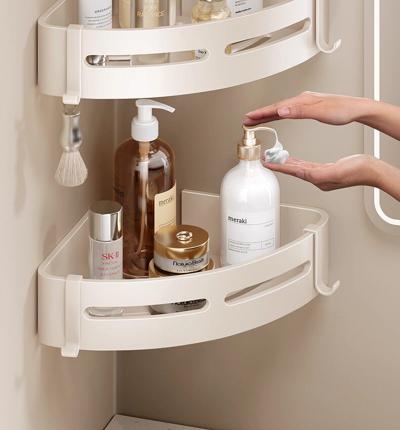 Japanese-Style Cream Towel Rack, No-Drill Bathroom Towel Holder, Wall-Mounted Space Aluminum Shelf for Bathroom and Toilet