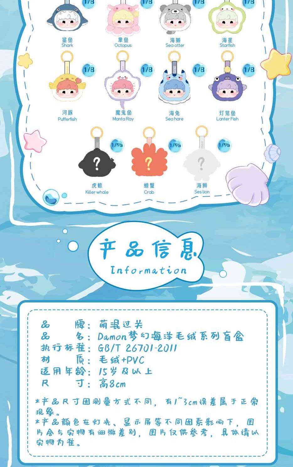 Cute and Adorable Damon Dreamy Ocean Series Plush Pendant Blind Box Doll Girl's Gift Keychain