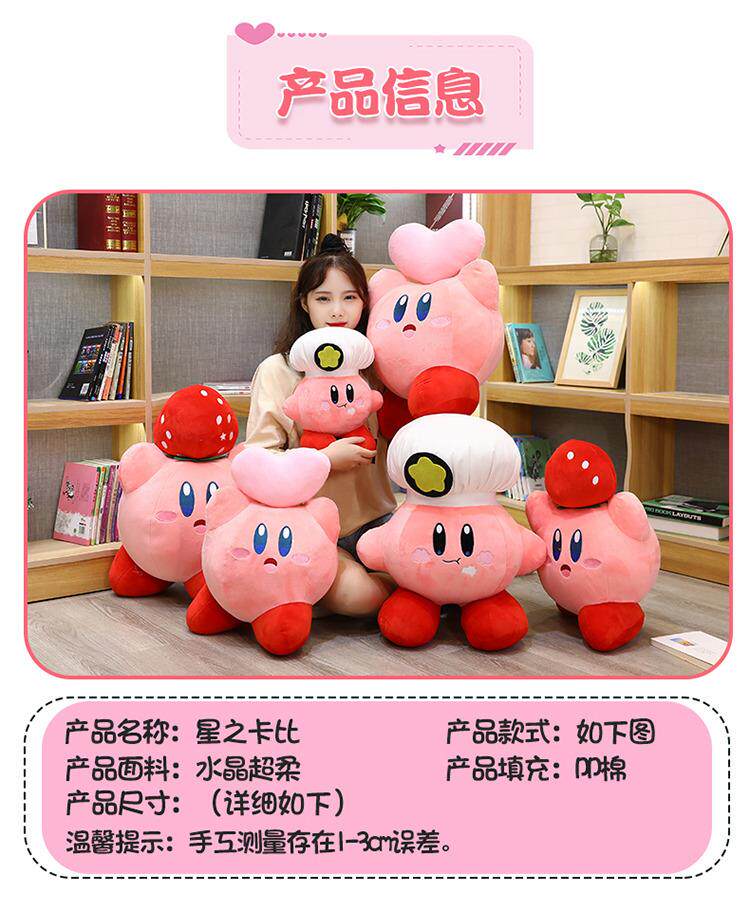 Japanese Sc Kirby Pillow Plush Toy Chef Kirby Stuffed Cartoon Doll Birthday Gift