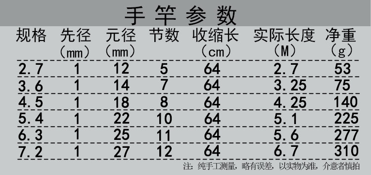 Color Classification Hand Pole 3.6m Free 2.7m + Trial Model,Hand Pole 3.6m + 3.6m + Full Set of Fishing Gear,Hand Pole 4.5m + 3.6m + Full Set of Fishing Gear,Hand Pole 4.5m + 4.5m + Full Set of Fishing Gear,Hand Pole 5.4m + 3.6m + Full Set of Fishing Gear,Hand Pole 5.4m + 4.5m + Full Set of Fishing Gear,Hand Pole 6.3m + 5.4m + Full Set of Fishing Gear,Hand Pole 7.2m + 6.3m + Full Set of Fishing Gear,Casting Rod 2.1m + Hand Rod 3.6m + Full Set of Fishing Gear,Casting Rod 2.4m + Hand Rod 4.5m + Full Set of Fishing Gear,Casting Rod 2.7m + Hand Rod 5.4m + Full Set of Fishing Gear,Casting Rod 3.0m + Hand Rod 6.3m + Full Set of Fishing Gear,Hand Pole 4.5m + 3.6m + 2.7m + Full Set of Fishing Gear,Hand Pole 4.5m + 3.6m + 3.6m + Full Set of Fishing Gear,Hand Pole 5.4m + 4.5m + 3.6m + Full Set of Fishing Gear,Hand Pole 5.4m + 4.5m + 4.5m + Full Set of Fishing Gear,Hand Pole 6.3m + 5.4m + 4.5m + Full Set of Fishing Gear,Hand Pole 7.2m + 6.3m + 5.4m + Full Set of Fishing Gear,Casting Rod 2.1m + Hand Rod 4.5m + 3.6m + Full Set of Fishing Gear,Casting Rod 2.4m + Hand Rod 5.4m + 4.5m + Full Set of Fishing Gear,Casting Rod 2.7m + Hand Rod 5.4m + 5.4m + Full Set of Fishing Gear,Casting Rod 3.0m + Hand Rod 6.3m + 5.4m + Full Set of Fishing Gear,Casting Rod 3.6m + Hand Rod 7.2m + 6.3m + Full Set of Fishing Gear,Free to Match the Fishing Rod Size, Contact Customer Service to Check the Price