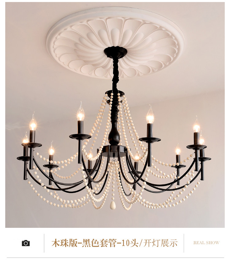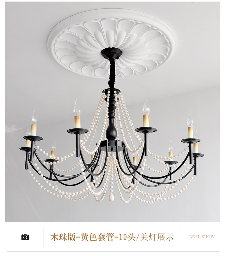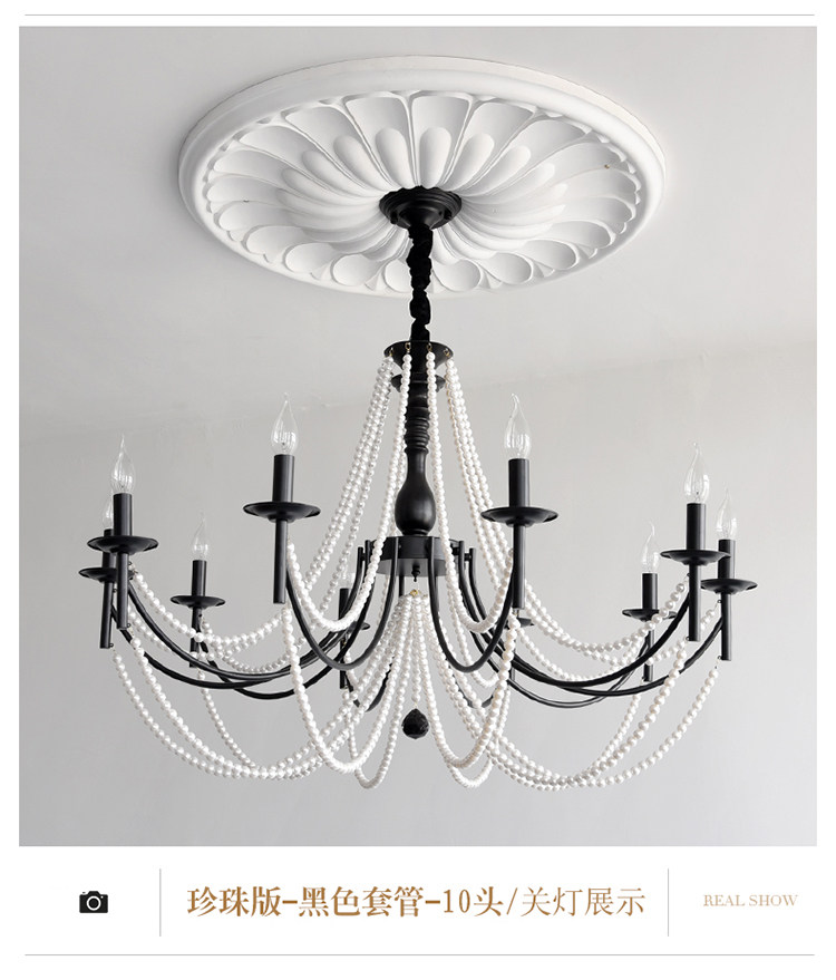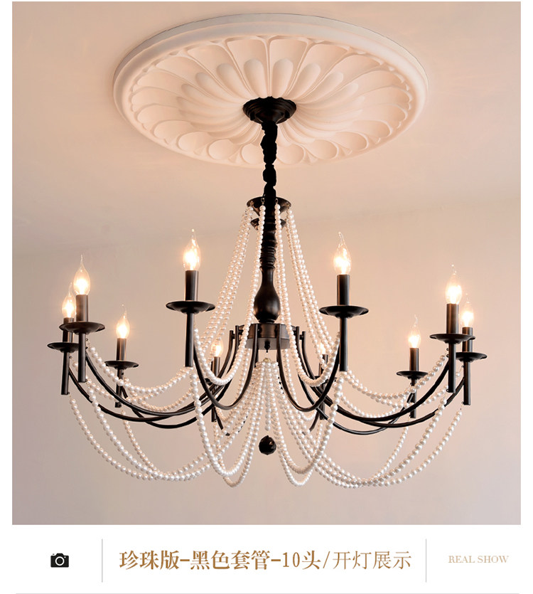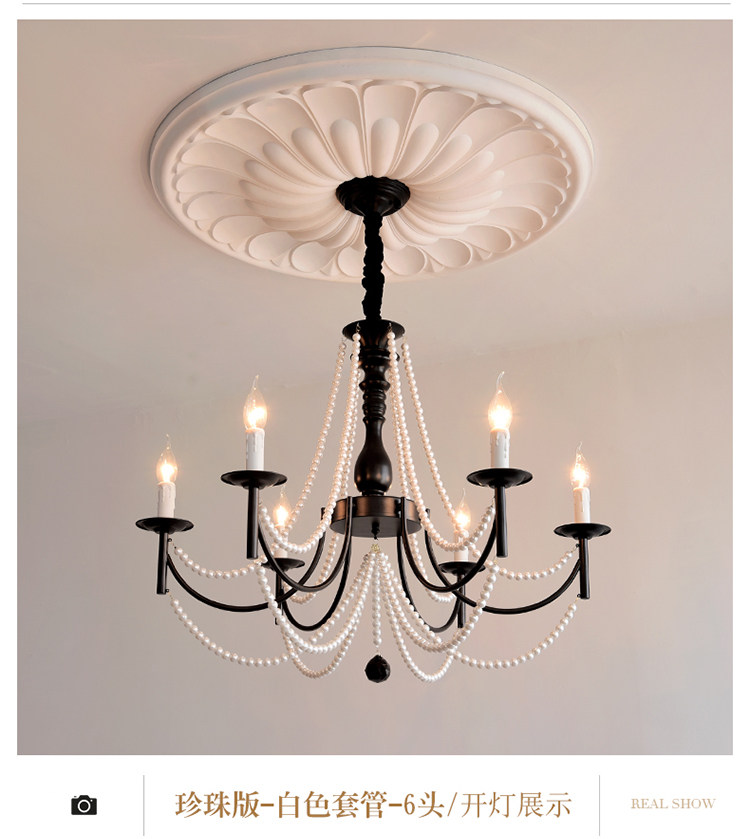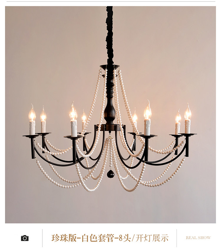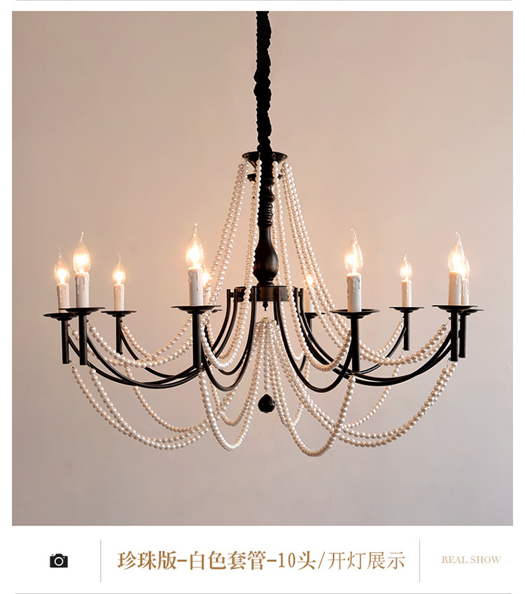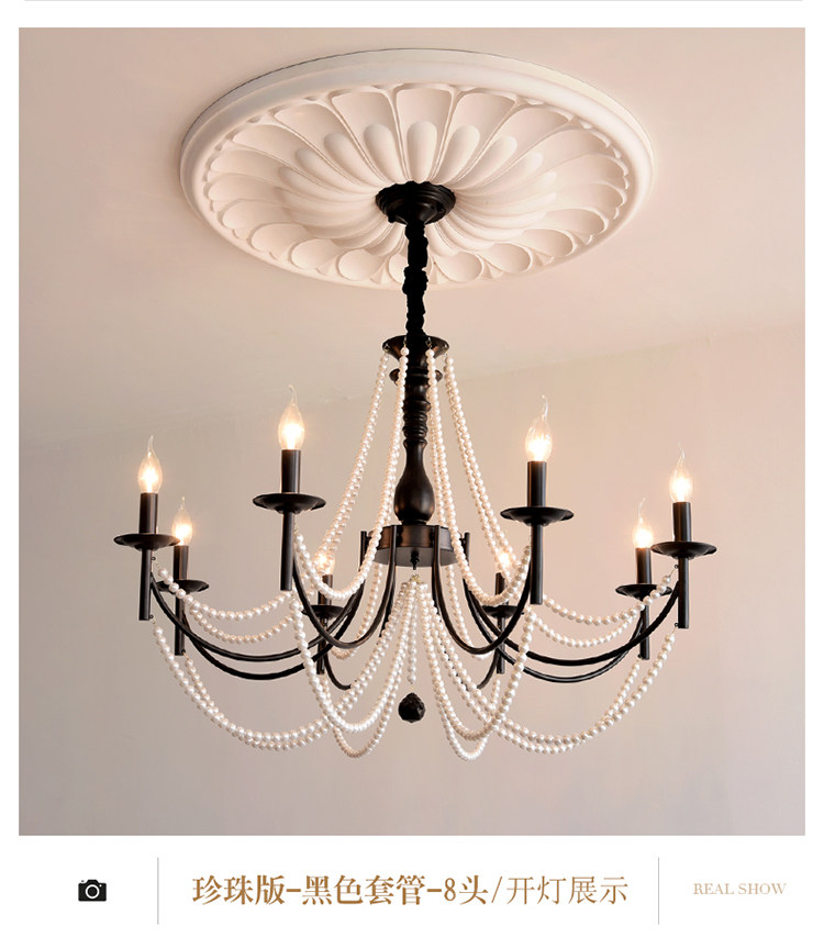 American Retro Chandelier, Living Room Lamp, French Palace Style Candle Lamp, Villa Romantic Pearl Dining Room Bedroom Master Bedroom Lamp