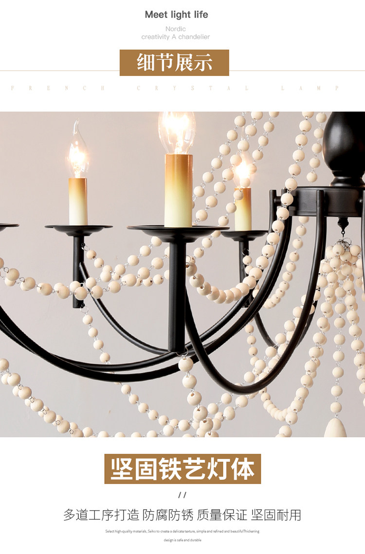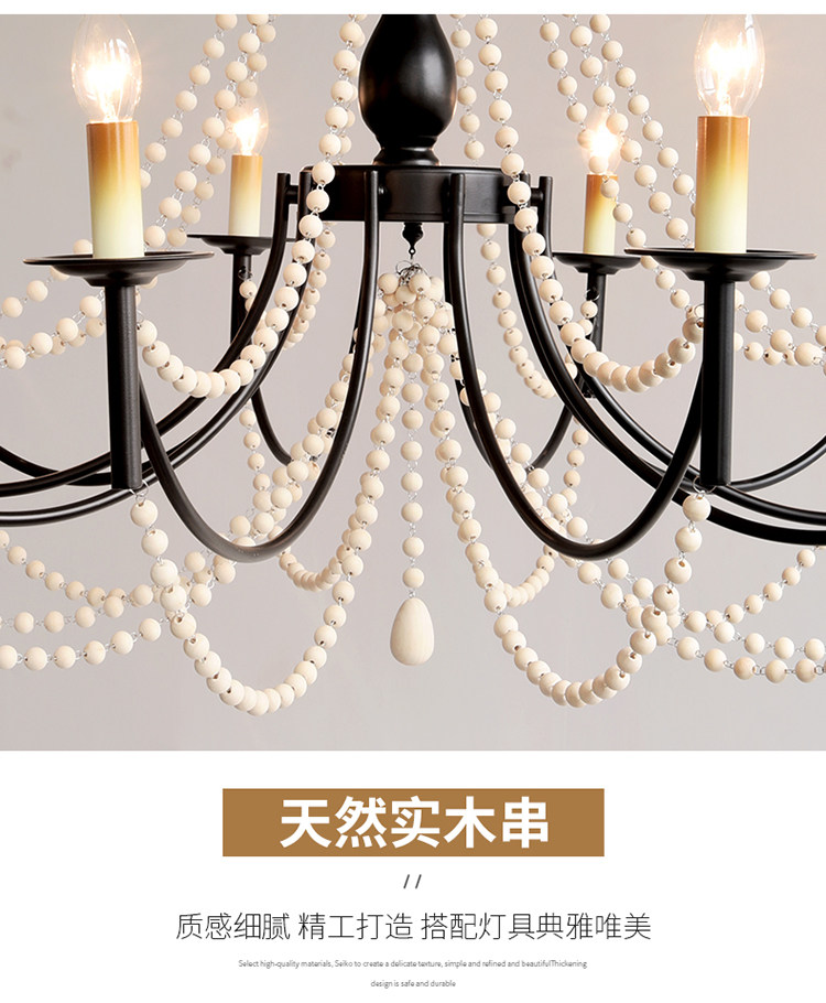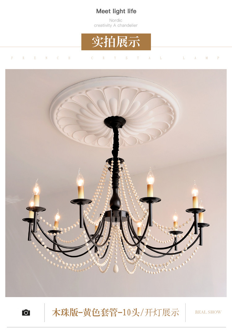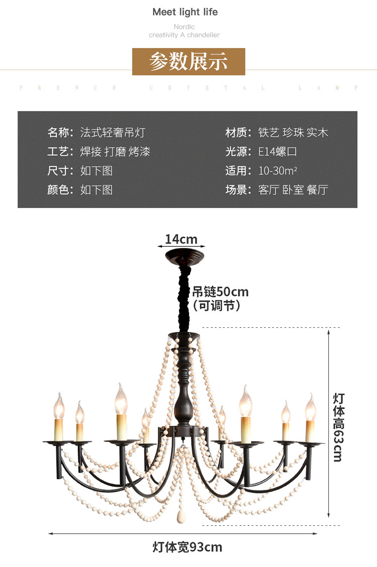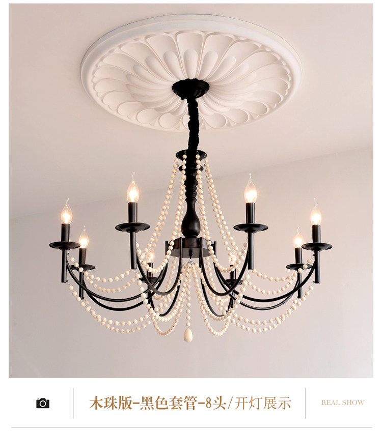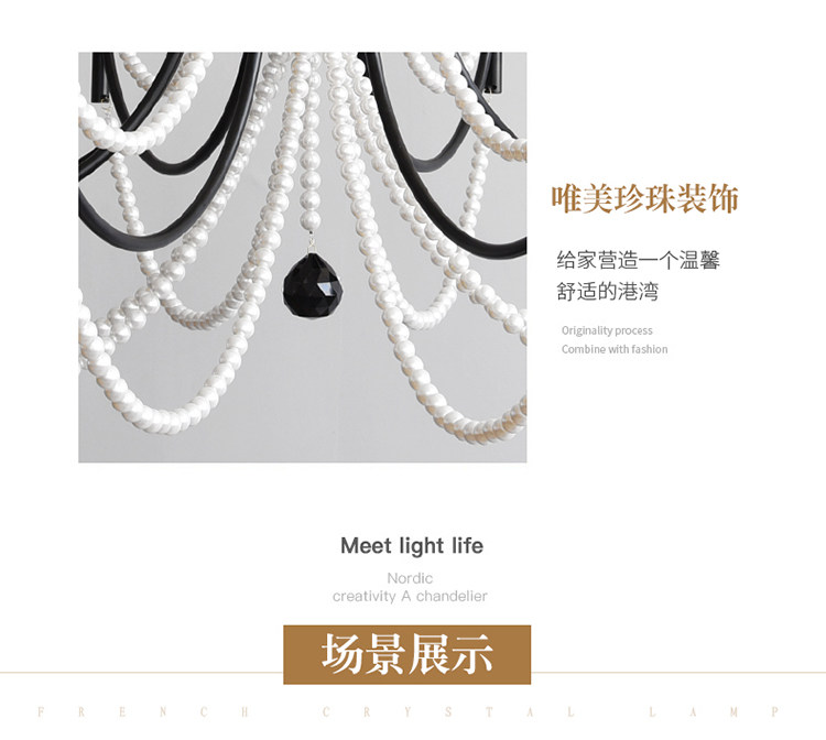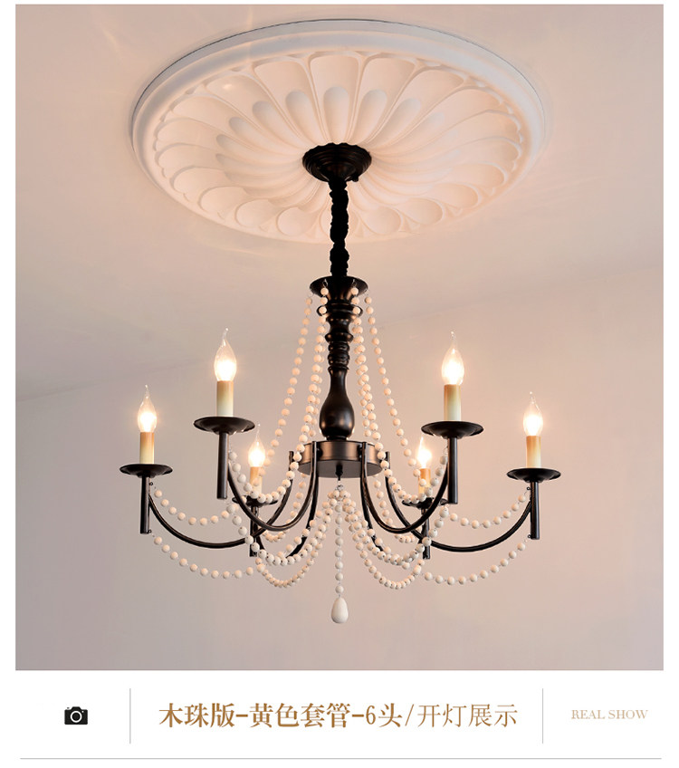 American Retro Chandelier, Living Room Lamp, French Palace Style Candle Lamp, Villa Romantic Pearl Dining Room Bedroom Master Bedroom Lamp
