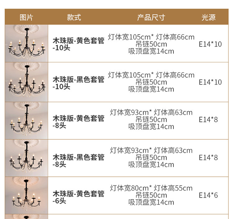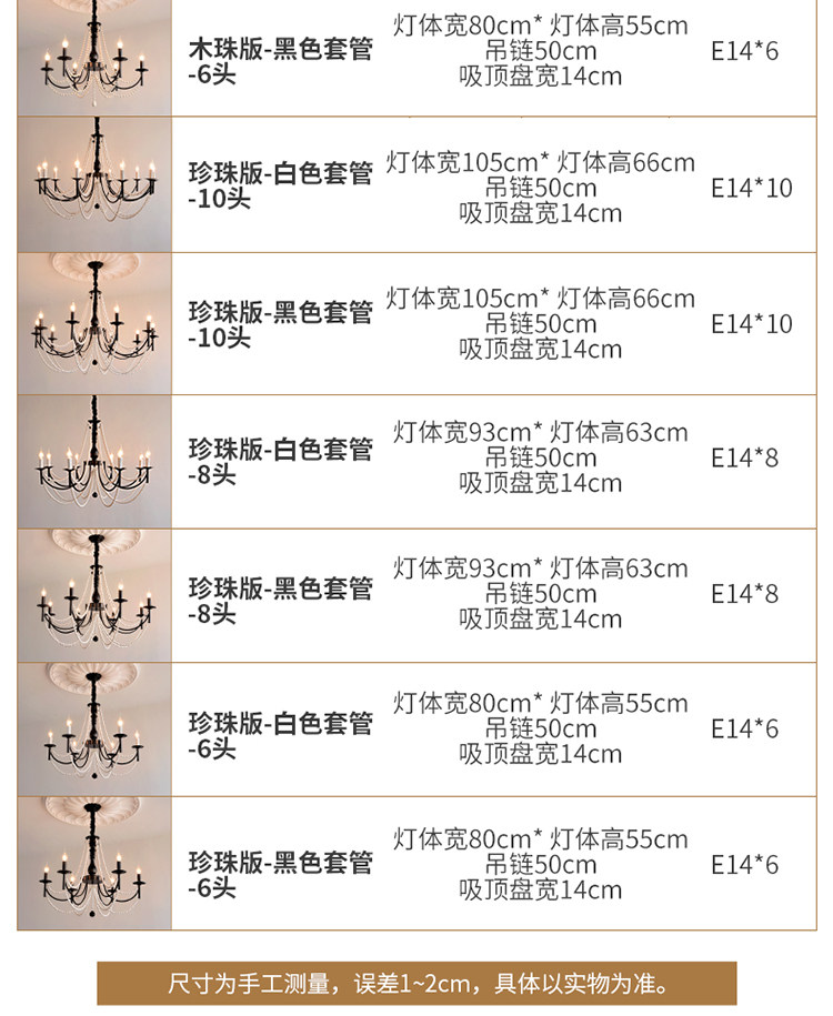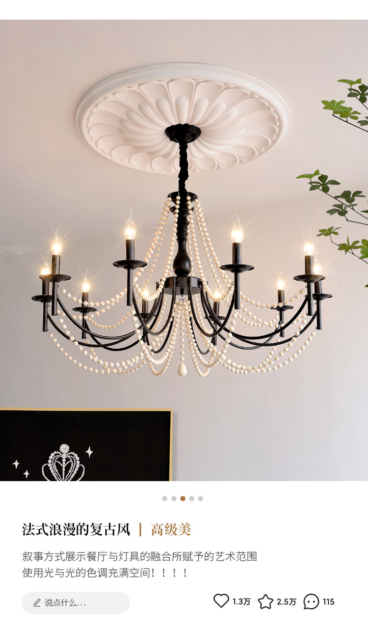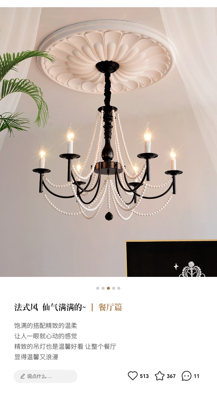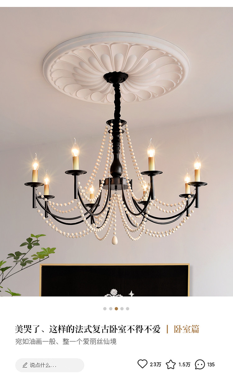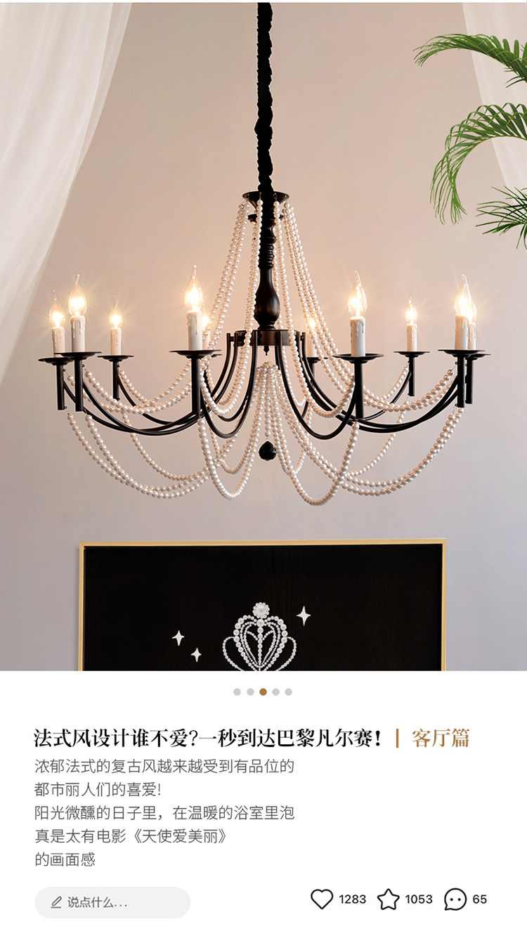 American Retro Chandelier, Living Room Lamp, French Palace Style Candle Lamp, Villa Romantic Pearl Dining Room Bedroom Master Bedroom Lamp