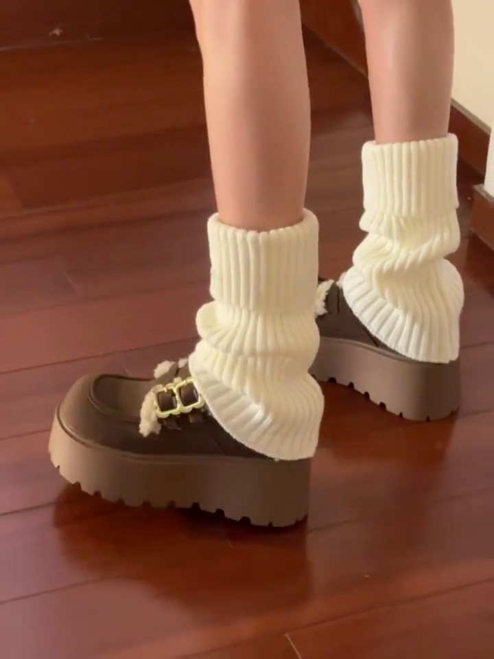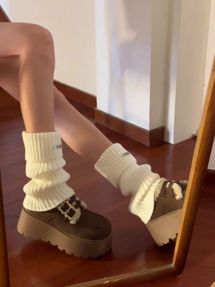 Trendy Knitted Leg Warmers for Women, Thickened for Winter, White Sock Covers to Pair with Snow Boots, Slouch Socks for Autumn and Winter, Calf Socks