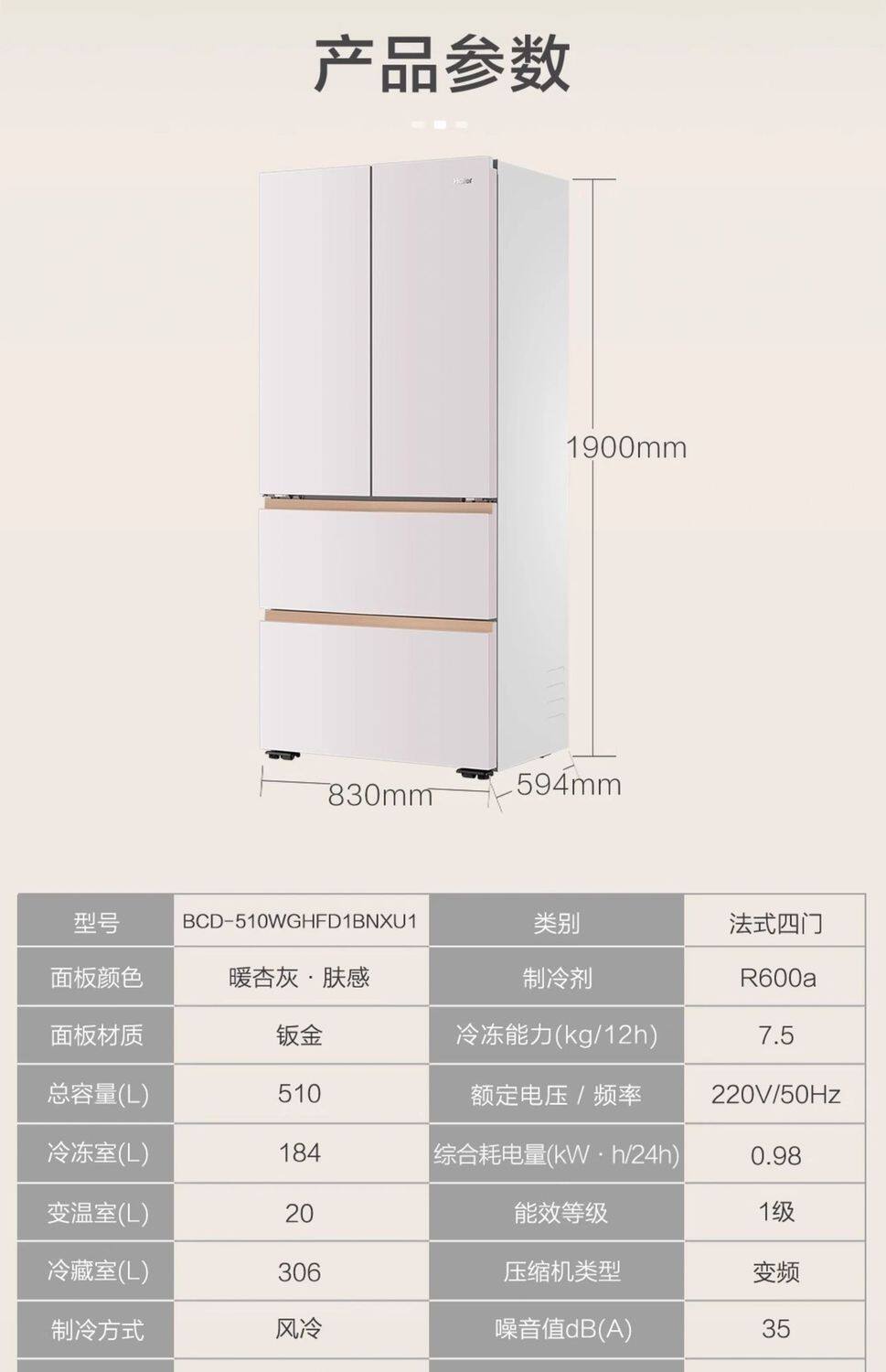 Haier Refrigerator with Full Space Preservation, Ultra-Thin, Zero-Insertion, Frost-Free, Household Grade One Bcd-510Wghfd1Bnxu1